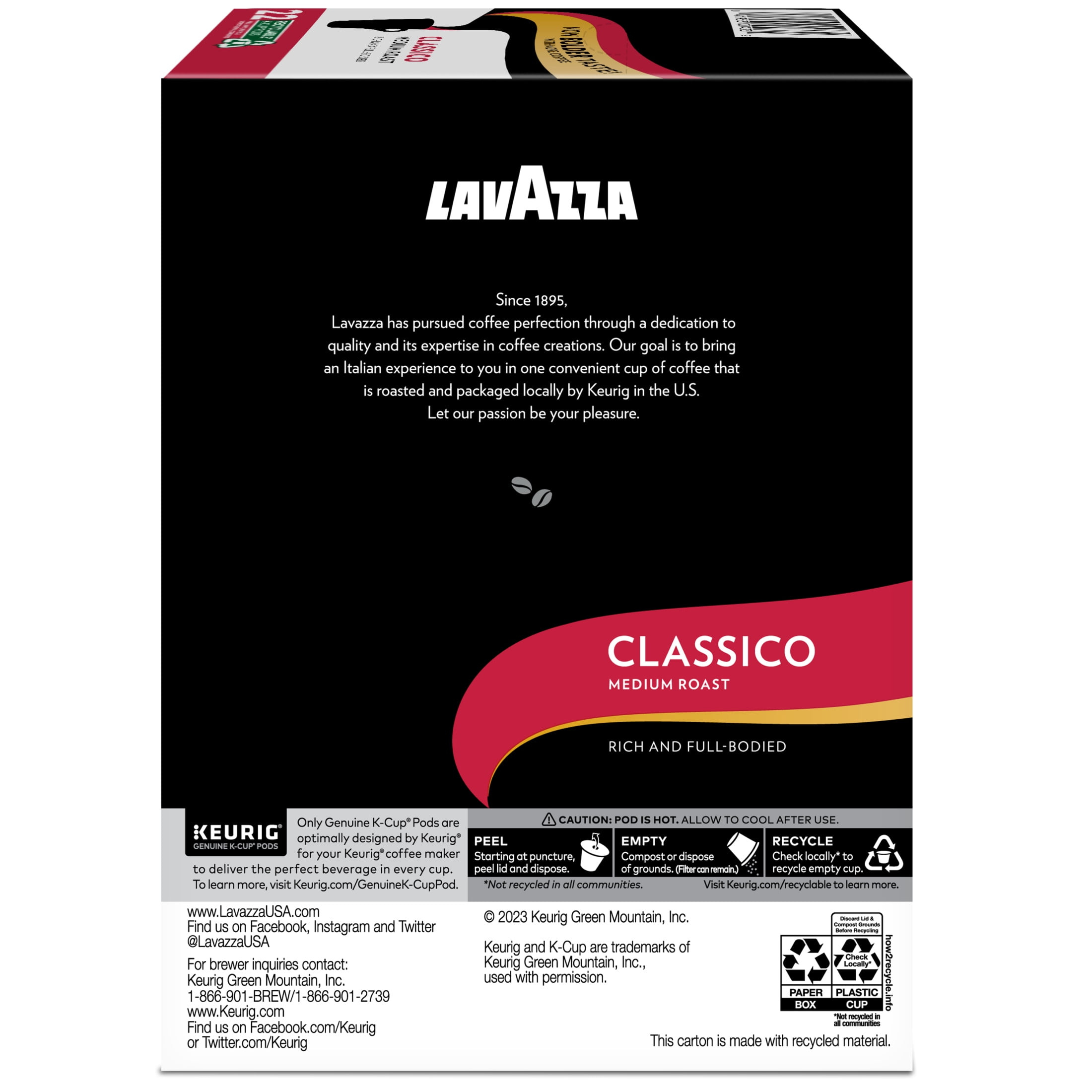 Lavazza Coffee, Classico Medium Roast K-Cup Coffee Pods, 22 Count