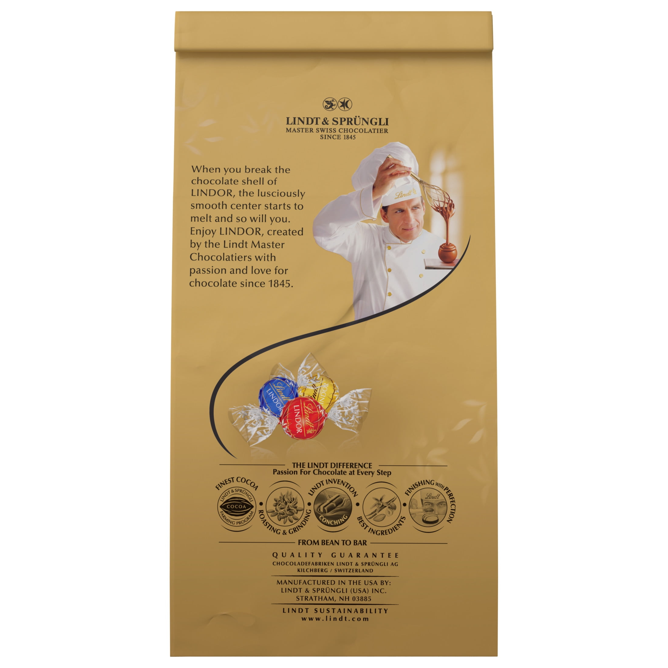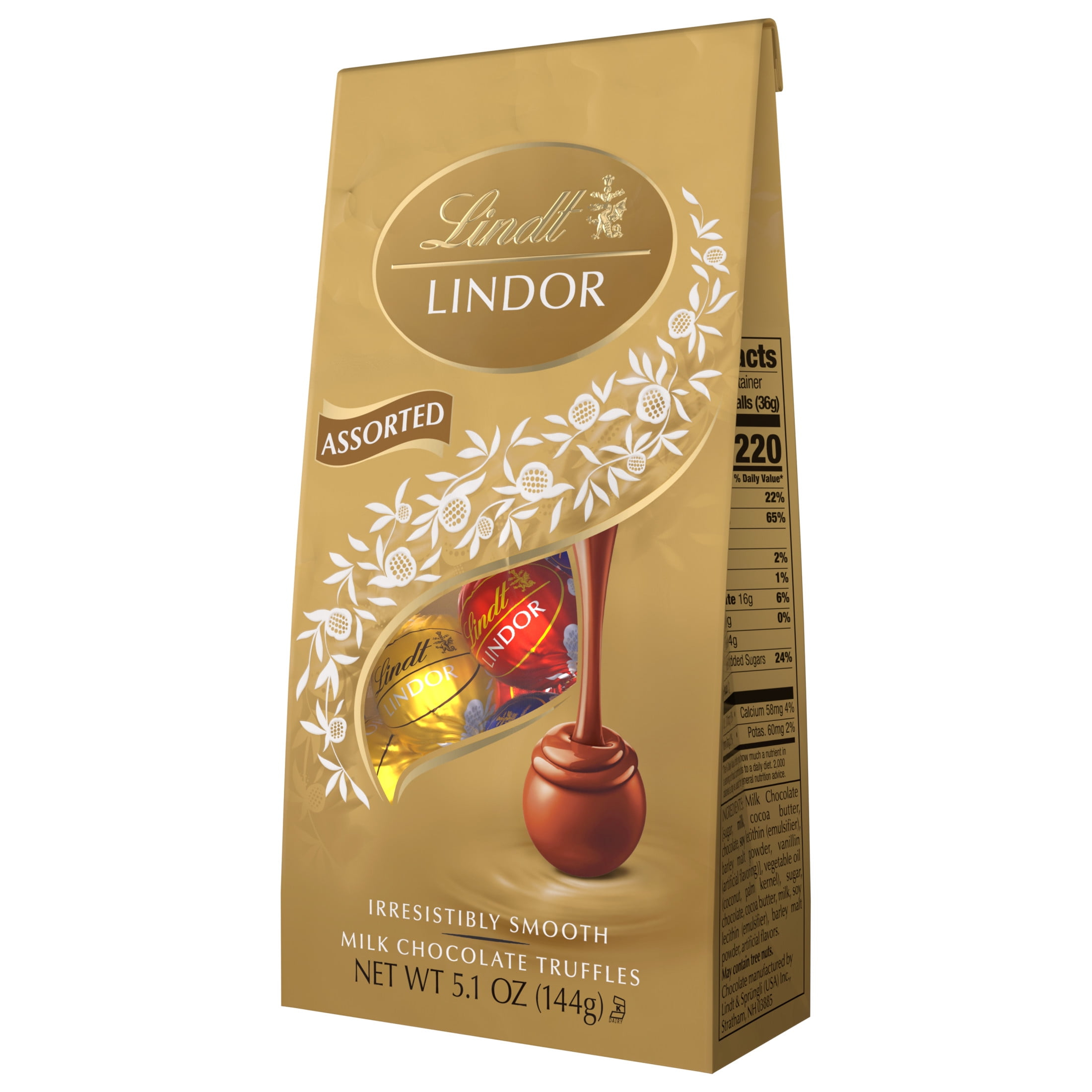 Experience the most popular flavors of Lindt LINDOR Assorted Chocolate Truffles in this classic three flavor chocolate assortment. Surprise friends and family with a chocolate candy gift, or enjoy Lindt LINDOR chocolate truffles as a sweet, indulgent after-dinner treat. Each bag features Milk Chocolate, White Chocolate and Dark Chocolate truffles. There is something for everyone, whether you prefer classic Milk Chocolate truffles, slightly intense Dark Chocolate truffles or smooth and sweet White Chocolate truffles. When you break the shell, the truffle’s smooth center begins to melt and so will you. These individually wrapped truffles are the perfect size to enjoy anytime, anywhere. Lindt chocolate embodies the passion and expert craftsmanship of Lindt Master Chocolatiers for a luscious and rewarding chocolate experience. Made to Melt You. Anytime. Anywhere. In addition to the three flavors in this assortment pack, Lindt LINDOR Truffles are also available in an array of other irresistible flavors, including hazelnut and sea salt milk chocolate. *Information online not complete; check label of actual product being purchased.*