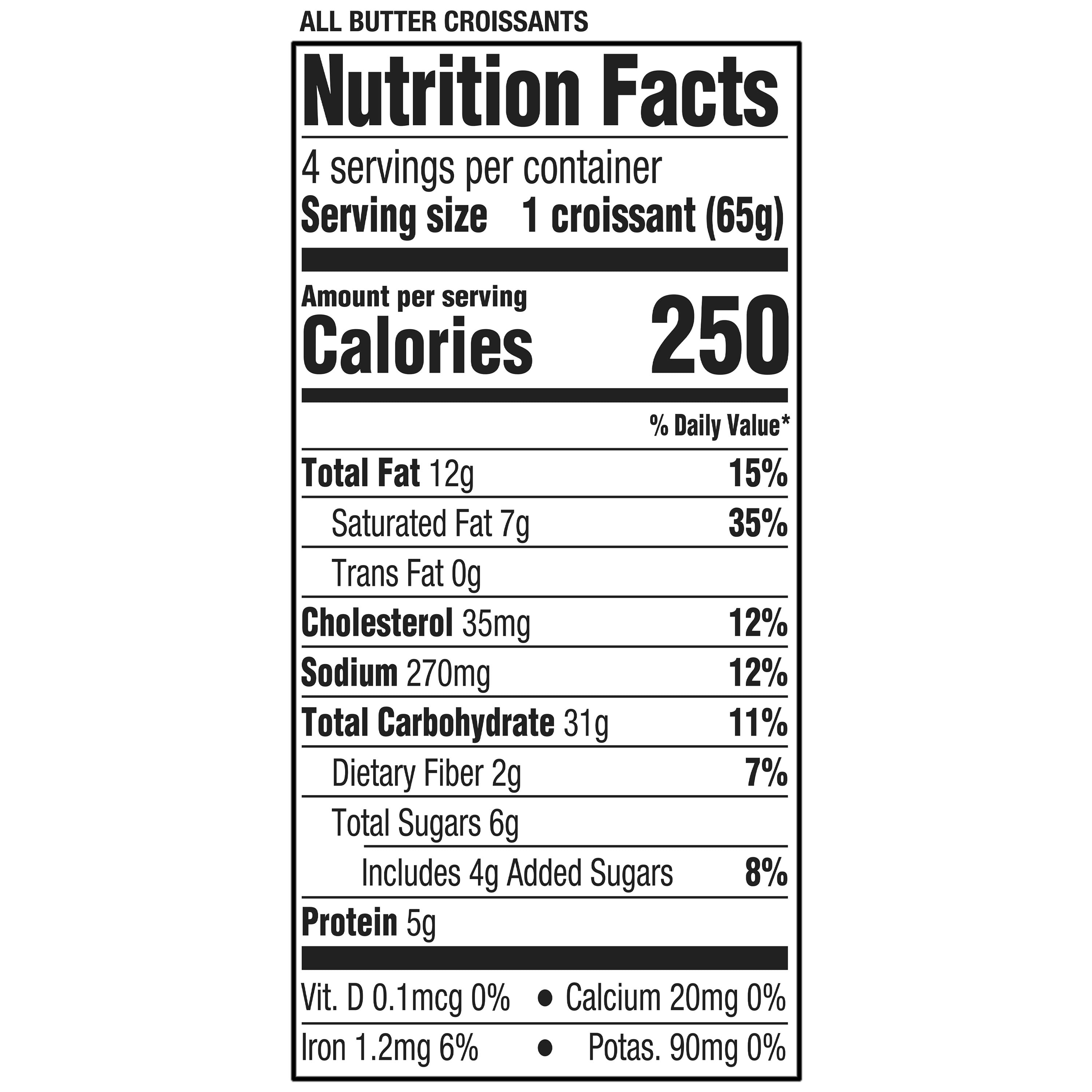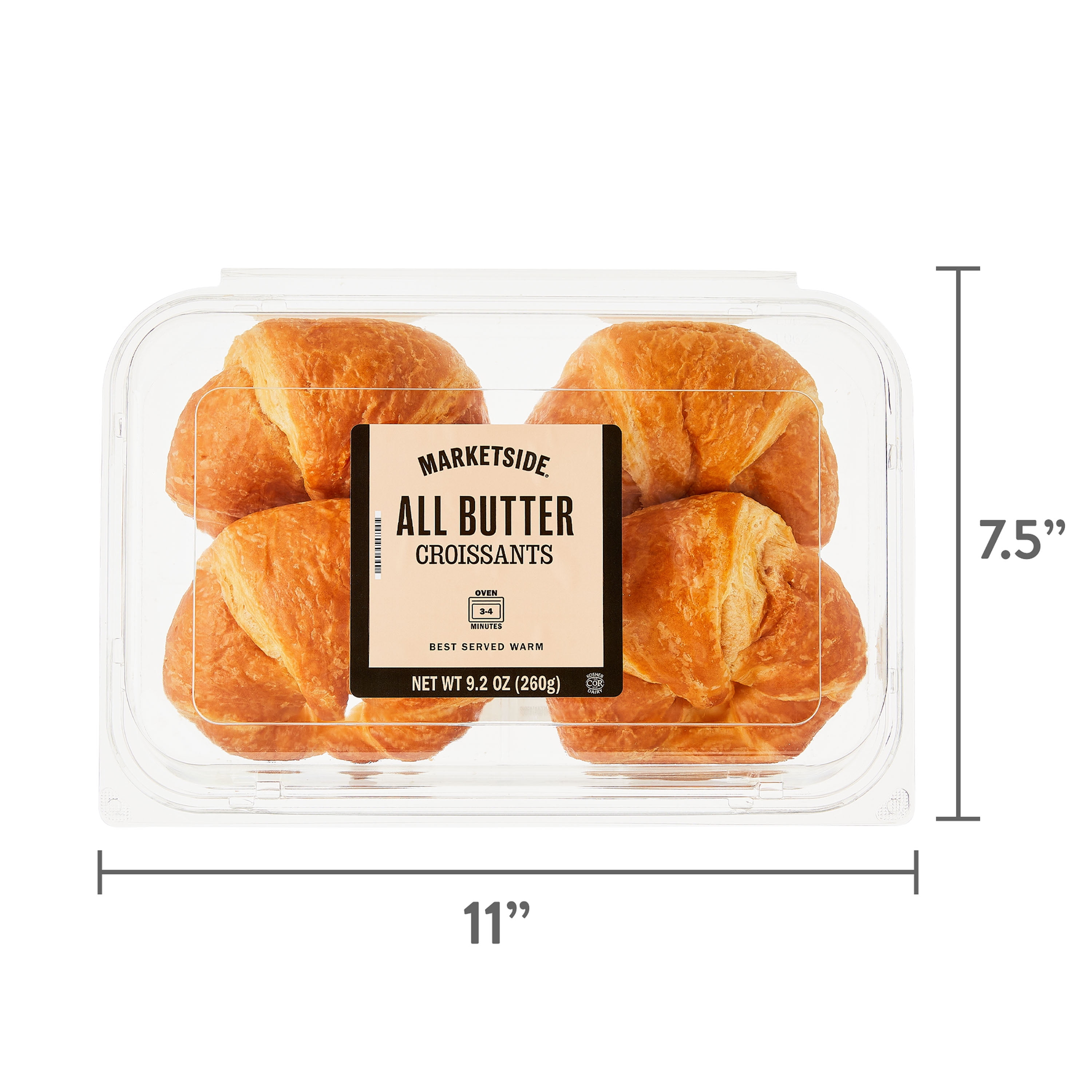 Marketside All Butter Croissants are a perfect addition to any meal. This pack consists of four regular flaky, airy, buttery, croissants. They are an excellent addition to your breakfast, lunch, or enjoyed as a snack. Slice them open and layer turkey, cheese, avocado, and mayo for the perfect sandwich or make a hearty breakfast sandwich with a sausage patty, over easy egg, and cheese. You can also simply enjoy them plain for the perfect snack. Anyway you enjoy them, the baked Marketside All Butter Croissants are delicious.