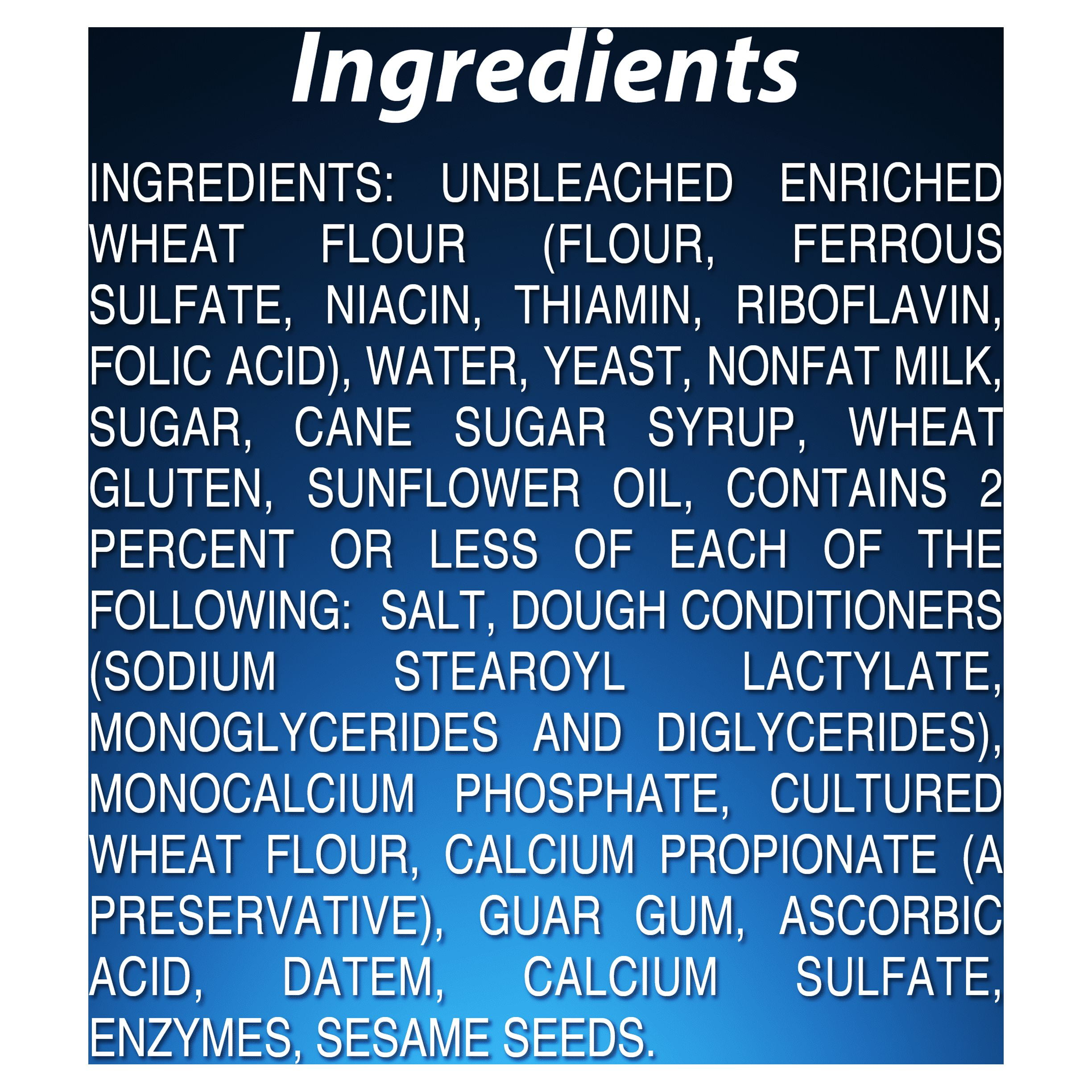 - Non-GMO (We source non-GMO ingredients. For more information, go to our website: www.potatorolls.com/about/faqs)