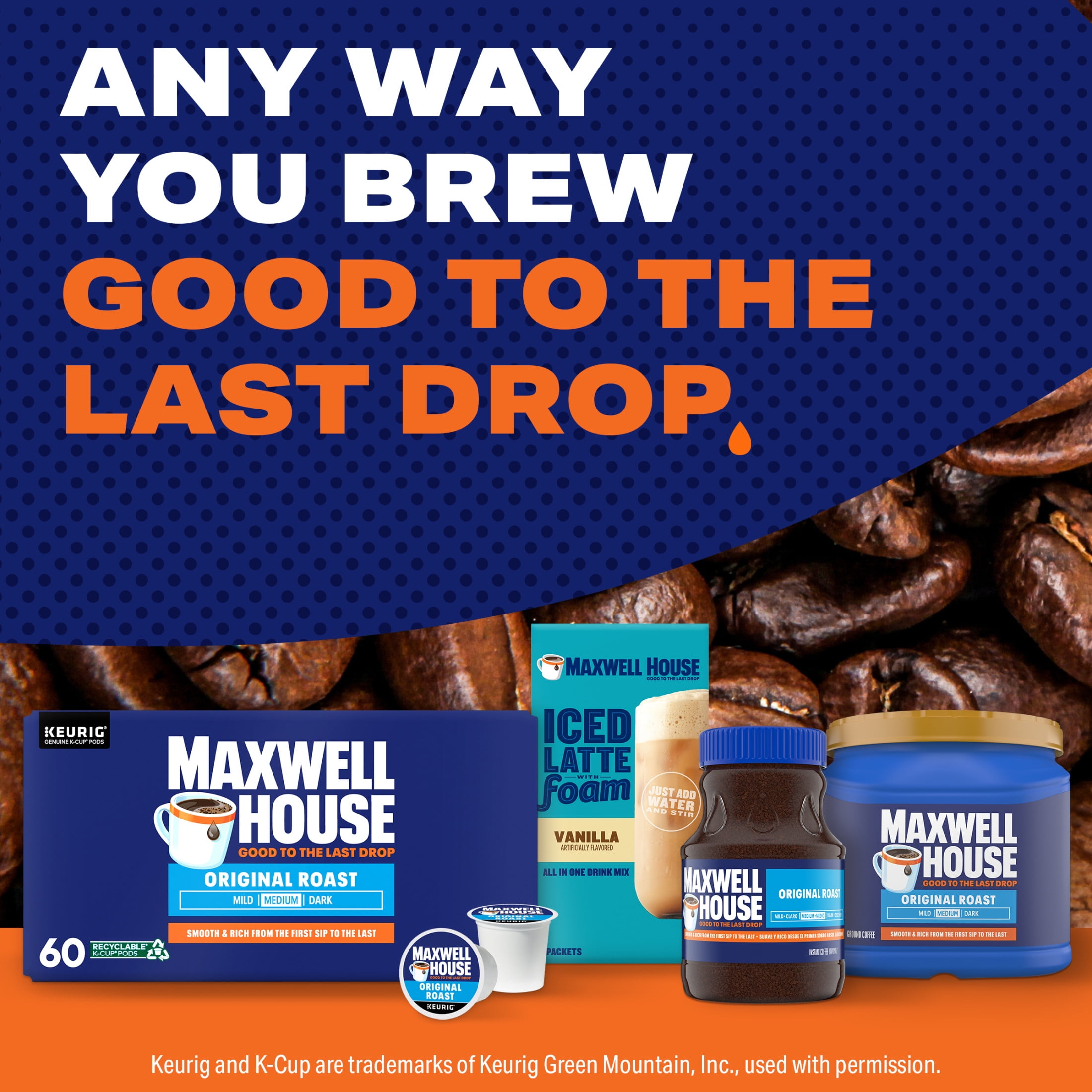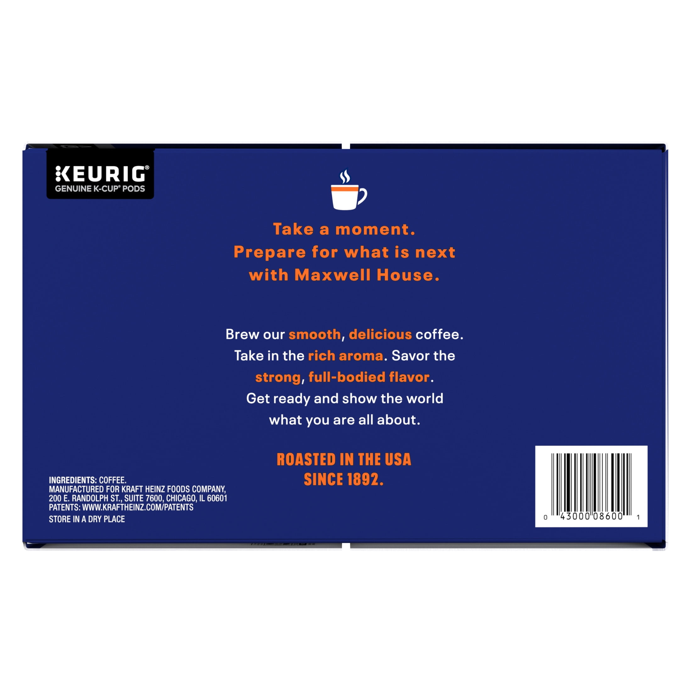 Take a break with the coffee that practically invented breaks. The day’s been a whirlwind and it’s far from over. But here’s the thing — you’re not stressing it. Because you’ve got it all figured out. You’re gonna brew the medium roast made for kicking back and enjoying the aroma. Maxwell House Original Roast Medium Roast K-Cup® Coffee Pods. Just sit back and savor every sip from your steaming cup full of full-bodied Maxwell House flavor. Reset with that consistently delicious taste that hits the spot from the very first sip to the very last drop. And when that cup’s empty and you’re finally fueled up, you can squint your eyes, gather your gear and roll up your sleeves. Now you’re ready to tackle anything, and there’s plenty of coffee pods ready for you in your 60 count box of Maxwell House Original Roast Medium Roast K-Cup® Coffee Pods. Let’s show ’em what you’re made of. Maxwell House. To Your Max.