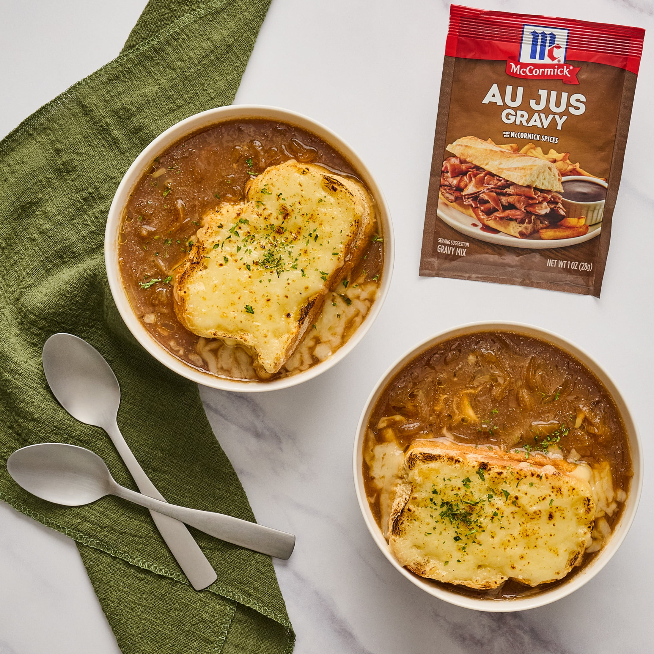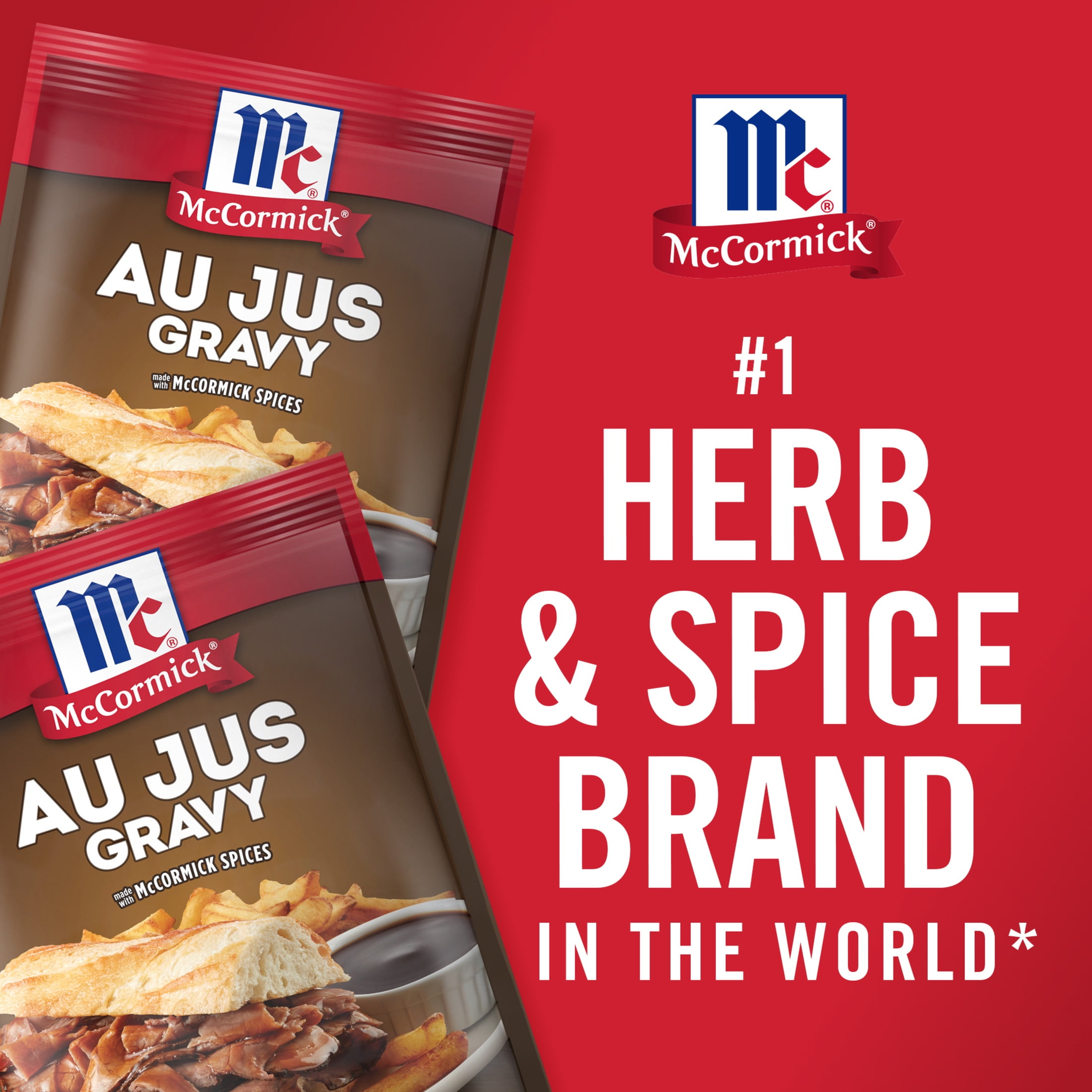 - SAVORY FLAVOR: Crafted with McCormick spices, celery, and garlic, Au Jus Gravy Mix adds savory beef flavor to everyday dinners and holiday roasts.