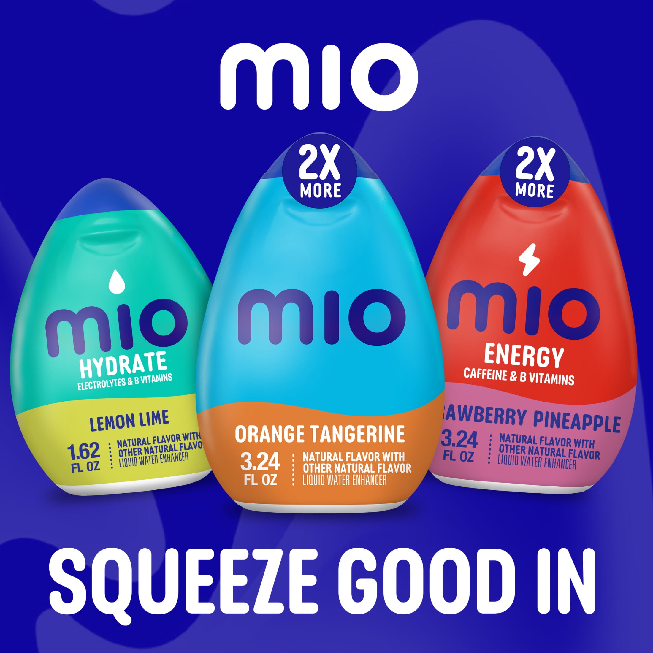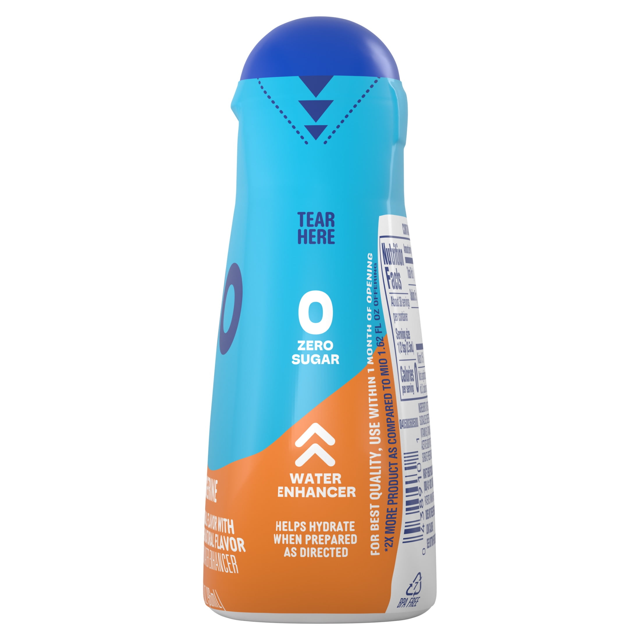 Squeeze good in with mio. mio Orange Tangerine Naturally Flavored with other natural flavor Liquid Water Enhancer helps you on your wellness journey by making it easier and more enjoyable to hydrate. Sugar-free water-enhancing drops contain zero calories, and you can control the flavor intensity with just a squeeze. Our small bottle makes us the perfect partner for your busy routine and staying hydrated on the go. Keep a bottle of our water enhancer drops in your purse, bag or glove box for easy on-the-go portable flavor anytime. For a refreshing beverage, simply add 1/2 tsp of mio to 12 ounces of water, mix and enjoy. Each 3.24-ounce bottle has 2x more product than our mio 1.62-ounce offering and contains about 38 servings. For flavorful water you can enjoy anytime, squeeze good into your day with mio Orange Tangerine Liquid Water Enhancer.
