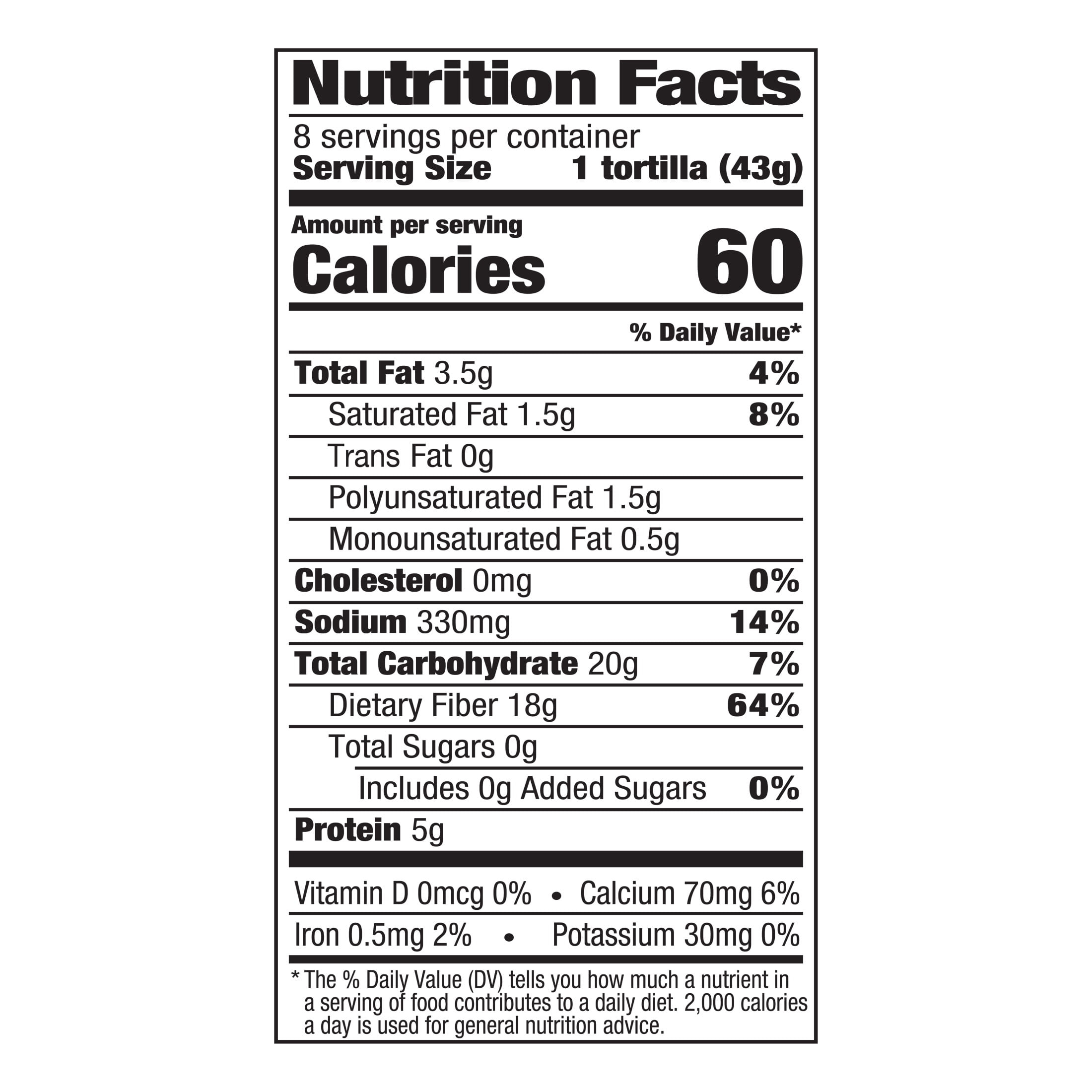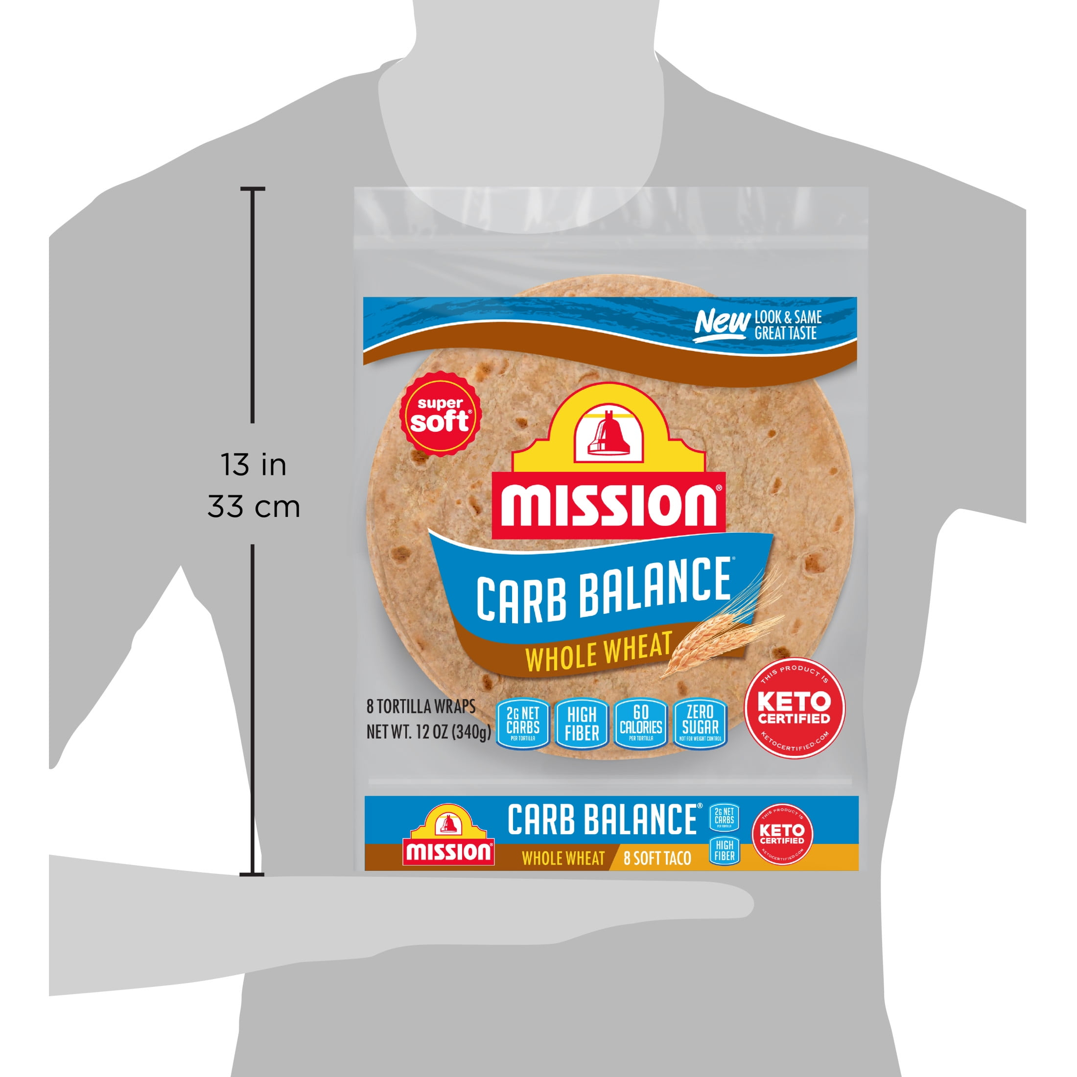 Mission Carb Balance Soft Taco Whole Wheat Tortillas have the supremely soft texture and great taste you want, but without all the carbs you don’t. You can feel good about serving our tortillas to your friends and family because they contain 5g of net carbohydrates and zero sugar per serving. They’re also cholesterol free and are an excellent source of dietary fiber. Whether you’re seeking a balanced diet or enjoy experimenting with new ingredients, our extreme low carb tortillas are versatile enough to use in all of your favorite recipes. We recommend filling them with grilled salmon, mashed avocado, and fresh arugula for a quick and delicious dinner. Includes one 8-count package of Mission Carb Balance Soft Taco Whole Wheat Tortillas.