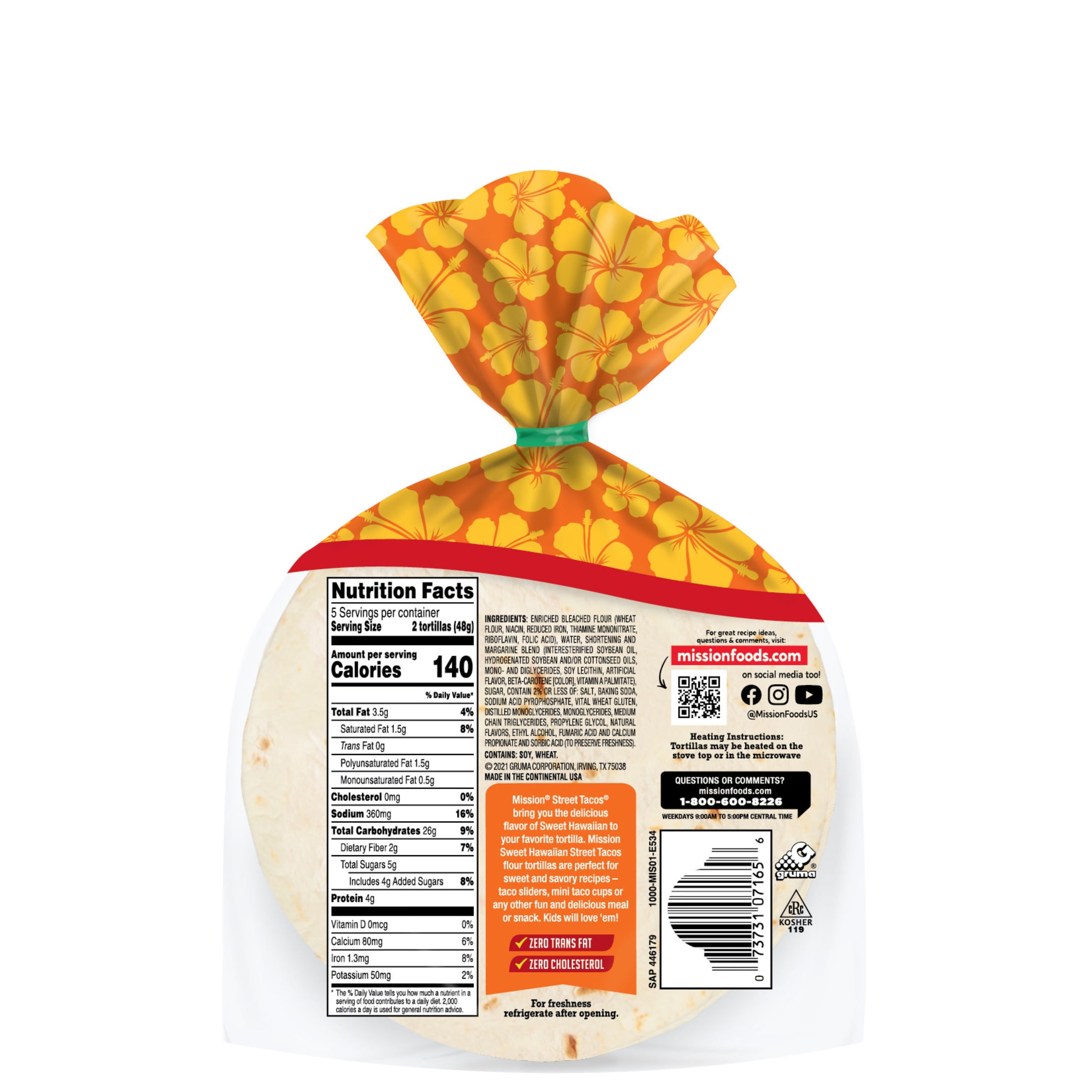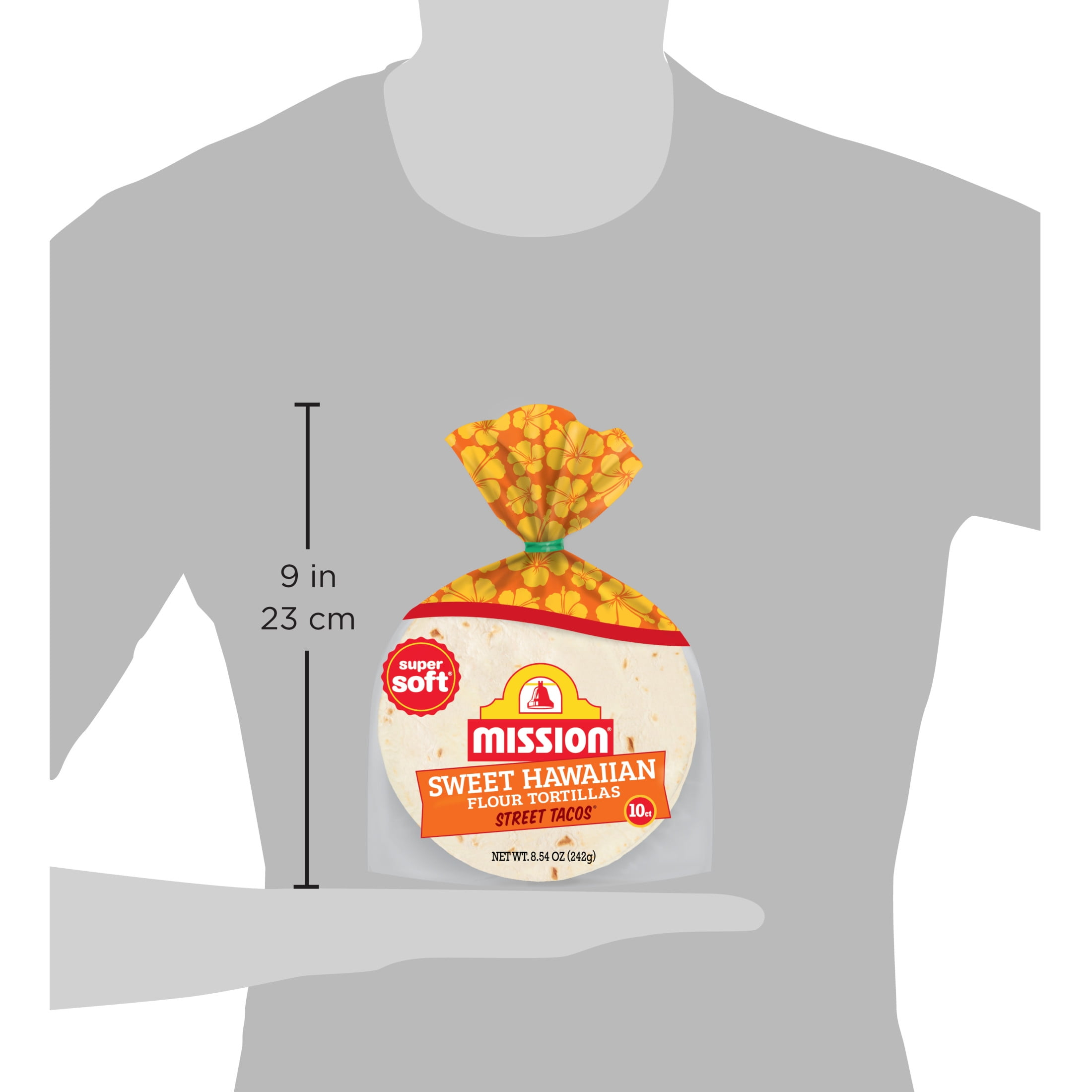 Why should bread have all the fun? Our new Sweet Hawaiian Street Tacos pack big island flavor in a small street taco size. These tasty flour tortillas are perfectly sweet and super soft. Try with some pulled pork and pineapple for a tropical-twist on taco night. Bring a little aloha to your table tonight. Includes one 10 count pack of Mission Street Tacos Sweet Hawaiian Flour Tortillas.