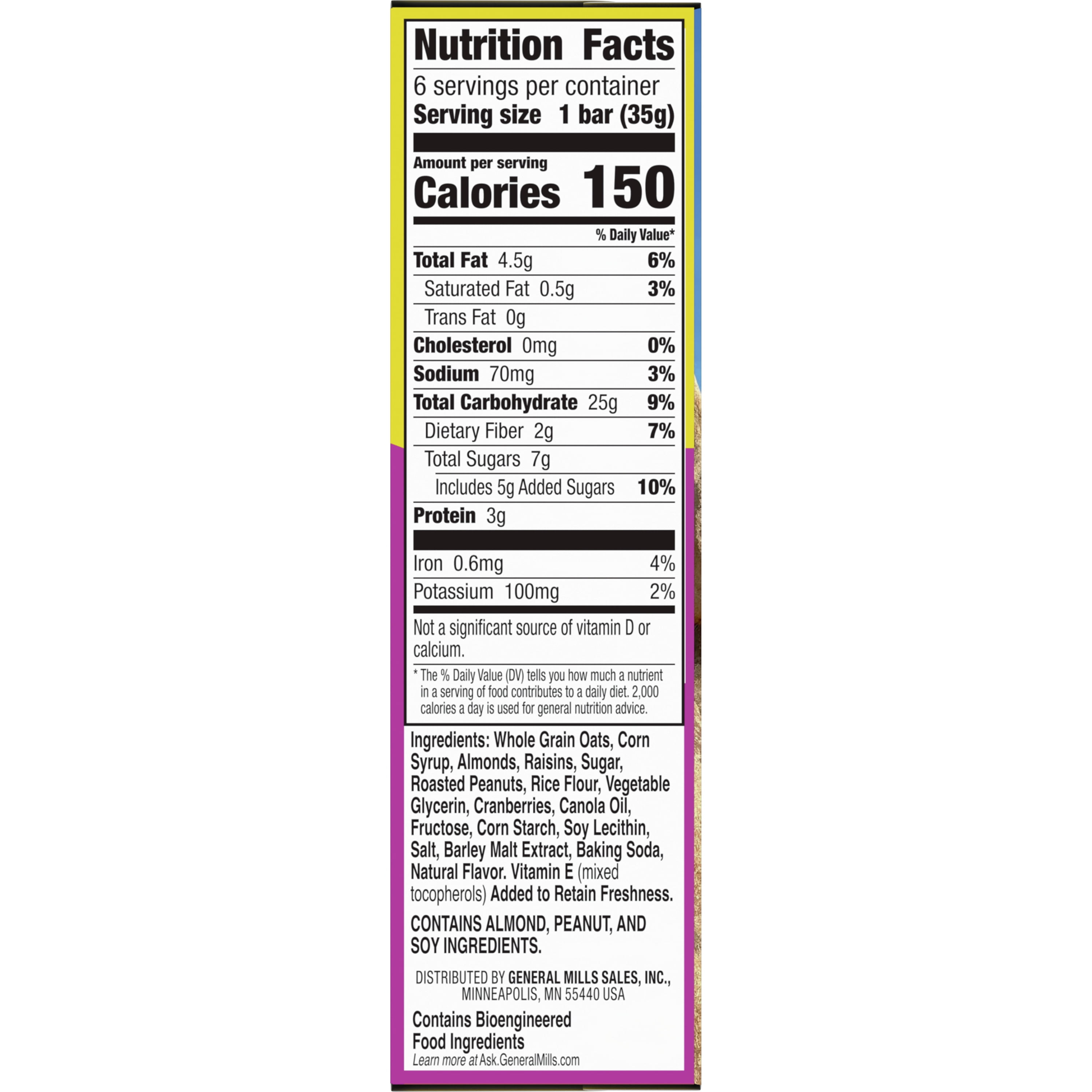 - CHEWY GRANOLA BARS: A combination of savory almonds, peanuts, succulent raisins and dried cranberries – plus whole grain oats; A must-have for an on-the-go snack