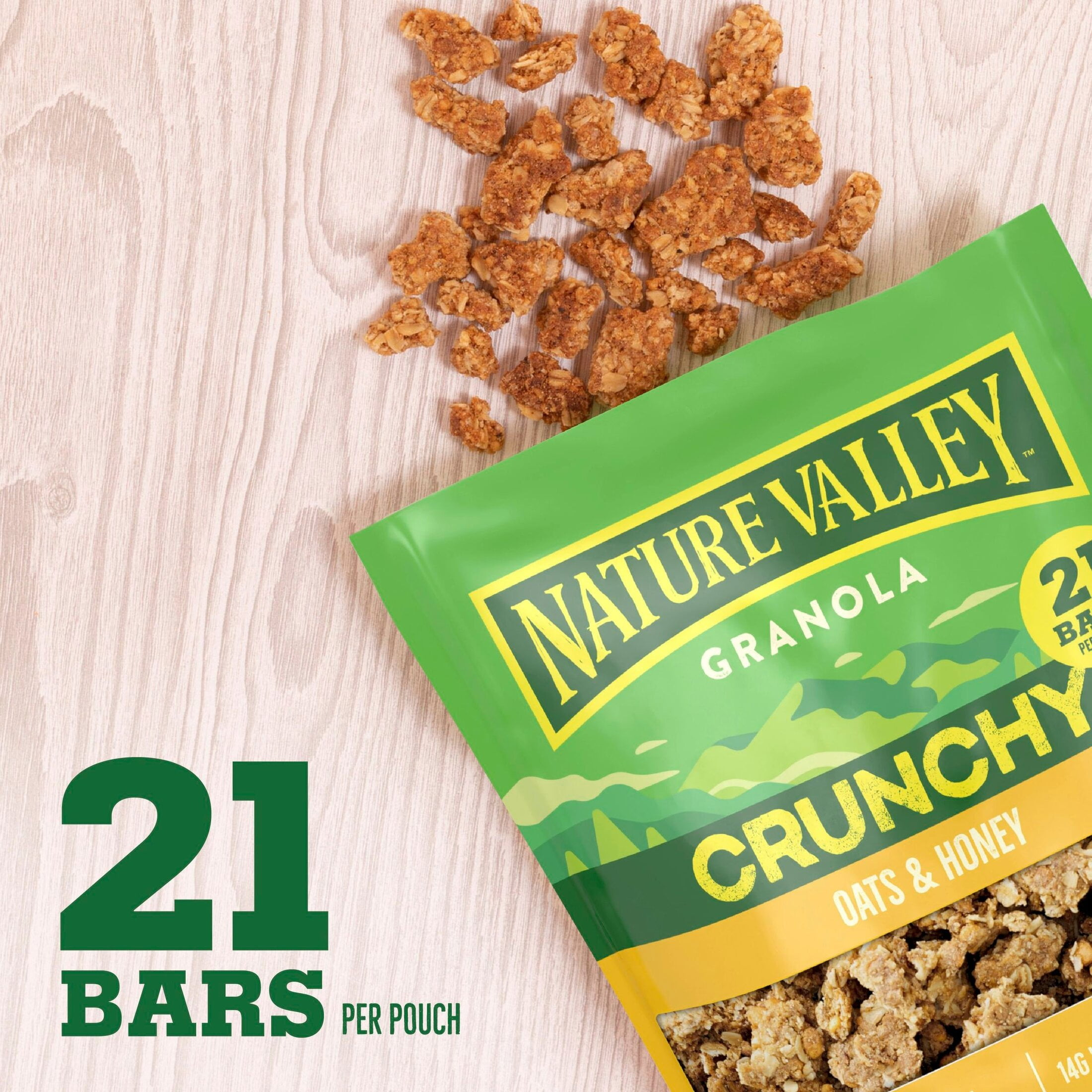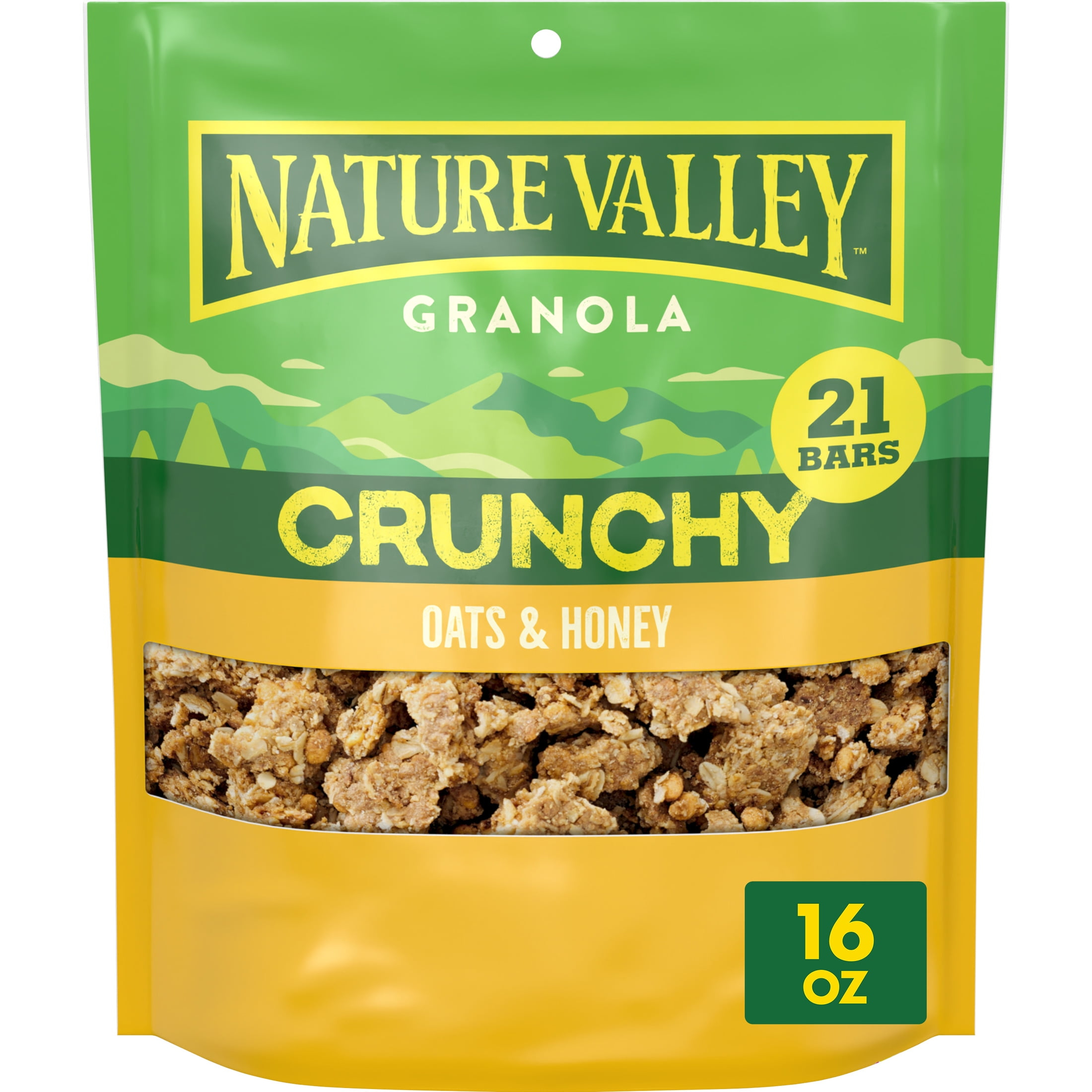 Fuel your adventures any time, any place with Nature Valley Crunchy Oats and Honey Granola. This 16 oz pouch has 21 bars’ worth of granola. The taste of sweet honey and the goodness of granola made with whole grain oats are a wholesome way to kick-start your day. Each serving provides energy from 14g whole grain (at least 48g recommended daily). Plus, the crunchy oats and honey granola clusters have no artificial flavors or colors, and no high fructose corn syrup. So whether you enjoy a bowlful as a breakfast cereal or take along the Pouch for family snacks on the run, this oat and honey granola mix delivers on the go energy. Add your own fruit and nut combination for DIY trail mix. Sprinkle the Nature Valley granola clusters over a yogurt parfait or acai bowl for serious crunch. This pouch of loose granola cereal is resealable for easy school snacks or part of breakfast on the go. At Nature Valley, we believe that what you put in is what you get out. So wherever the moment takes you and your family, you can rely on our great-tasting snacks to help keep you going, whenever and wherever you need it. Contains one plastic pouch of crunchy Nature Valley Crunchy Oats and Honey Granola, 16 oz; perfect for instant snacking, or a part of breakfast and meals.
