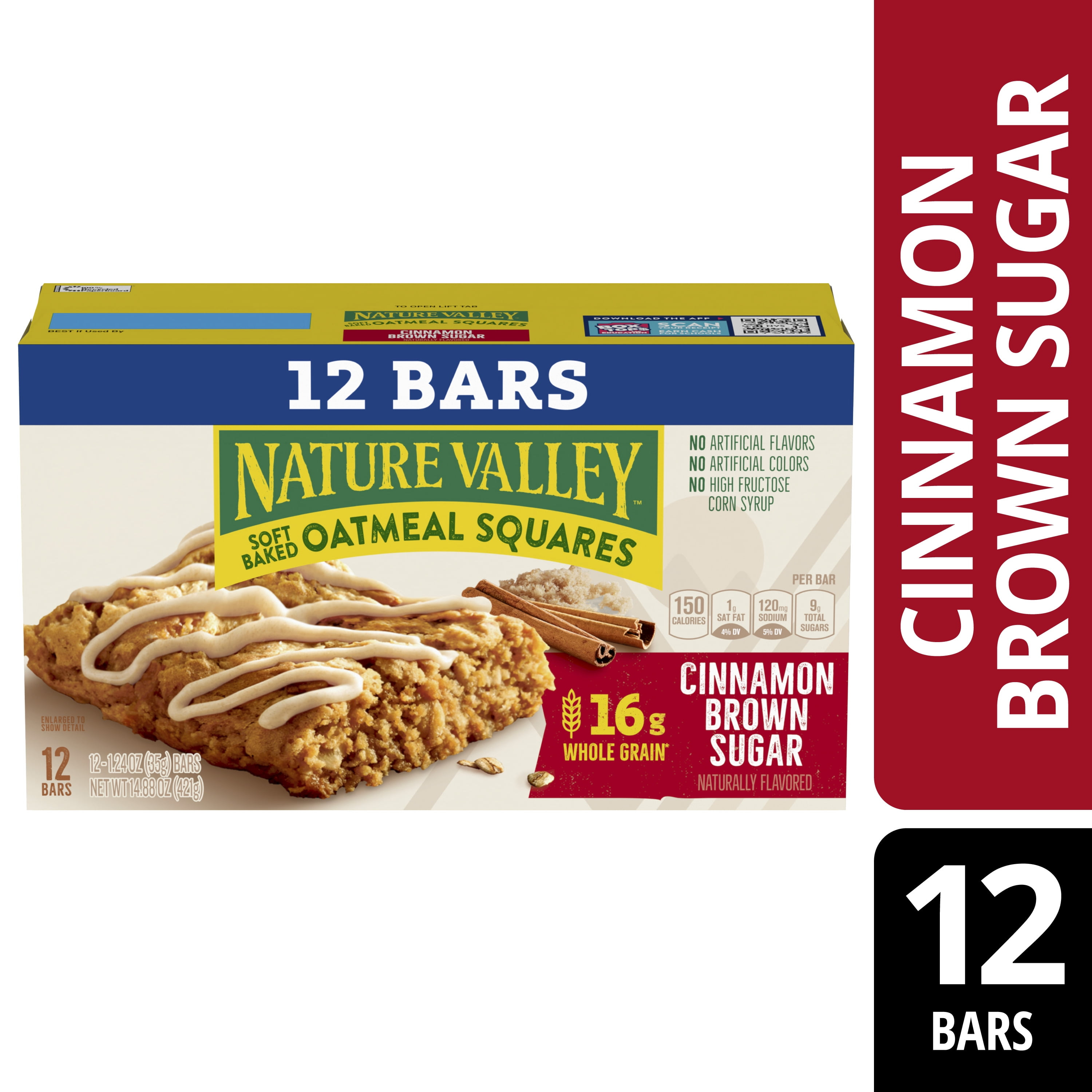 - CONTAINS: One 14.88 oz box of Nature Valley Cinnamon Brown Sugar Soft-Baked Oatmeal Squares; 12 count