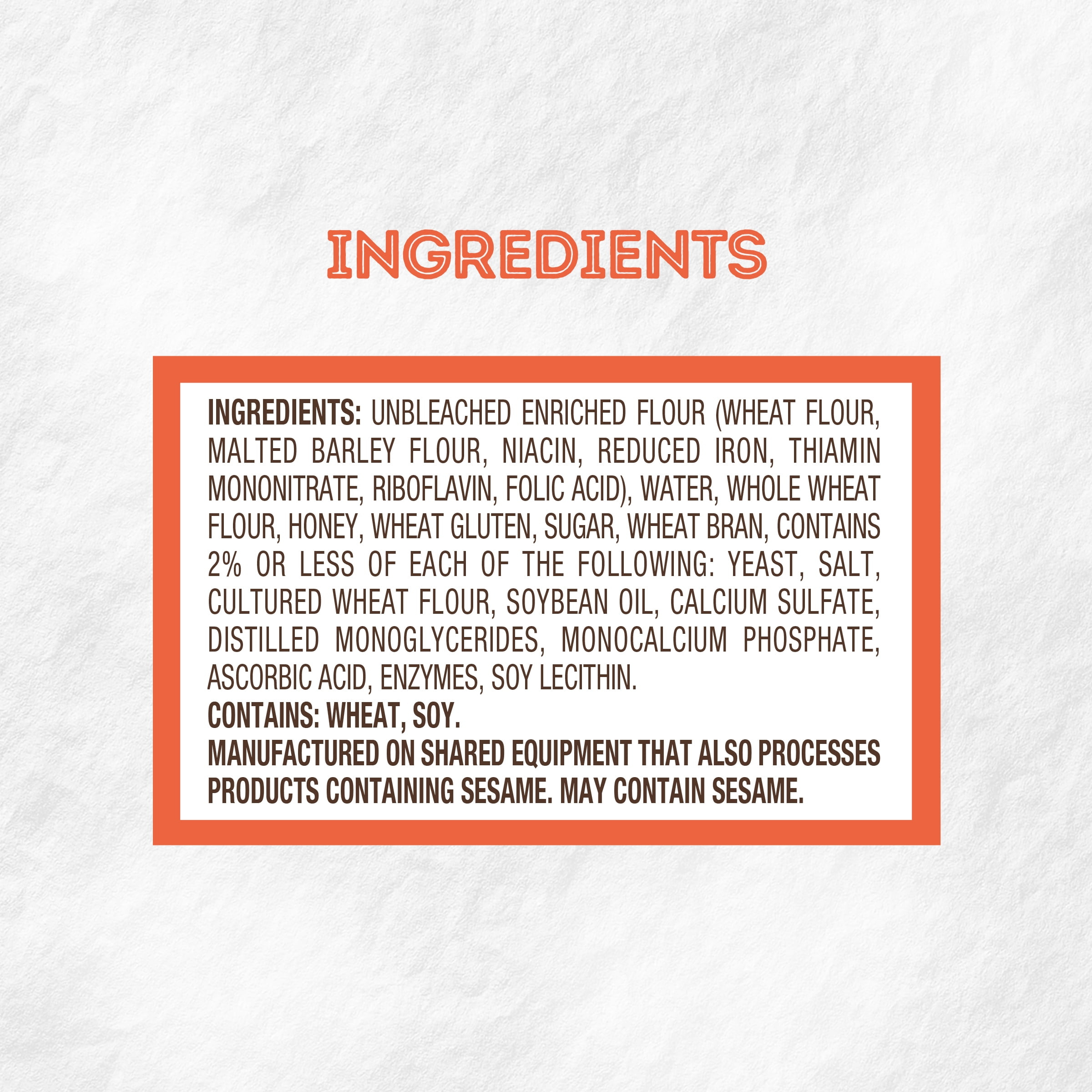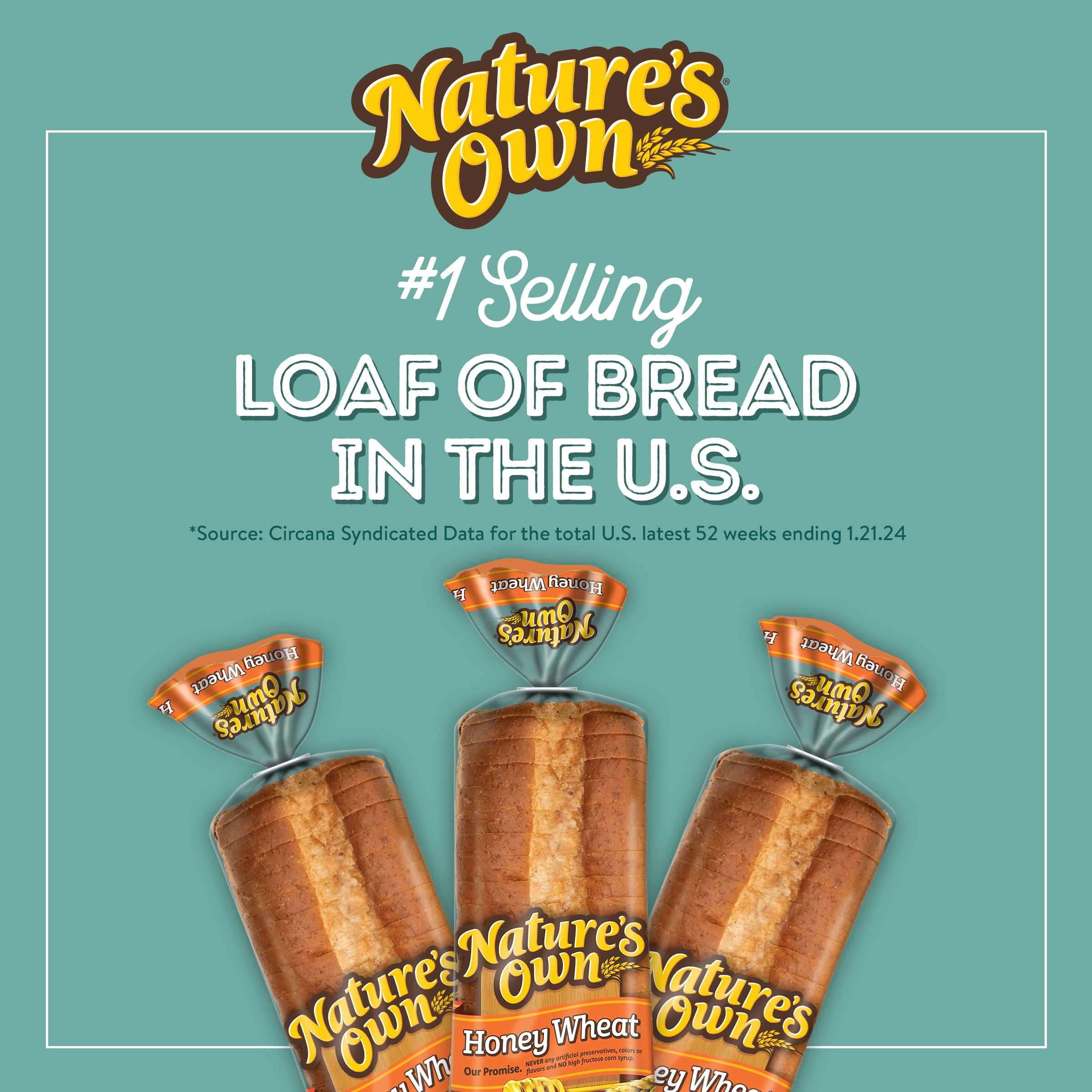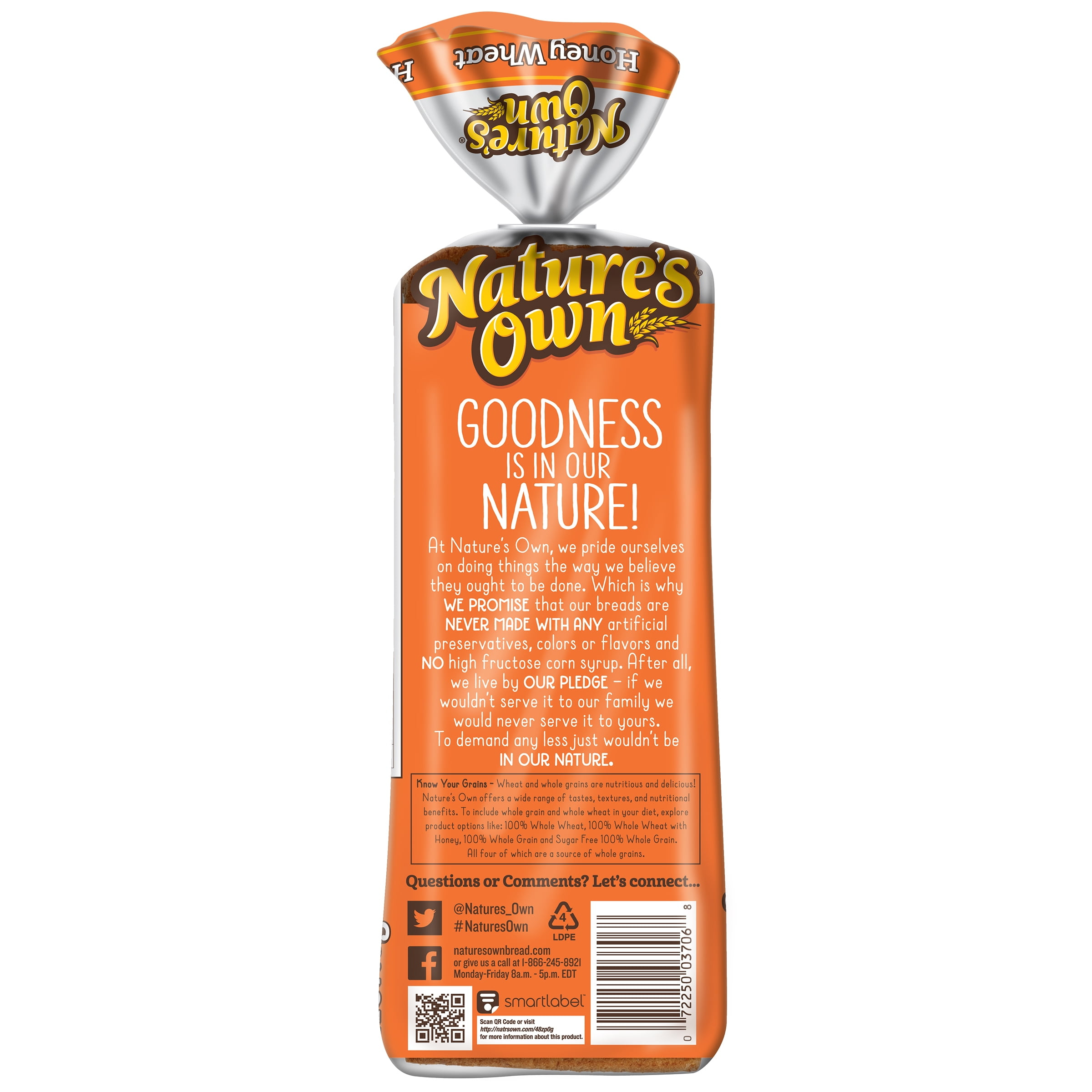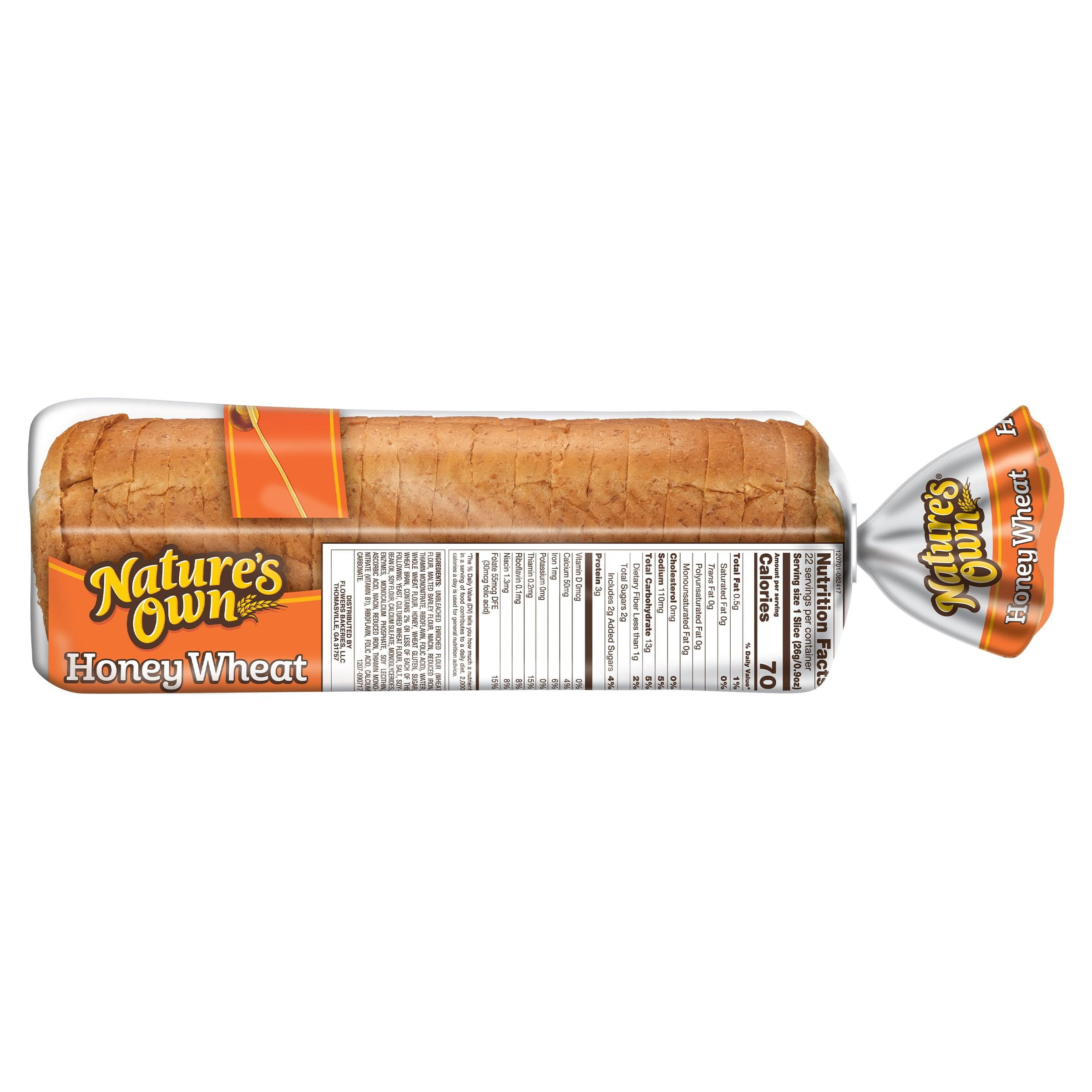 Taste the perfectly soft shelf-stable wheat bread sweetened with a touch of honey, and you’ll know why Nature’s Own Honey Wheat Sandwich Bread Loaf is the #1 selling loaf of bread in the United States.* Each slice of this sandwich bread contains no artificial ingredients and no cholesterol. Nature’s Own Honey Wheat 20 oz baked shelf-stable loaf is a low-fat food and the perfect sliced bread sandwich base for lunch. Just toast bread and add some jam for a quick snack. Quickly put together a school lunch or plan an impromptu picnic. Toss some slices with cinnamon, sugar and butter to create a delicious monkey bread, or you can pair this honey-sweetened bread with your favorite deli meats or classic peanut butter and jelly. Pile on the goodness and bring everyone together with Nature’s Own breads, buns and rolls. At Nature’s Own, we believe that anything worth doing is worth doing right. It’s a standard applied to each and every product that makes its way out of Nature’s Own bakeries. Choose from a variety of bread flavors and styles to fit whatever sandwich you have in mind. As America’s #1 selling loaf bread brand,* Nature’s Own maintains the freshness and softness that makes it a family favorite bread with no artificial preservatives, colors or flavors and no high-fructose corn syrup. Goodness is in our nature.*Source: Circana Syndicated Data for the total U.S. latest 52 weeks ending 01.21.2024