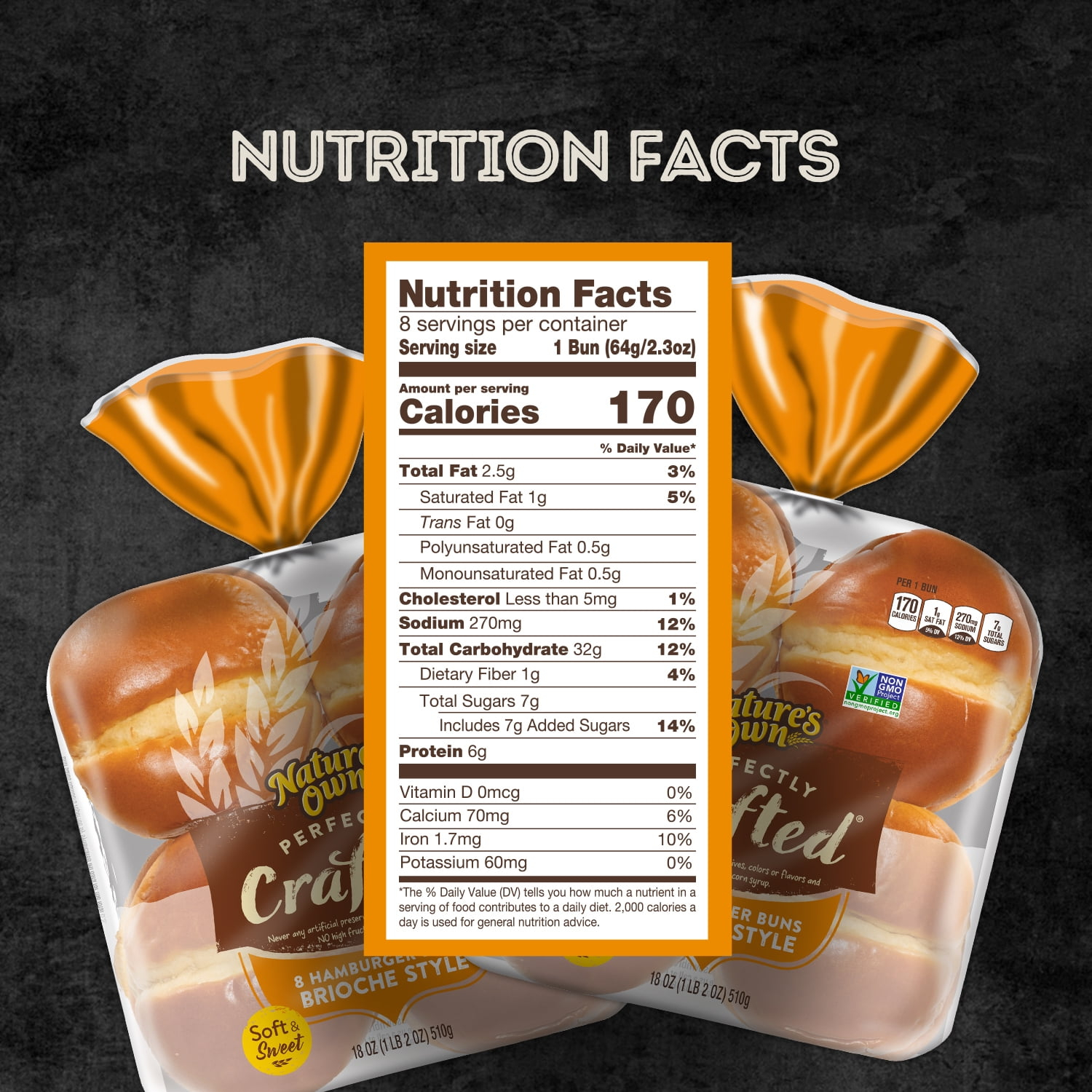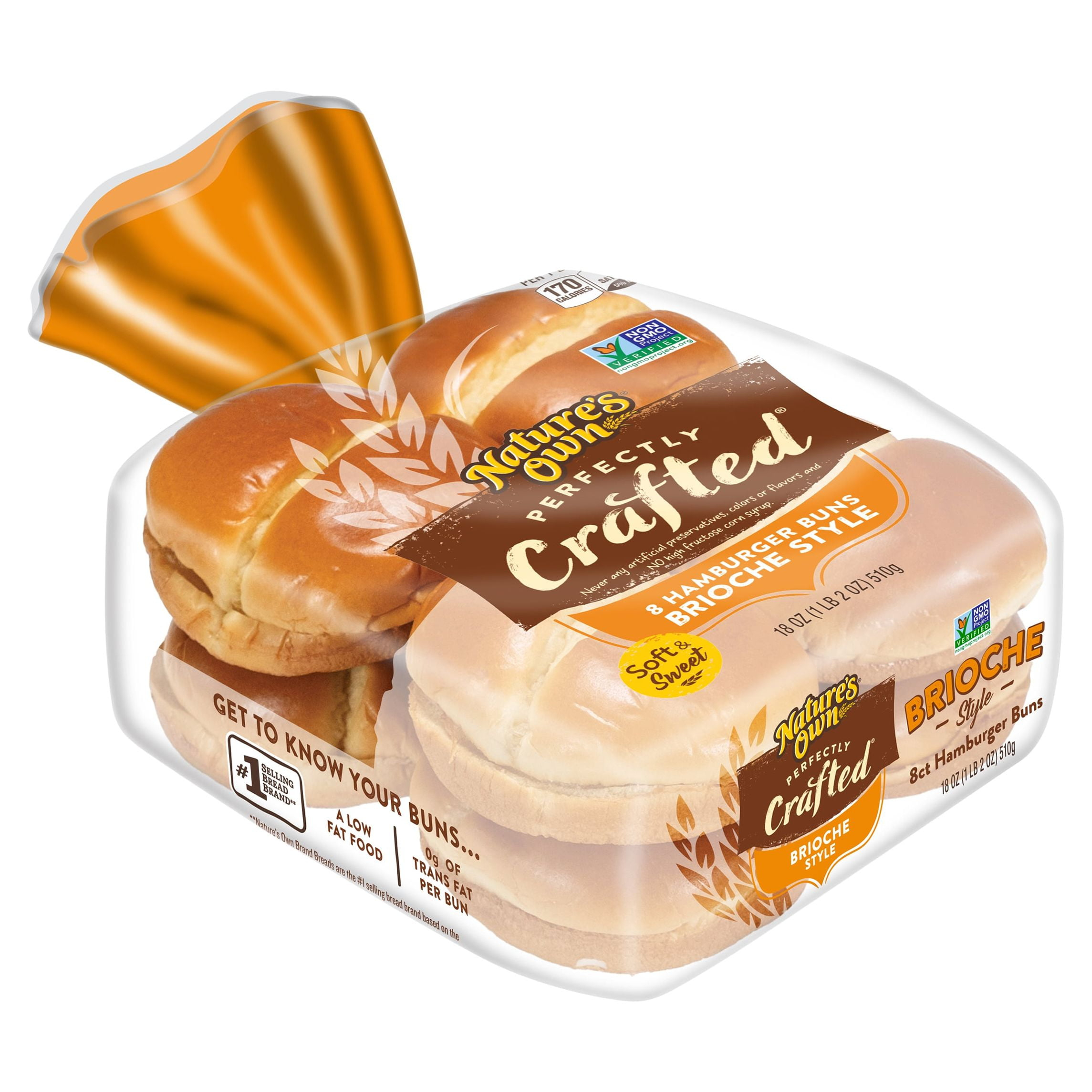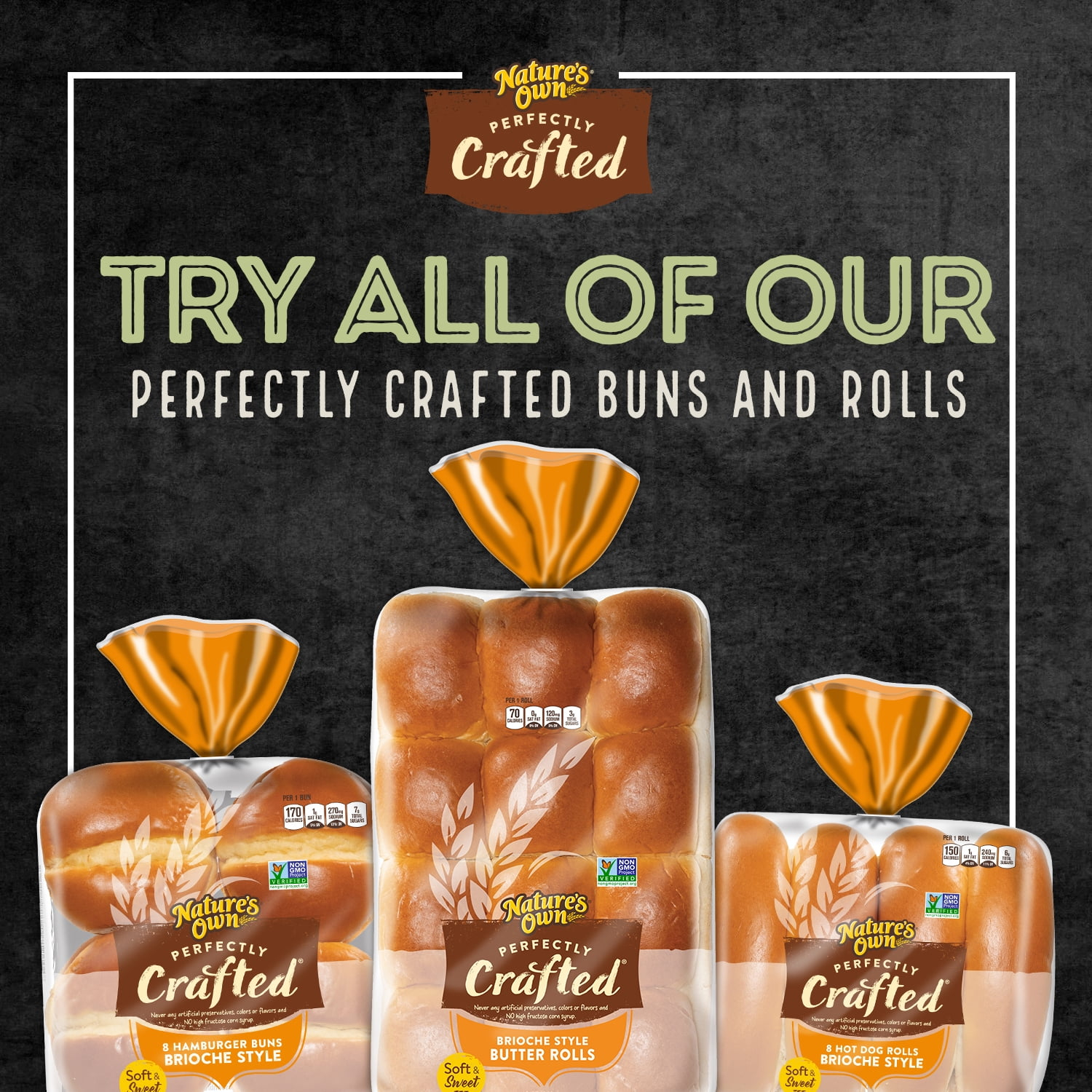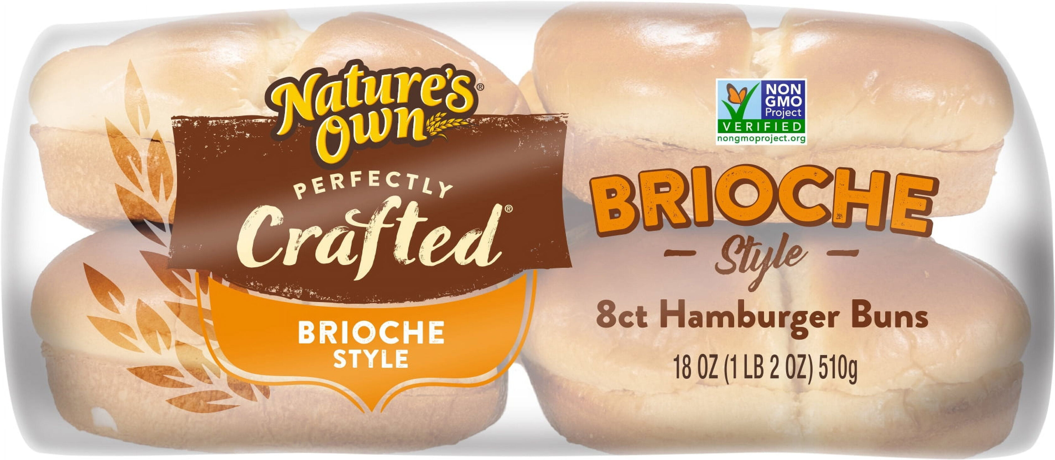 Nature’s Own Perfectly Crafted® Brioche Style Hamburger Buns set the bar high for your next barbecue with their soft texture and subtle sweetness. With eight fluffy shelf-stable and delicious brioche bread style shelf-stable burger buns, you can add a gourmet touch to picnics, family gatherings or camping. Load them up with juicy burgers and all the toppings, or add some sweetness to pulled pork sandwiches with cole slaw. Nature’s Own Perfectly Crafted soft hamburger buns have no artificial ingredients and no cholesterol. So, you’ll feel confident serving family and friends delicious choices from Nature’s Own bread, America’s #1 selling loaf bread brand. *Source: IRI*Source: Circana Syndicated Data for the total U.S. latest 52 weeks ending 1.21.24