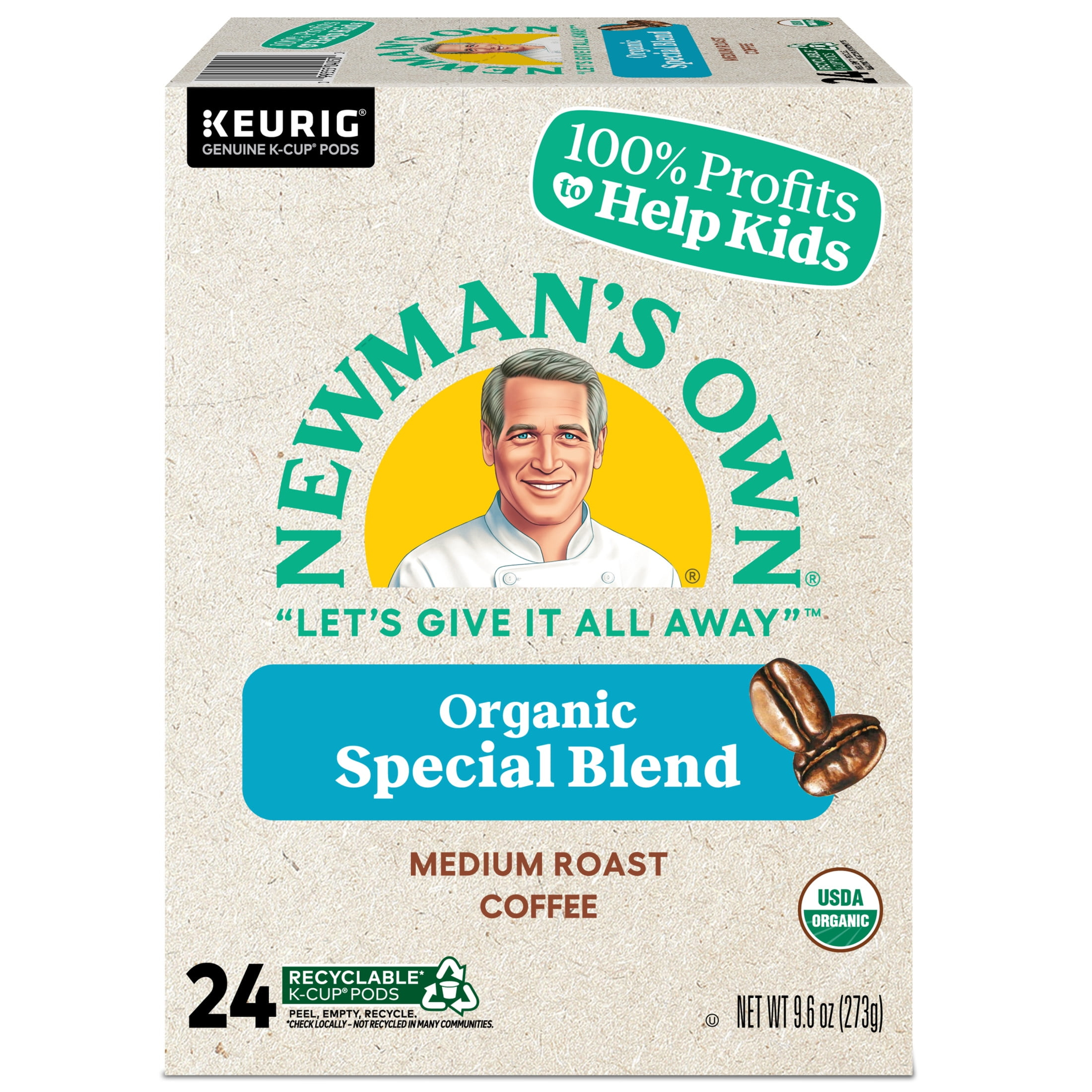 Newman’s Own Organic Special Blend is great-tasting coffee that also happens to make a real difference in the world. A hearty, full-bodied blend of medium and dark roasts, it’s bold yet refined, strong yet smooth for a rich, robust, and satisfying flavor. In addition to being 100% USDA Certified Organic and Certified Orthodox Union Kosher, Newman’s Own proudly supports organizations such as SeriousFun Children’s Network, which delivers more than 160,000 life-changing experiences each year to kids living with serious illnesses. In total, more than $600 million has been donated to help kids and other good causes through Newman’s Own Foundation since 1982. The Foundation is a very important part of our story and the true heart of Newman’s Own. It’s in our DNA. It’s why we exist and what motivates us. Newman’s Own Organic Special Blend delivers an inspired blend of medium-roasted Central American and darker-roasted Indonesian coffees for a rich and robust flavor with ample body that’s 100% organic. K-Cup® pods are also recyclable* in some communities, so you can feel even better drinking Newman’s Own Organic Special Blend. Enjoy the same great-tasting coffee you know and love, and when you’re done, please peel, empty, and recycle. *Check locally, not recycled in many communities.