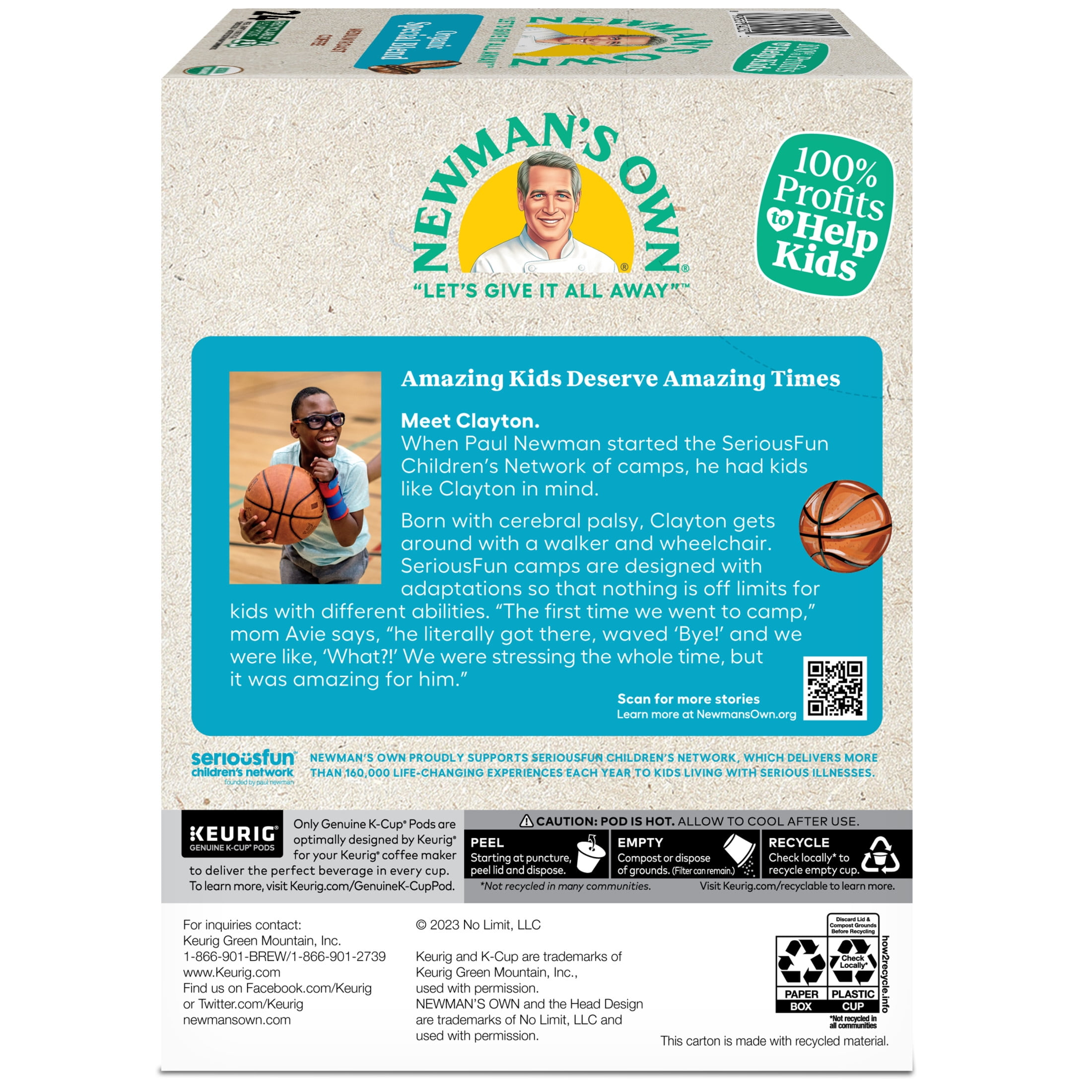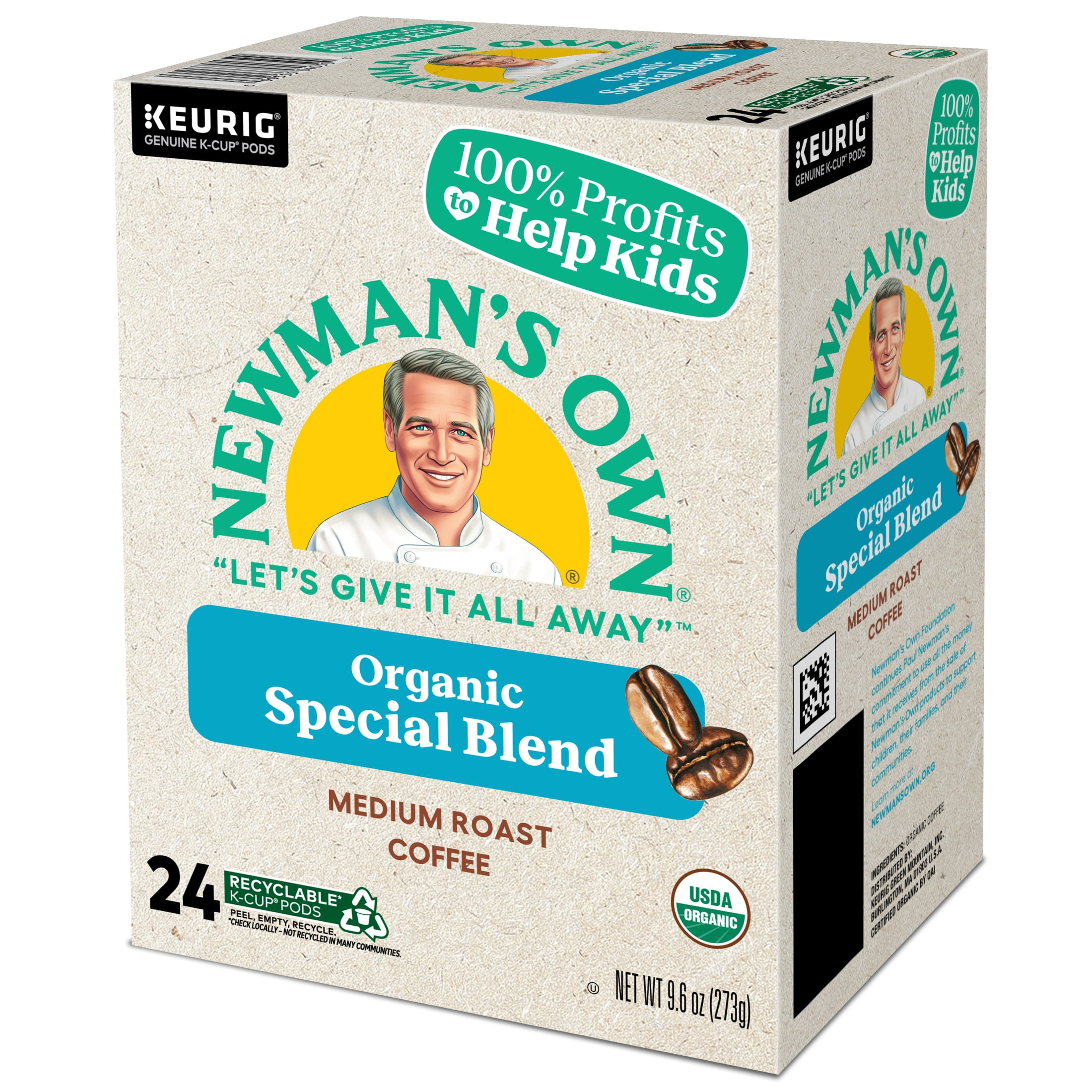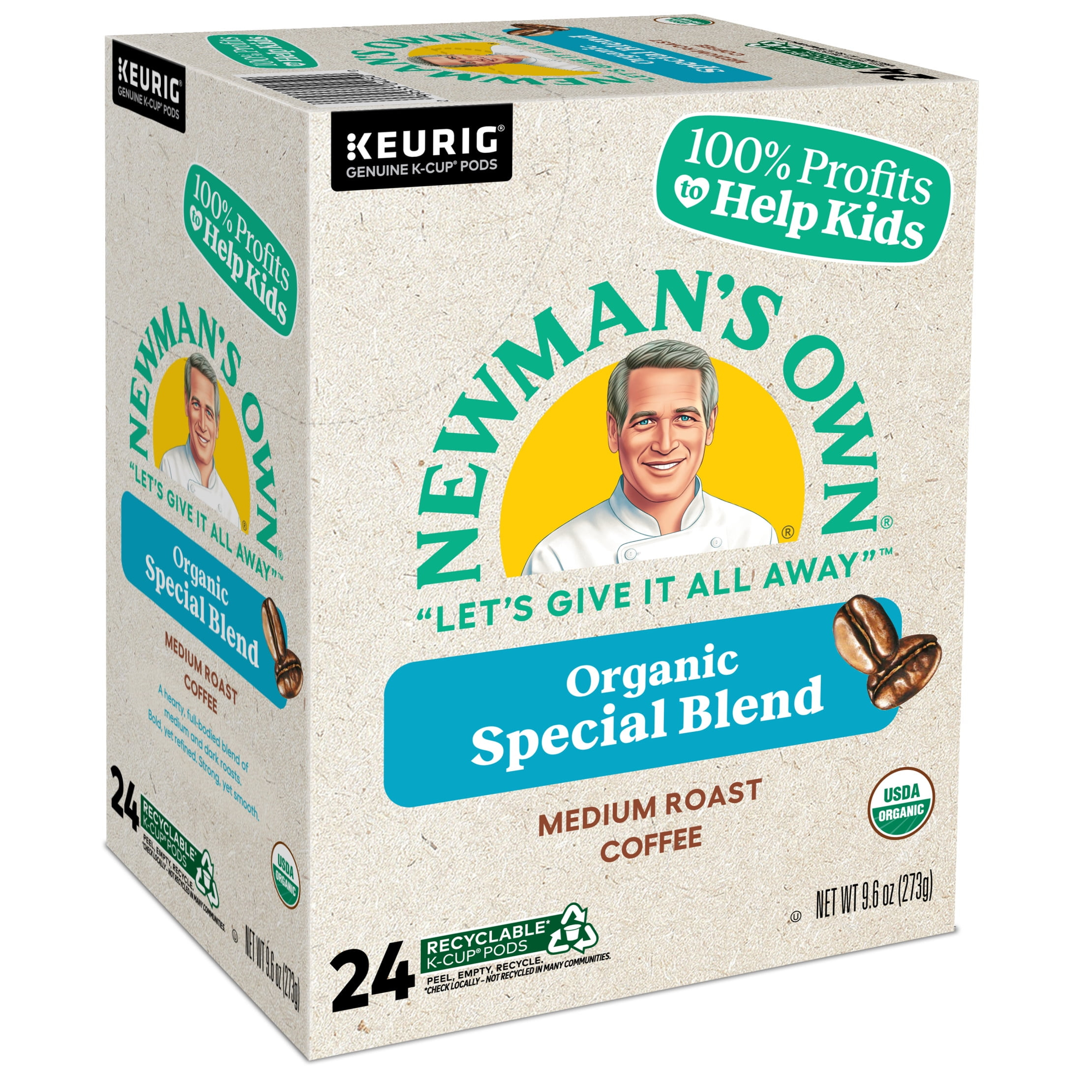 Newman’s Own Organic Special Blend is great-tasting coffee that also happens to make a real difference in the world. A hearty, full-bodied blend of medium and dark roasts, it’s bold yet refined, strong yet smooth for a rich, robust, and satisfying flavor. In addition to being 100% USDA Certified Organic and Certified Orthodox Union Kosher, Newman’s Own proudly supports organizations such as SeriousFun Children’s Network, which delivers more than 160,000 life-changing experiences each year to kids living with serious illnesses. In total, more than $600 million has been donated to help kids and other good causes through Newman’s Own Foundation since 1982. The Foundation is a very important part of our story and the true heart of Newman’s Own. It’s in our DNA. It’s why we exist and what motivates us. Newman’s Own Organic Special Blend delivers an inspired blend of medium-roasted Central American and darker-roasted Indonesian coffees for a rich and robust flavor with ample body that’s 100% organic. K-Cup® pods are also recyclable* in some communities, so you can feel even better drinking Newman’s Own Organic Special Blend. Enjoy the same great-tasting coffee you know and love, and when you’re done, please peel, empty, and recycle. *Check locally, not recycled in many communities.