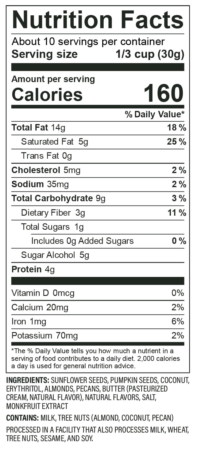 - NO WRONG WAY TO LOVE US : Enjoy our granola with milk as a Low-Carb, Low-Sugar, Keto Cereal, atop your favorite smoothie or parfait, or straight out of the bag!