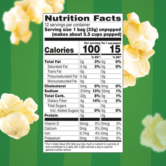 Orville Redenbacher’s SmartPop! Butter Popcorn is 94% fat free, made with 0 g trans fat per serving, and has 15 calories per cup popped, making it a smart food to snack on. Plus, Orville Redenbacher’s is the only leading brand that uses real butter*, and we are the only leading brand of microwave popcorn with no artificial preservatives, flavors, or dyes in all of our products. Our 100% whole grain microwave popcorn is made with high-quality, non-GMO kernels. Orville Redenbacher’s isn’t just a name-it comes with a promise of excellence and authenticity. This microwave popcorn is sure to add a pop of fun to every day. * Select products contain real butter. See package ingredients for details.