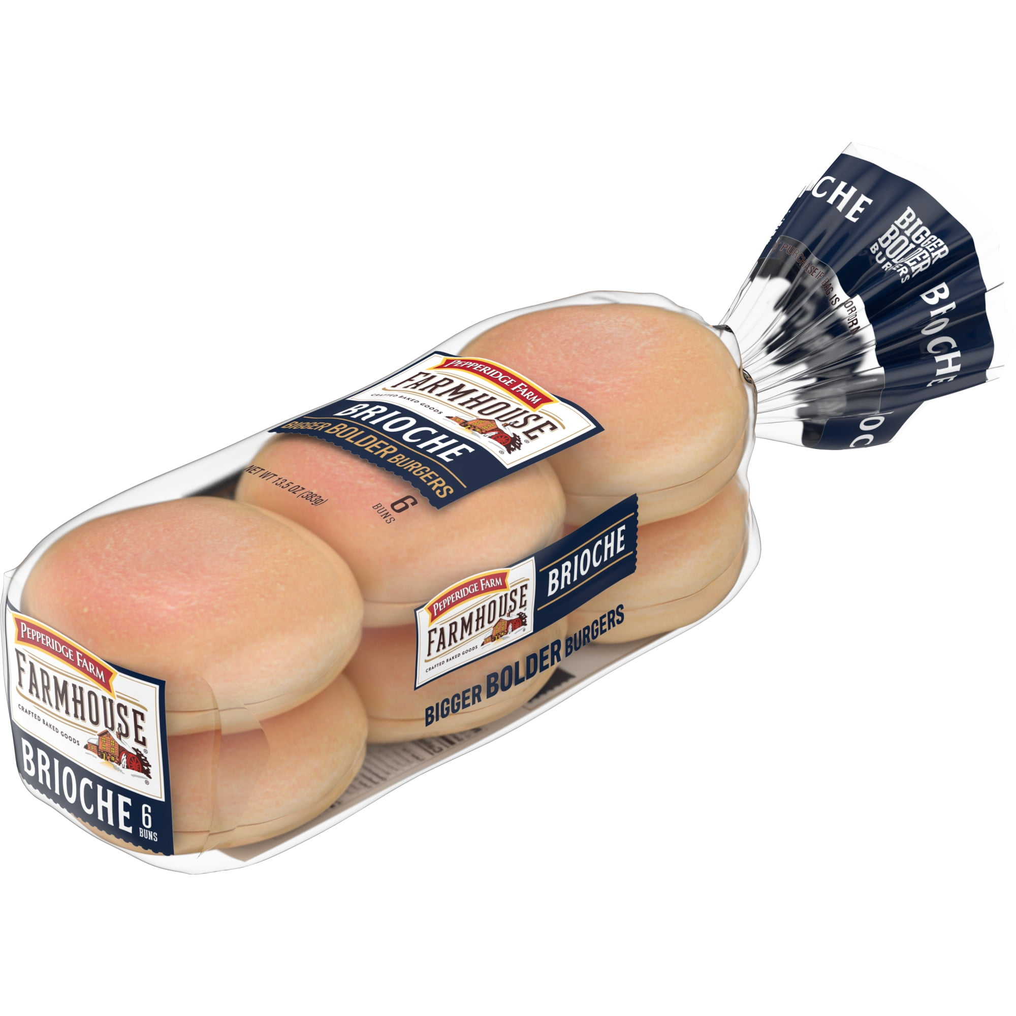 Add the comfort of homemade taste in every bite with our Pepperidge Farm Farmhouse Brioche Hamburger Buns. The flavor and texture of delicious, hearty buns just can’t be rushed, and that’s why our bakers bake our Farmhouse buns with deliberate, thoughtful care. Brioche Hamburger Buns are perfectly crafted for a bigger, bolder burger! Pepperidge Farm Farmhouse Brioche Buns are the perfect balance of sweet, salty and buttery goodness. These buns are soft, yet strong enough to stand up to the heartiest burgers without falling apart. So whether you love burgers with bacon and cheese or onions and peppers, go ahead and load ‘em up! For Pepperidge Farm, baking is more than a job. It’s a real passion. Each day, our bakers take the time to make every loaf of bread the best way they know how – by using carefully selected, quality ingredients. Make your meals a little more special with our 6-pack of delicious buns and enjoy the great taste of homemade. There’s No Taste Like Home. Shelf-stable product.