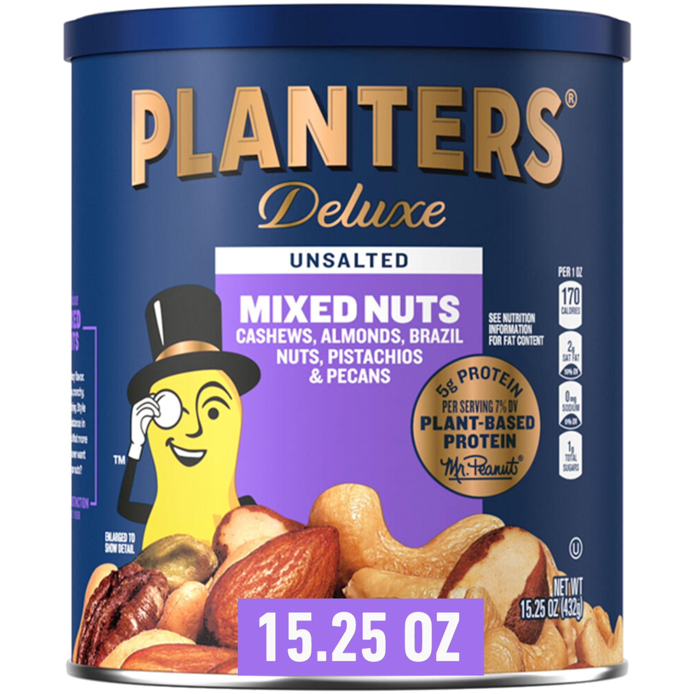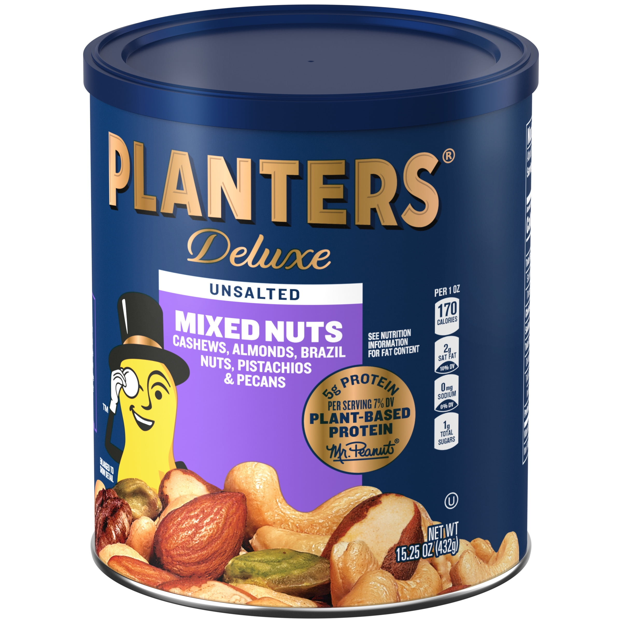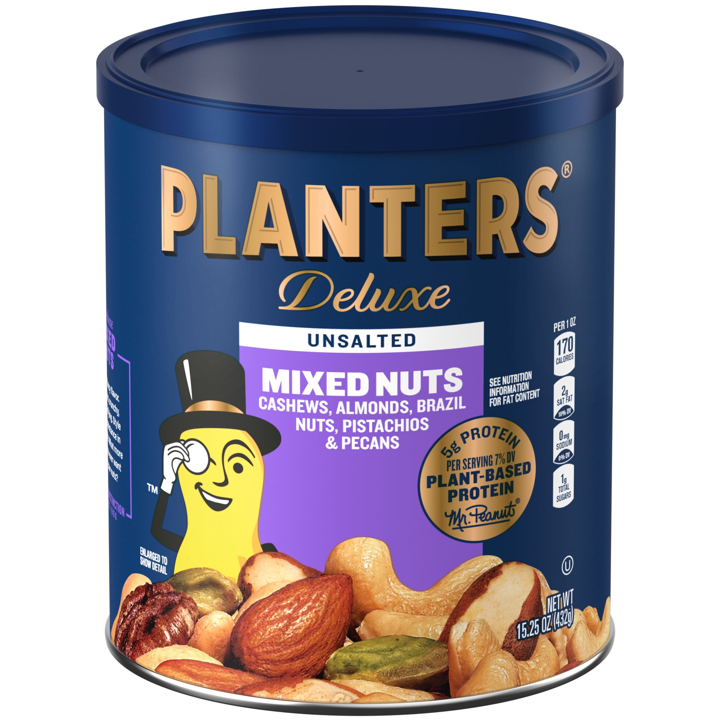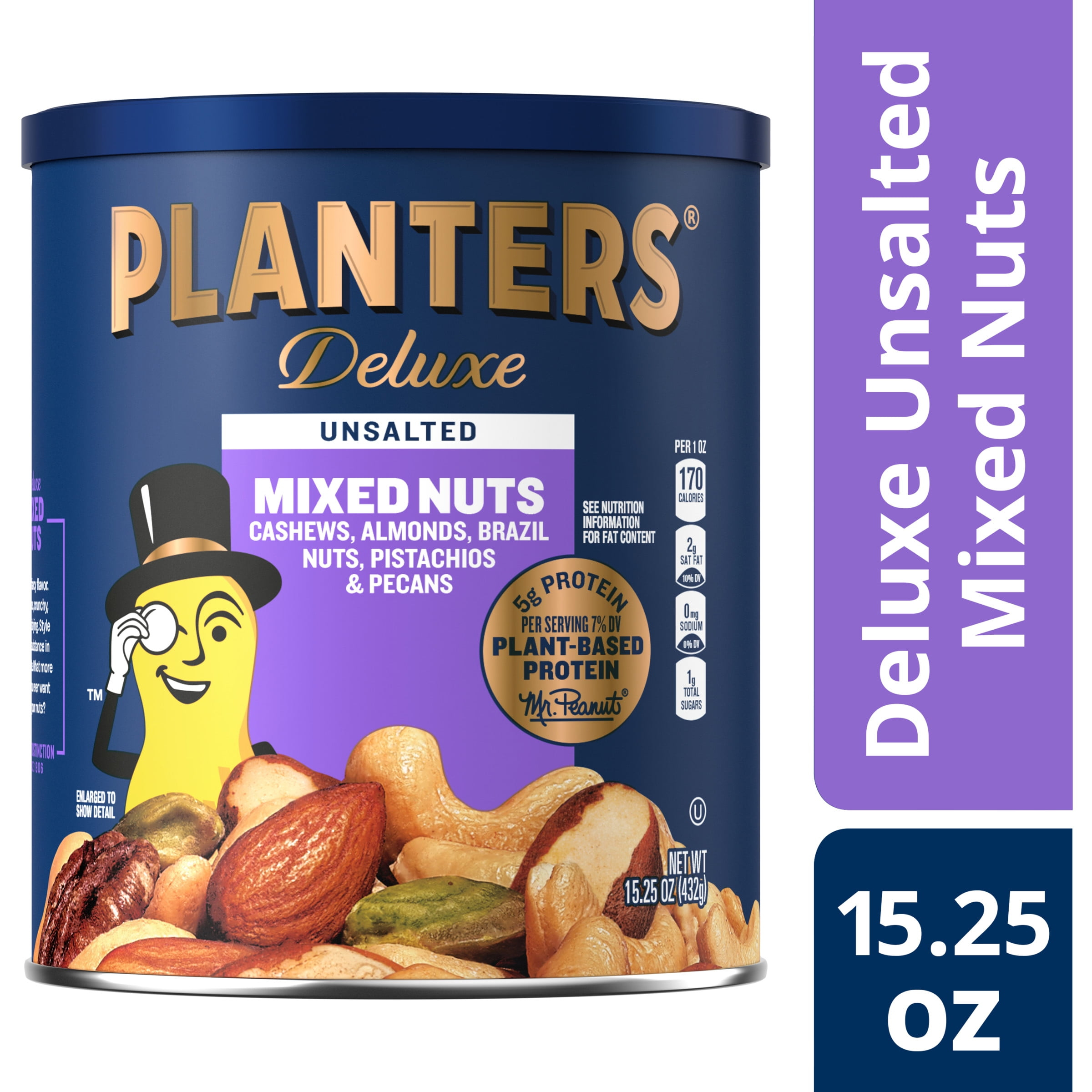 - Planters Deluxe Unsalted Mixed Nuts are a delicious mix of premium nuts with no added salt