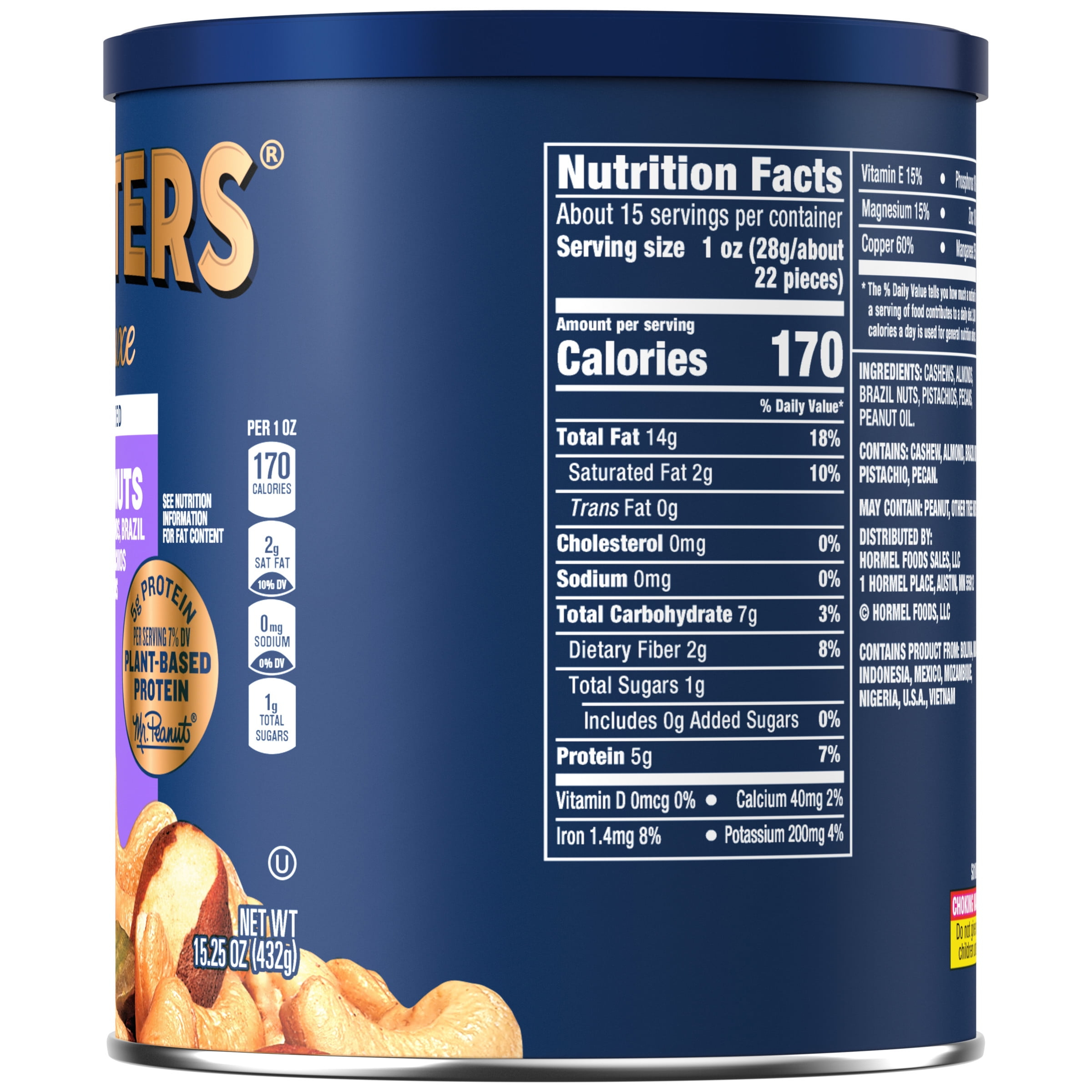 - One 15.25 oz. canister of Planters Deluxe Unsalted Mixed Nuts