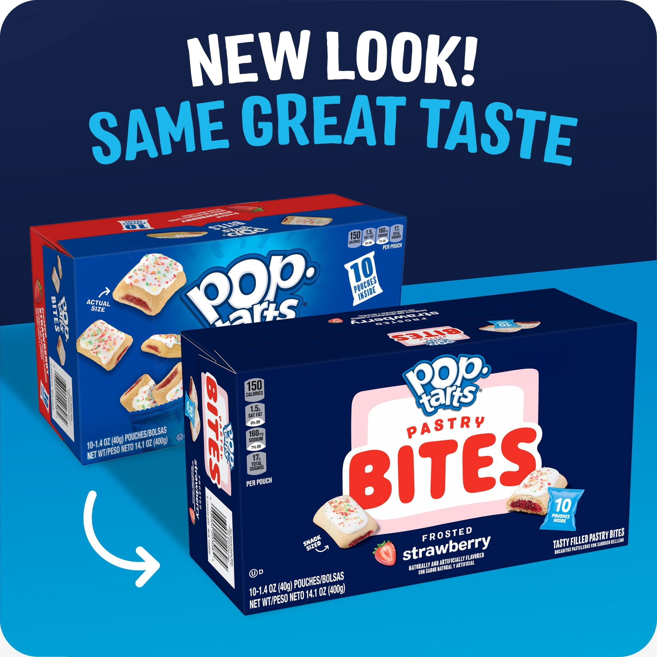 - Includes 1, 14.1oz box containing 10, 1.4oz pouches of Pop-Tarts baked pastry bites; Packaged for freshness and great taste