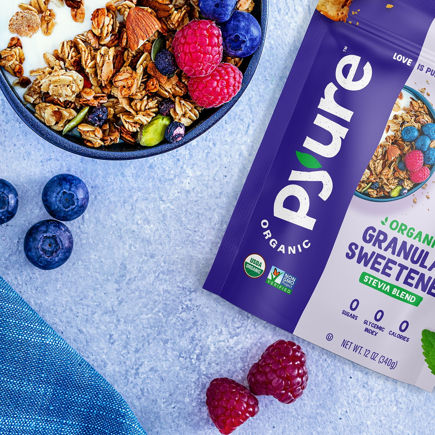 Sweeten everything from cookies and cakes to hot coffee or iced tea; this great tasting, granulated sugar substitute is our most versatile product to date! A match made in heaven, Pyure blends the highest quality Organic Stevia & Organic Erythritol to create a sugar-free sweetener that is as delicious as it is easy to use. Approximately 2X sweeter than sugar, a little bit goes a long way! Ketogenic lifestyle and Diabetic friendly, Pyure Organic Stevia Blend All-Purpose Sweetener contains zero net carbohydrates and zero calories. Whether baking up a batch of brownies, enjoying lemonade, or sprinkling onto fruit, Pyure is so tasty and sweet, you’ll forget sugar was ever an option. This is our favorite classic sweetener and pantry essential that you and your family will love.