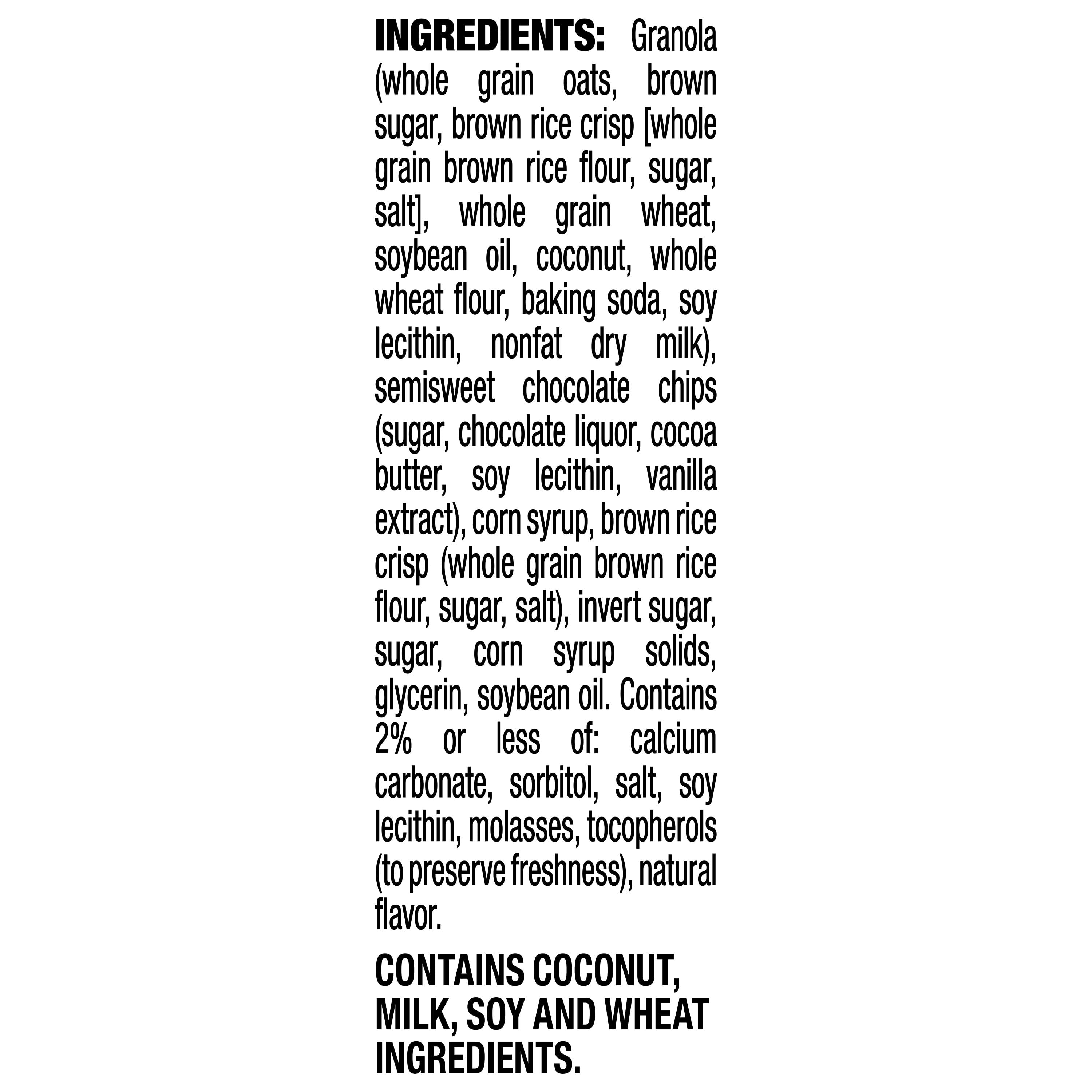 - The chewy granola and delicious, real chocolate chips offer a sweet snacking option.