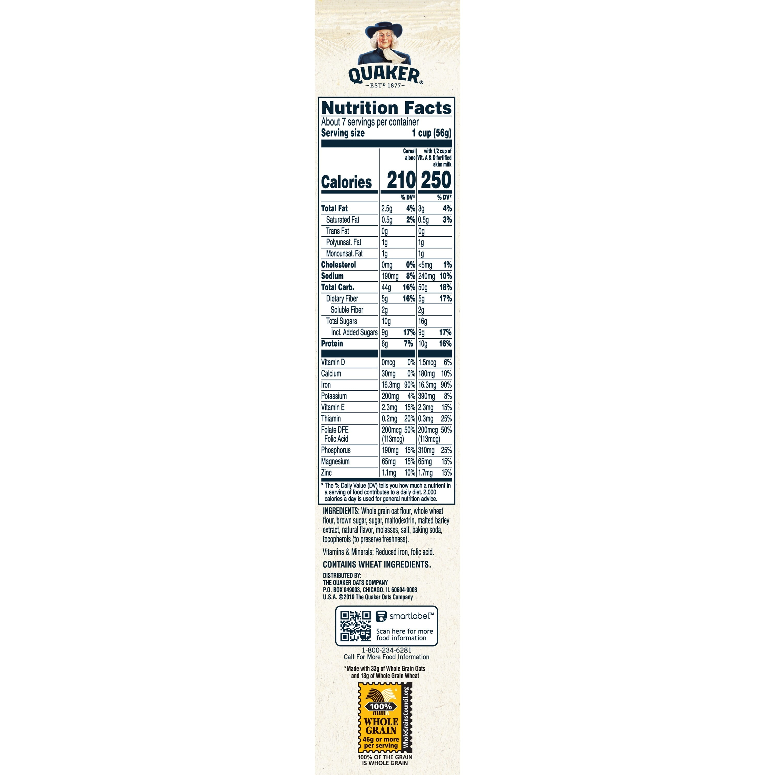 - 46 grams of whole grains per serving