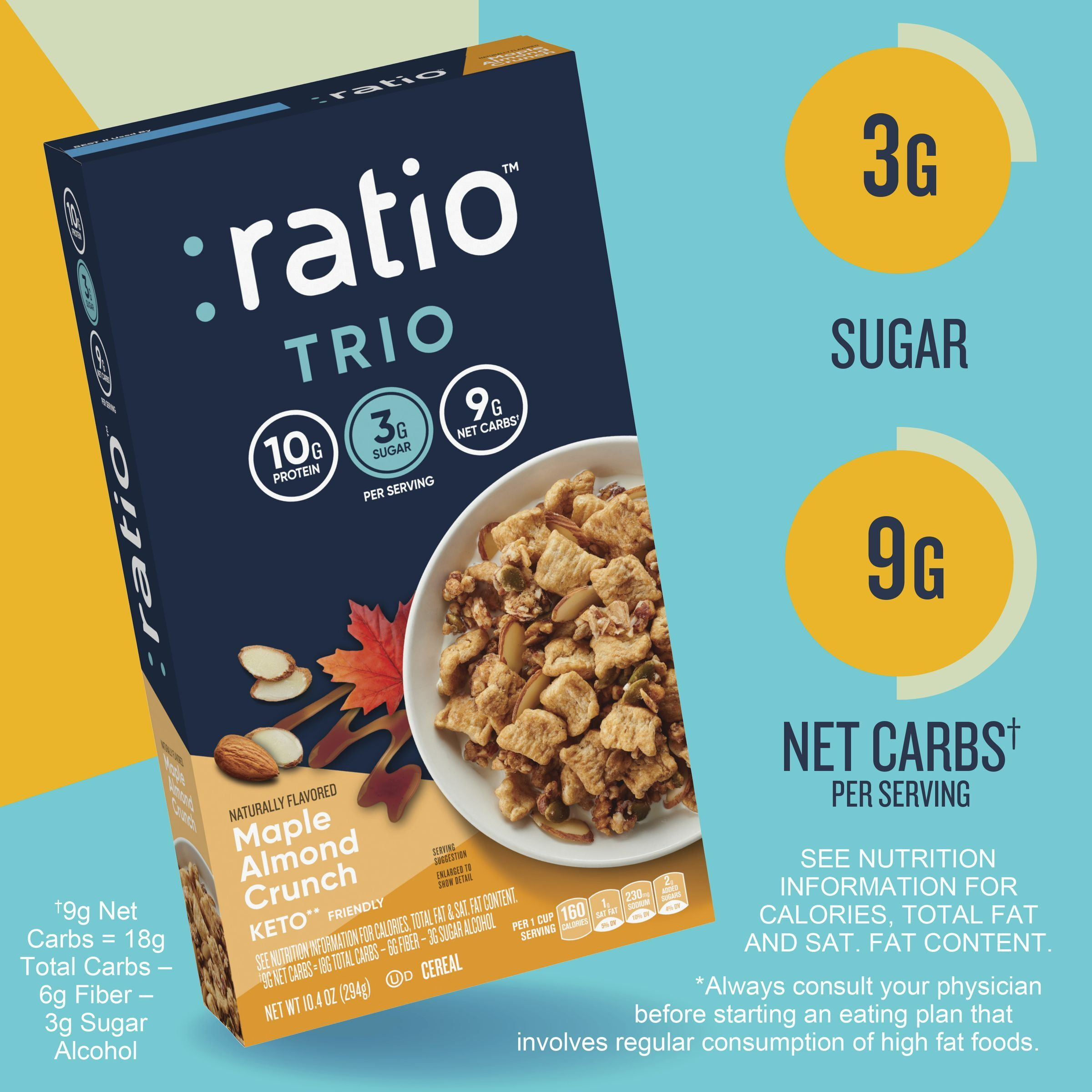 Ratio Trio Maple Almond Crunch Cereal, 10g Protein, Keto Friendly, 10.4 oz