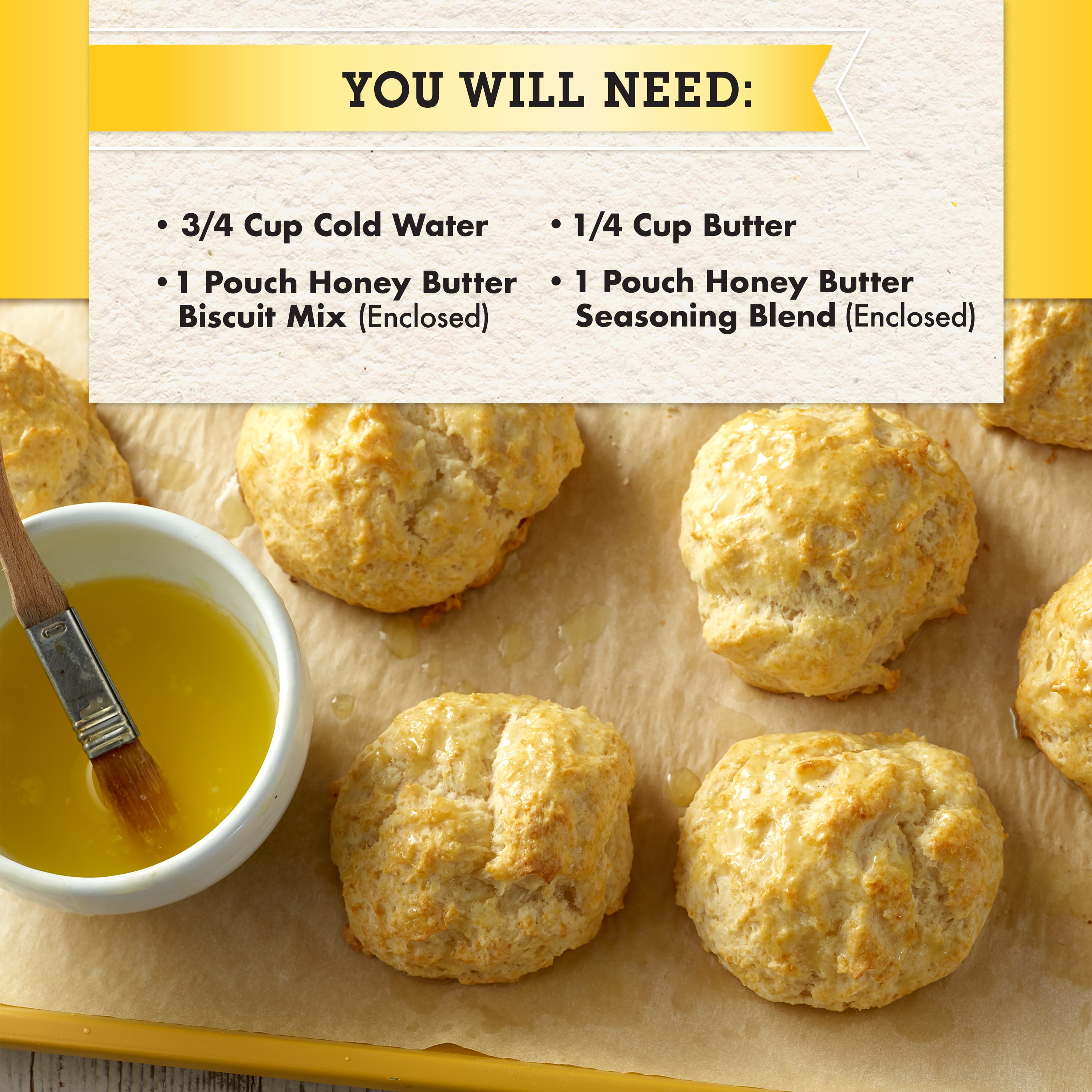 Red Lobster Honey Butter Biscuits are a sweet, delicious complement to any meal. Whether you’re enjoying them with eggs for breakfast or as a side dish to a home cooked dinner, these biscuits steal the show. Plus, they’re so easy to make. Simply add water to the mix and bake. Before serving, mix the contents of the enclosed honey butter pouch with melted butter and brush or spoon it on your freshly baked biscuits. Then sit back….and enjoy! This order includes one 11.36-ounce box.