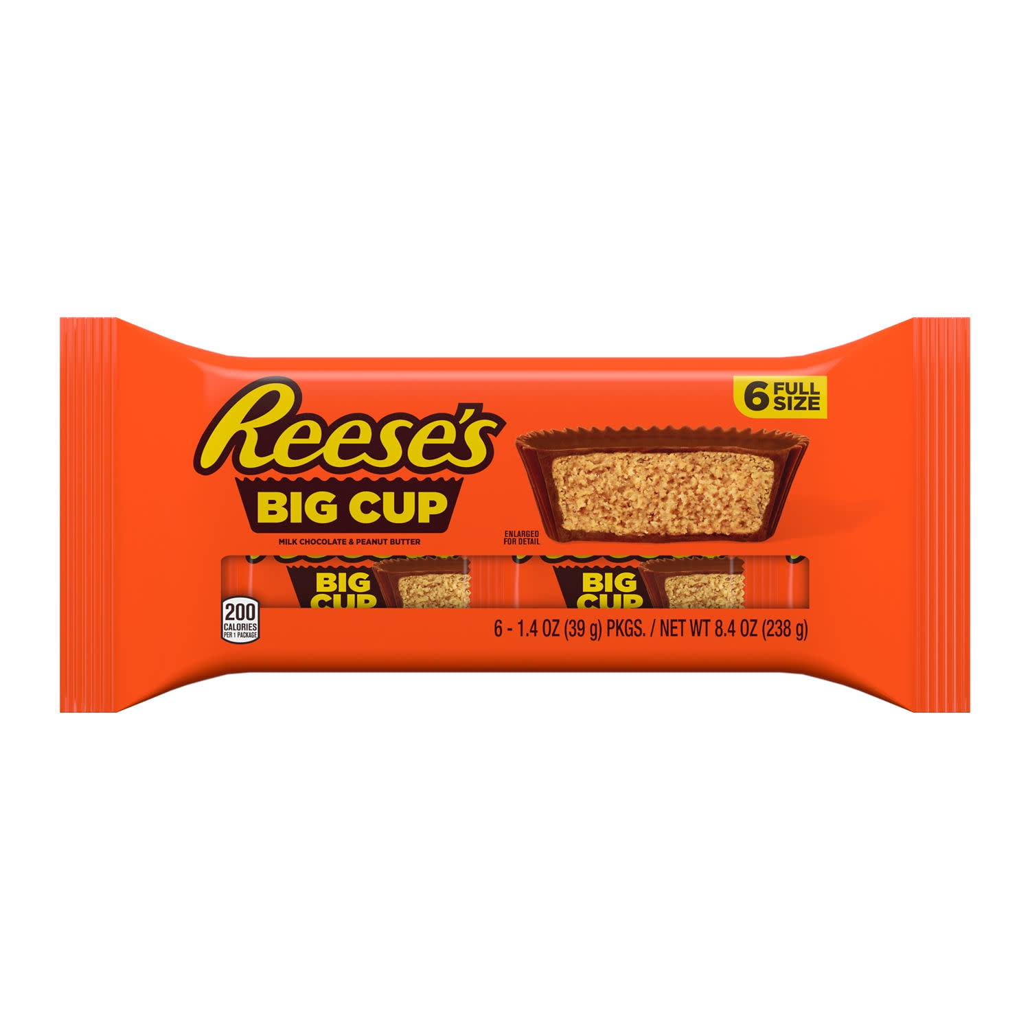 Reese’s Big Cup Milk Chocolate Peanut Butter Cups Candy, Packs 1.4 oz, 6 Count