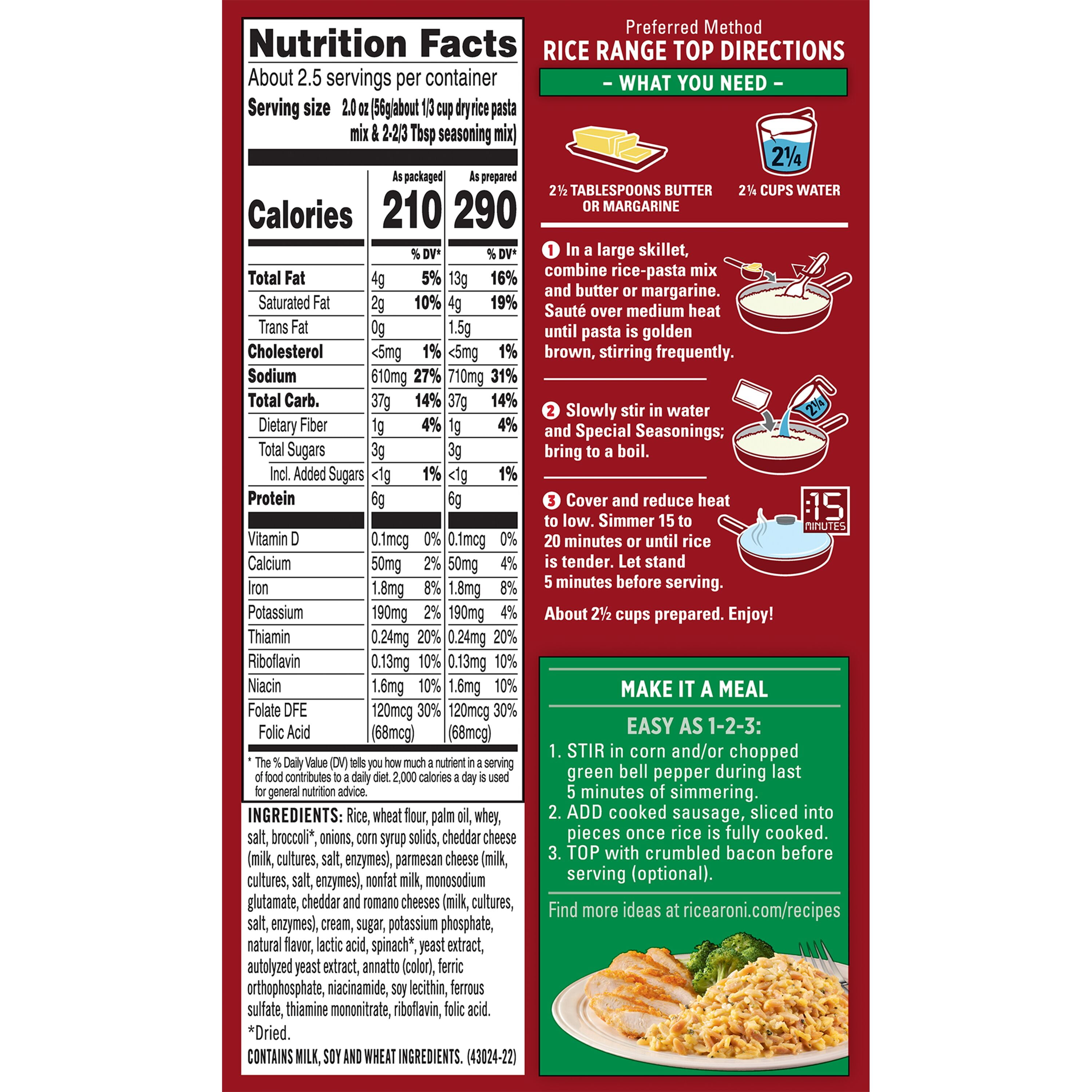 - Includes 1 (6.5 oz) box of Rice a Roni Cheddar Broccoli Flavor Rice