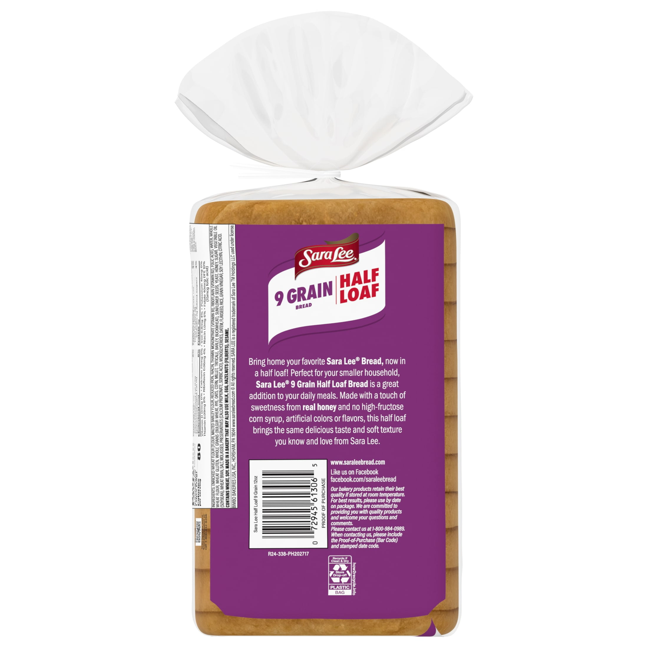 Bring home your favorite Sara Lee Bread, now in a half loaf! Perfect for your smaller household, Sara Lee 9 Grain Half Loaf Bread is a great addition to your daily meals. Made with a touch of sweetness from real honey and no high fructose corn syrup, artificial colors or flavors, this half loaf brings the same delicious taste and soft texture you know and love from Sara Lee. Enjoy Sara Lee Half Loaf right out of the bag for convenient meals to fit your busy schedule. Give yourself the taste you love and the goodness you want, without the concern of letting a full loaf go to waste, with Sara Lee 9 Grain Half Loaf.