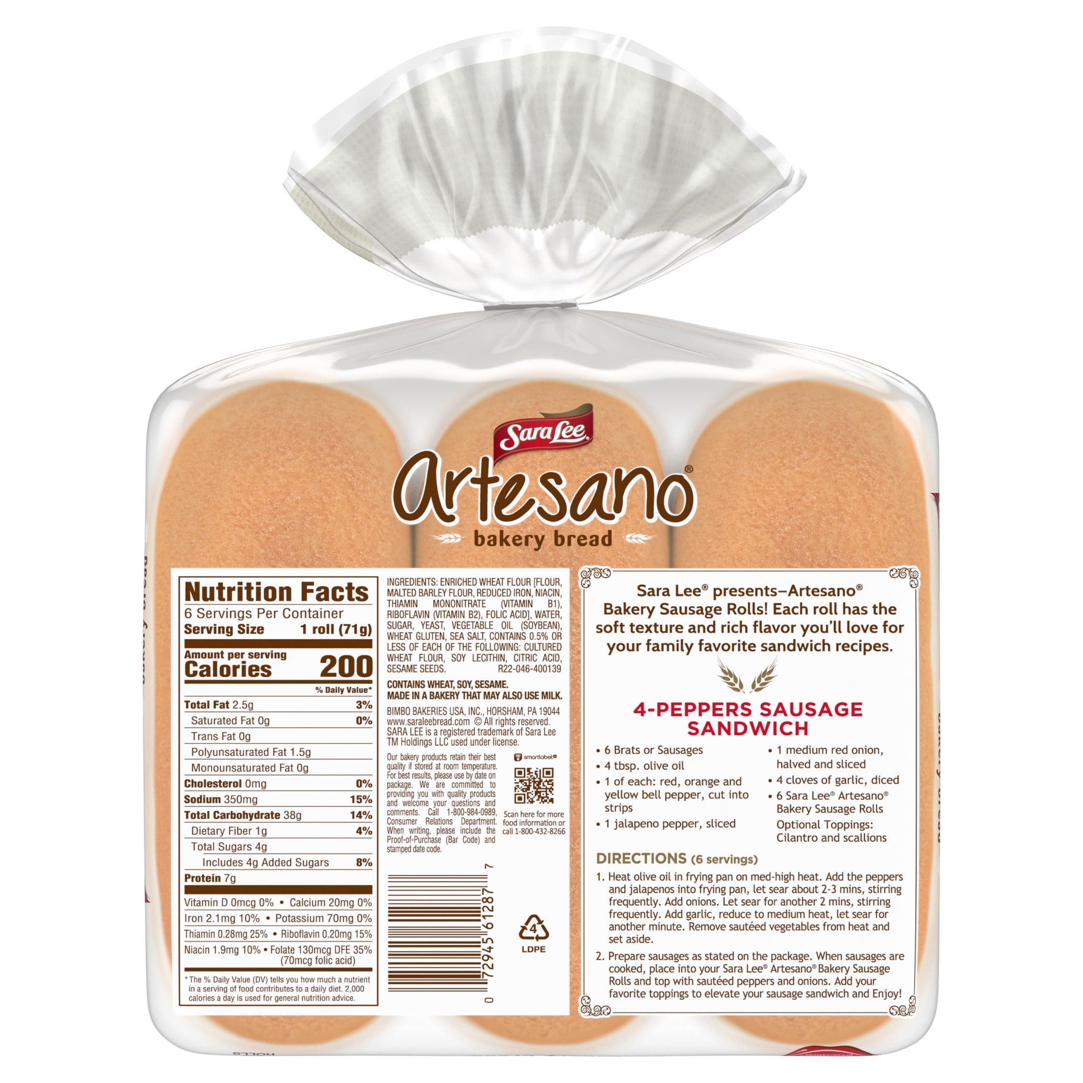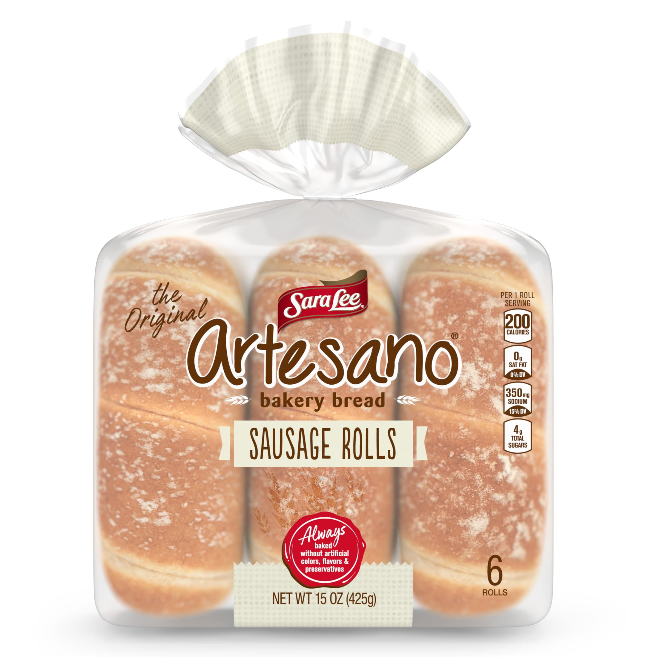 Sara Lee’s Artesano Bakery Sausage Rolls offer a delectable, straight from the bakery taste. With its rich flavor and distinctly creamy character, all the flavors you love come together with Artesano Bakery Sausage Rolls. Perfect for grilling brats, hot dogs, or Italian sausages topped with grilled peppers and onions, our sausage rolls elevate everything you create with them. Pair them with chicken sausages or kielbasa to liven up your barbeque instantly. They’re baked with sea salt and made without high fructose corn syrup and have no artificial colors or flavors because we only want the best for your family. Celebrate the goodness in life with our Artesano Bakery Sausage Rolls – a true favorite your family will love. Baked with all the goodness you’d expect, Sara Lee Breads offers a delicious variety of freshly baked bread products in all shapes, sizes, and flavors. Our products have delighted millions around the world, becoming one of the best-loved American brands. This item is Shelf Stable. Size Description: Regular.