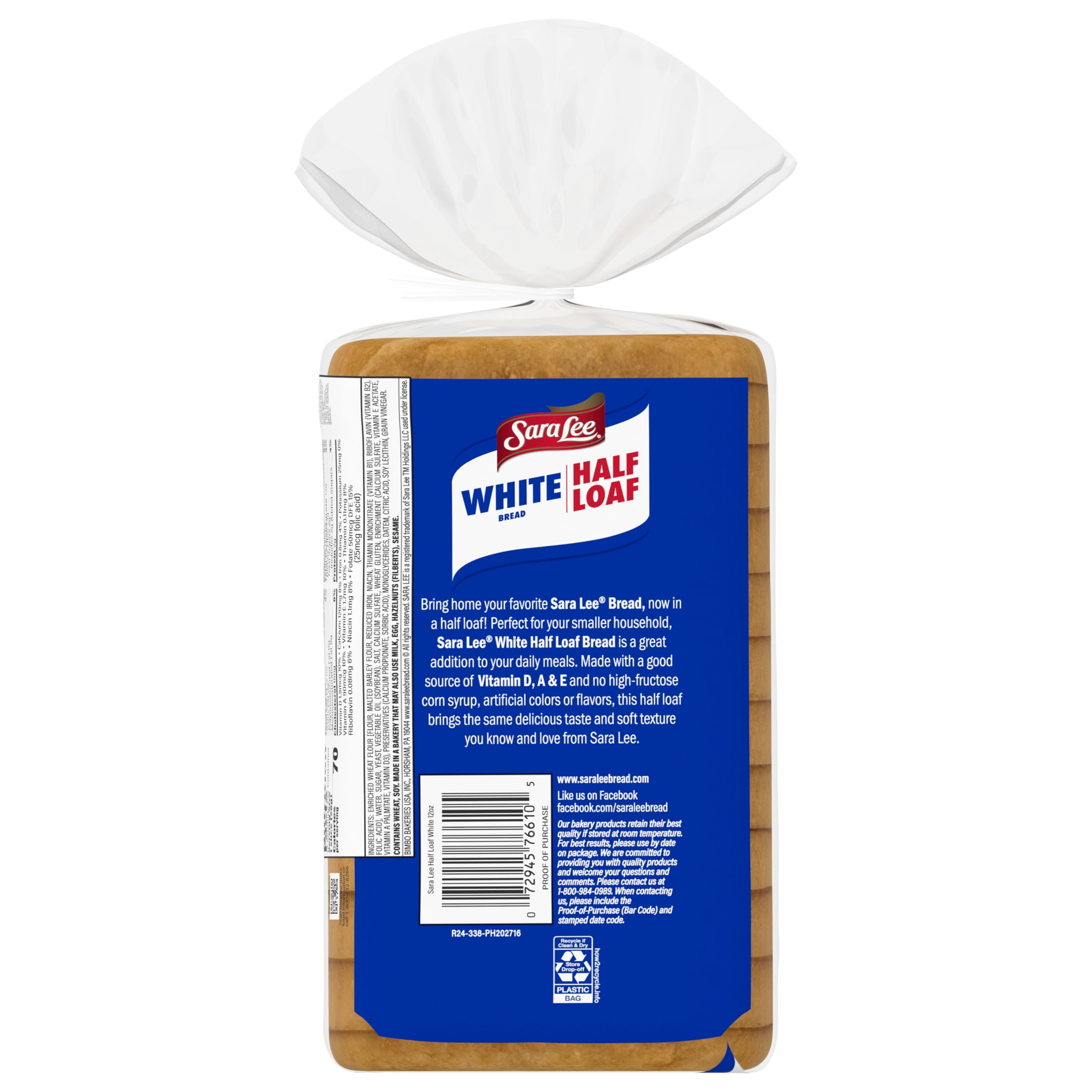 Bring home your favorite Sara Lee Bread, now in a half loaf! Perfect for your smaller household, Sara Lee White Half Loaf Bread is a great addition to your daily meals. Made with a good source of Vitamins A, D, & E and no high fructose corn syrup, artificial colors or flavors, this half loaf brings the same delicious taste and soft texture you know and love from Sara Lee. Enjoy Sara Lee Half Loaf right out of the bag for convenient meals to fit your busy schedule. Give yourself the taste you love and the goodness you want, without the concern of letting a full loaf go to waste, with Sara Lee White Half Loaf.