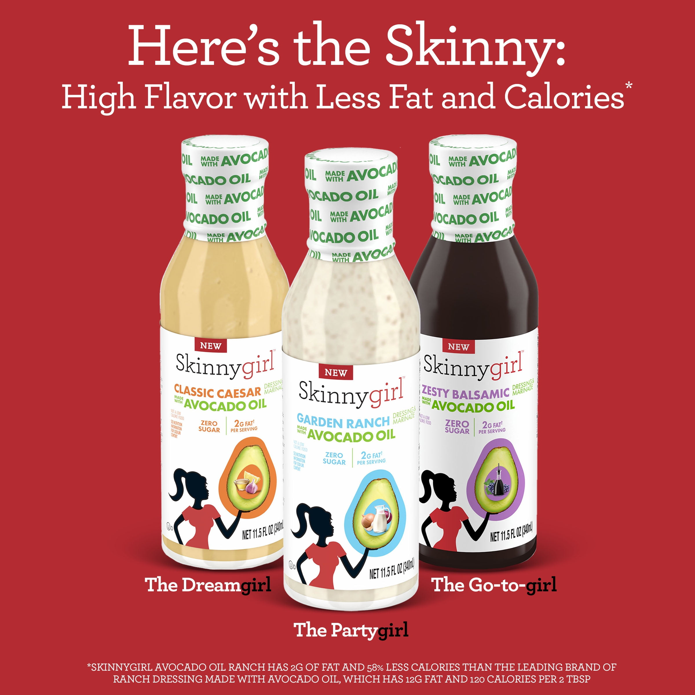 - This Skinnygirl salad dressing is made with avocado oil, not mixed oils or canola oil—it contains zero sugar; perfect for dipping cut veggies or wings