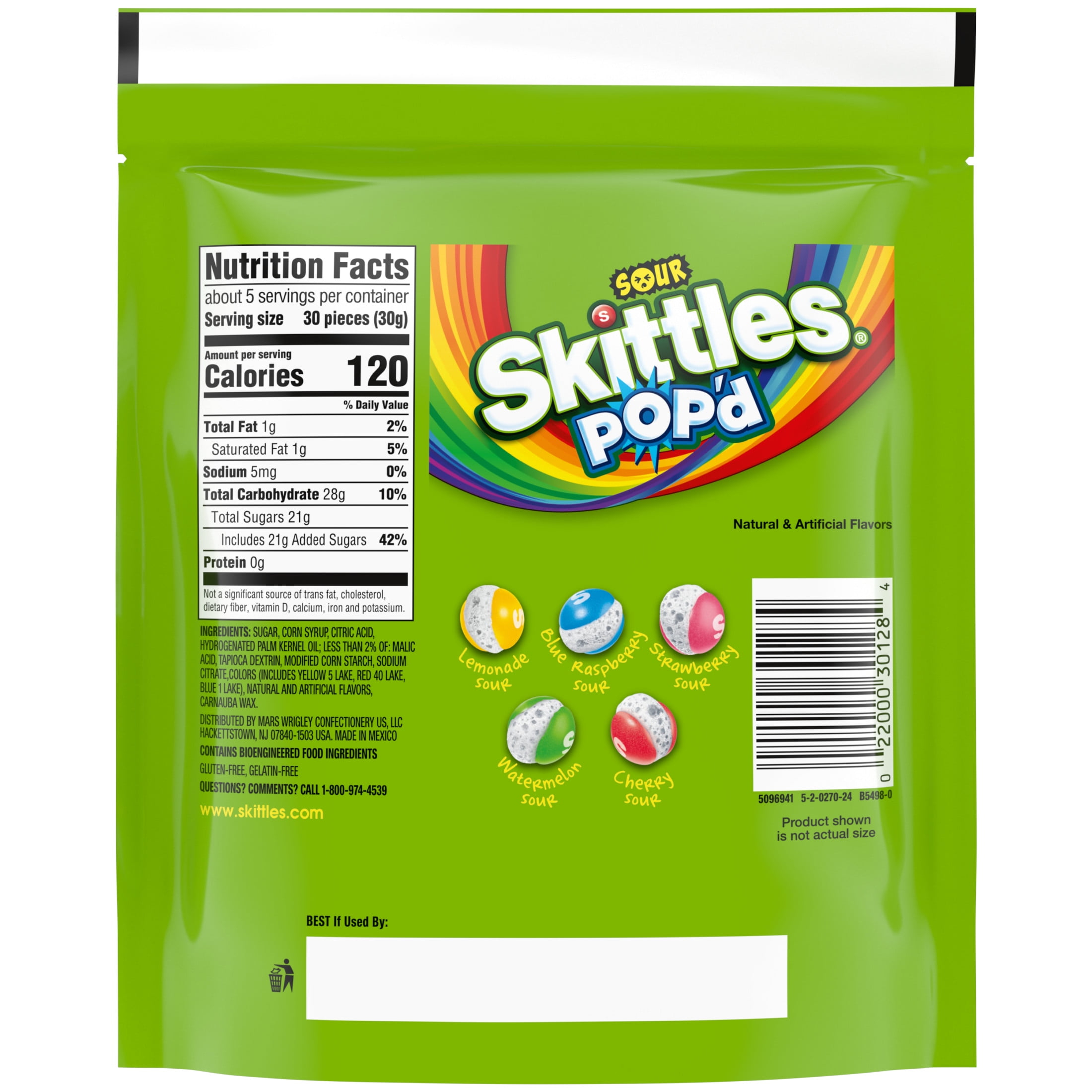 - Contains one (1) 5.5-ounce resealable bag of SKITTLES POP’D Sour Freeze Dried Candy