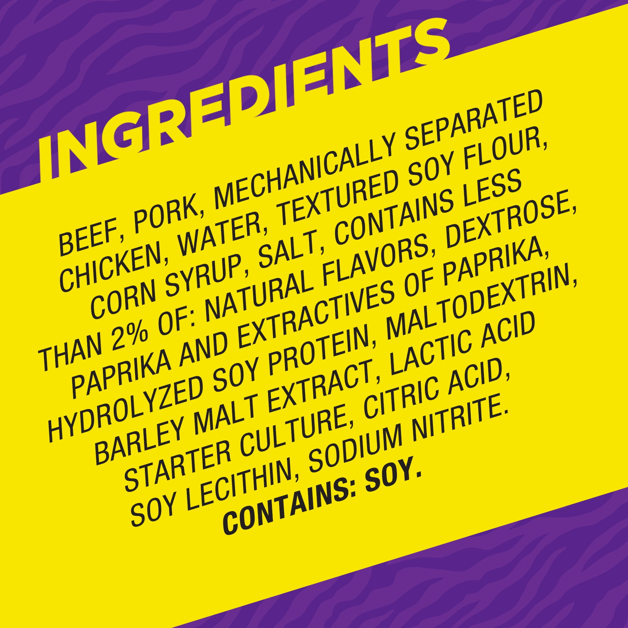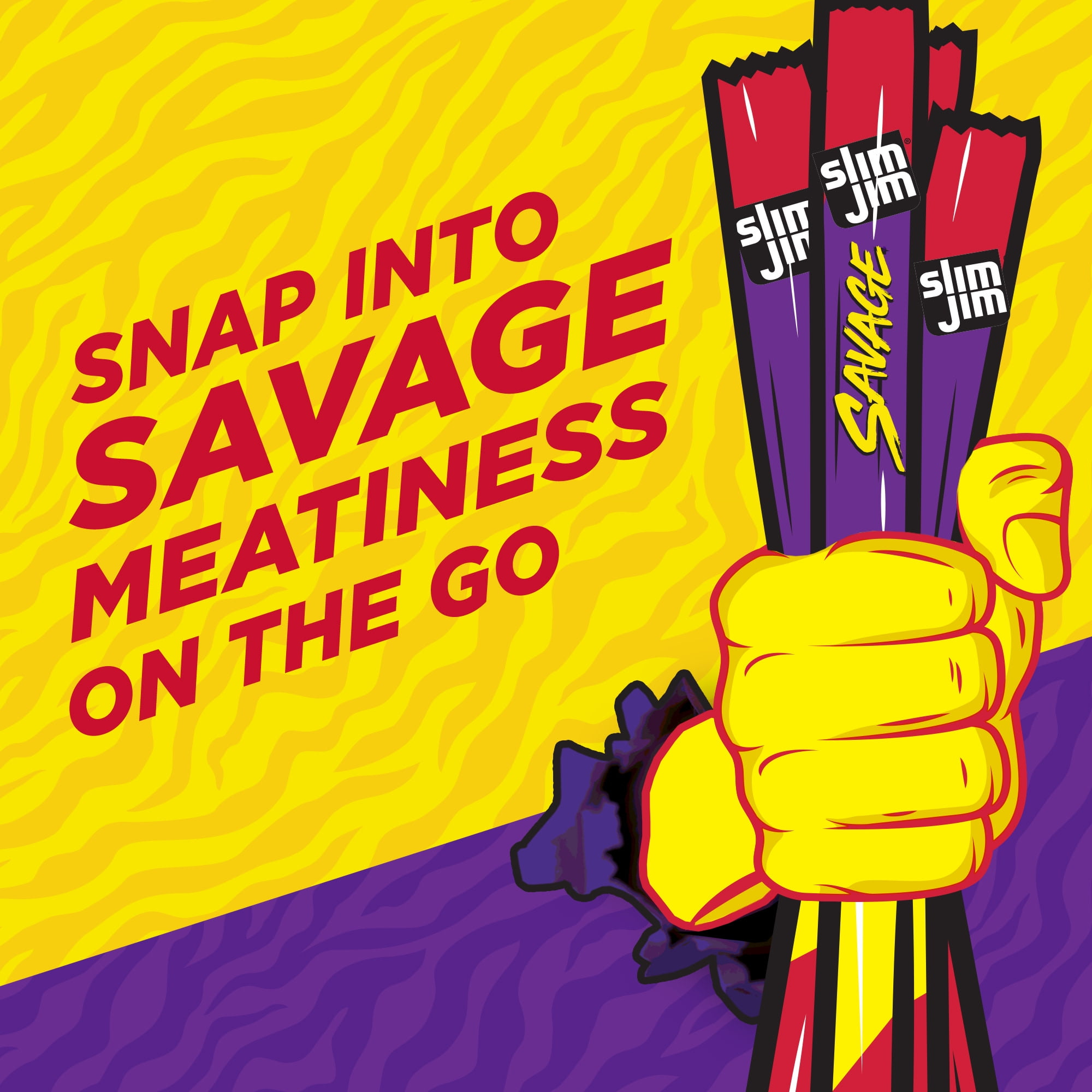 Experience intense, smoky flavor with delicious Slim Jim Original Savage Size Meat Stick. Made with beef, pork and chicken, these meat sticks contain no artificial flavors or colors for full meaty flavor everyone can love. Each meat stick serving is loaded with 6 grams of protein, ideal for protein snacks that kick hunger to the curb and leave you feeling satisfied. These individually wrapped snacks go where you go and are perfect as travel snacks, school snacks or anywhere meat snacks. Slim Jim Original Savage Size Meat Sticks offer a bold and tasty way to take on the day. Each snack stick is ideal for individual snacks on-the-go, so you are ready to hit back when savory cravings hit. Slim Jim keeps it interesting with a full line of beef sticks, snack sticks, pork rinds and jerky. Snap into a Slim Jim(R)!