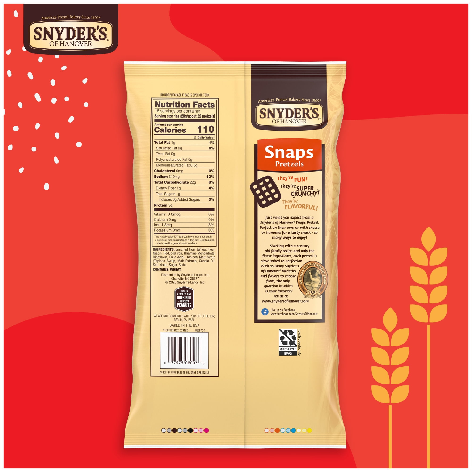 - SNYDER’S OF HANOVER SNAPS PRETZELS: A rich, hearty flavor of traditional pretzels in a crunchy, checkerboard shape