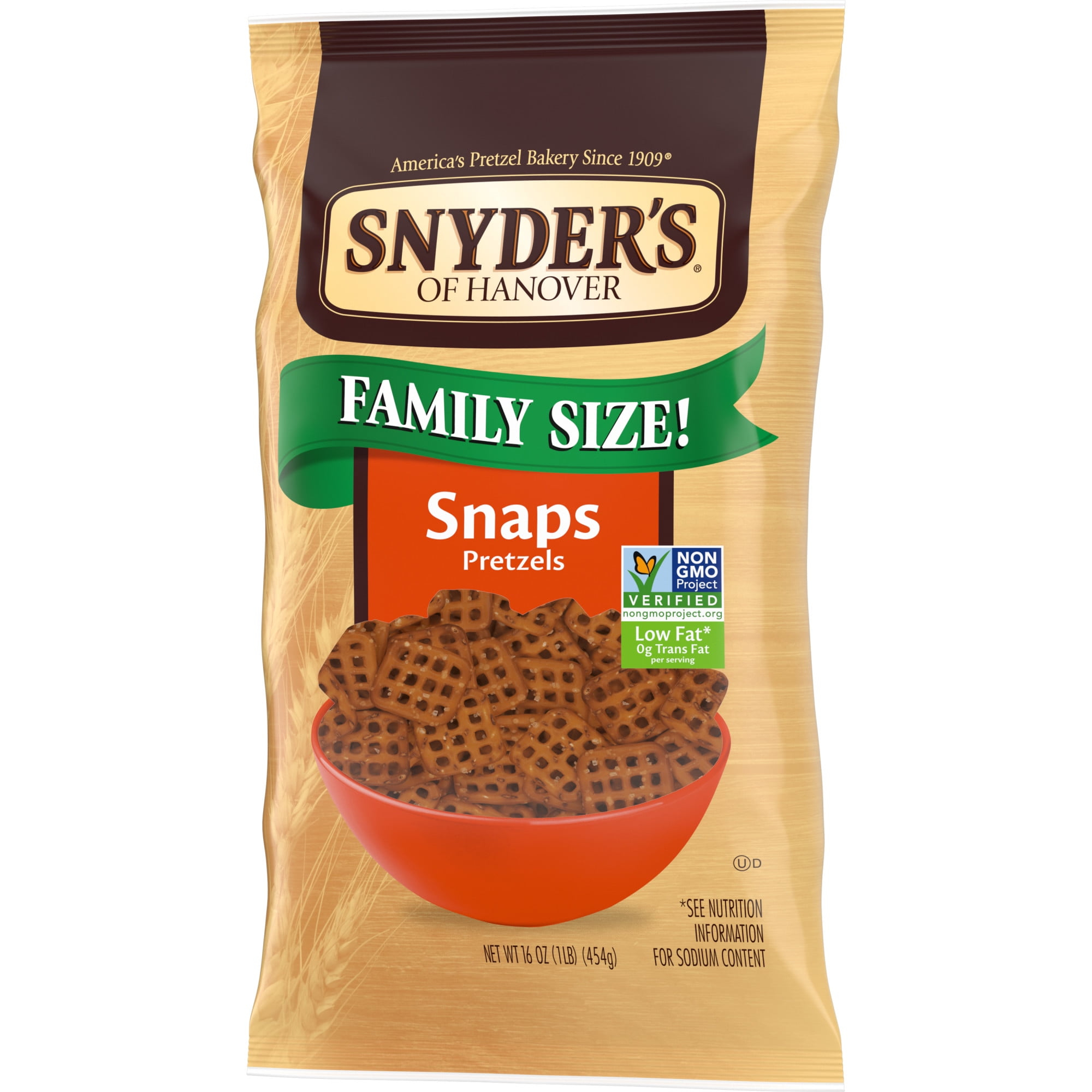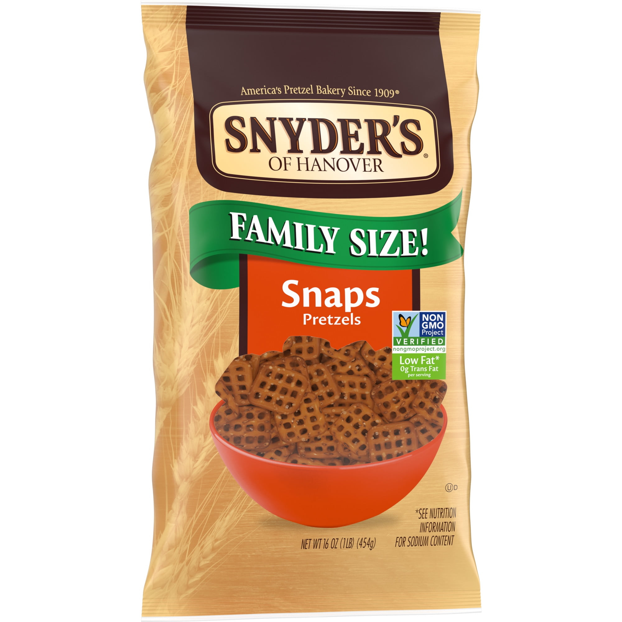 - FAMILY SIZE BAG: The 16-ounce Family Size Bag of Snyder’s Snaps Pretzels are perfect for sharing with family and friends