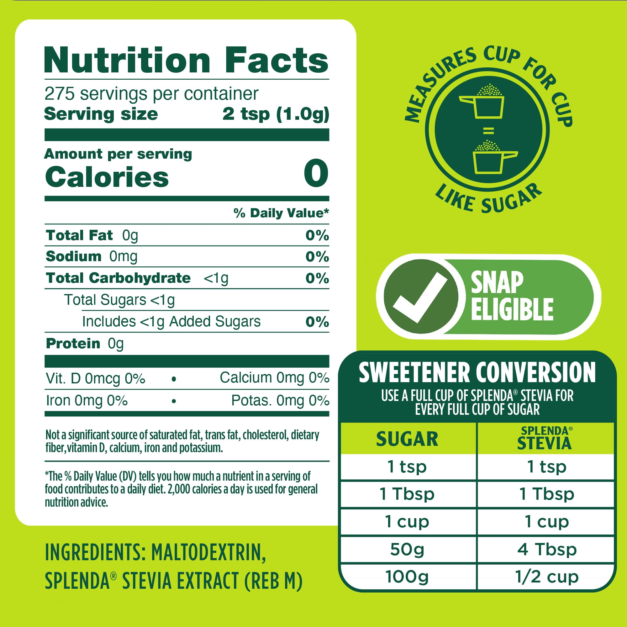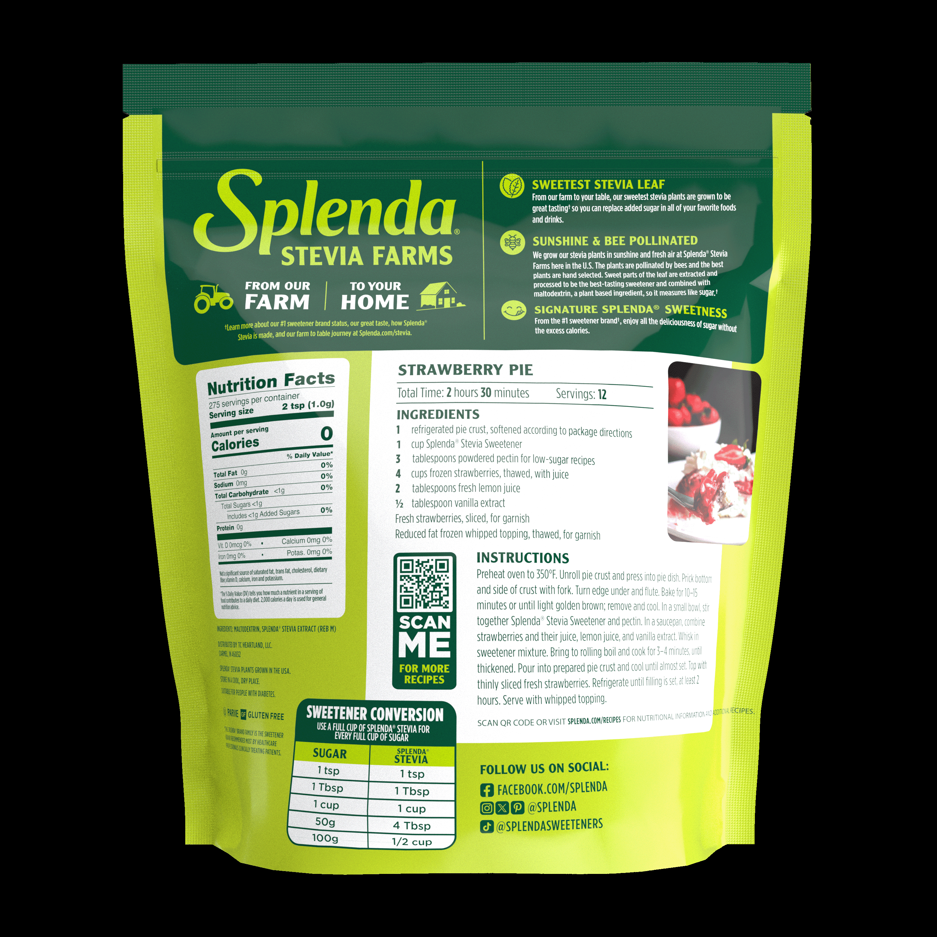 Cook, Bake, and Sprinkle with No Added Sugar! Introducing Splenda® Stevia Sweetener, a great tasting, zero calorie sweetener that is easy to use anywhere you use sugar. Our stevia plants are grown at Splenda Stevia Farms here in the U.S. where they are pollinated by bees and nourished in the fresh air and Florida sunshine. Try Splenda Stevia today! Visit Splenda.com for more recipes and other Splenda products.