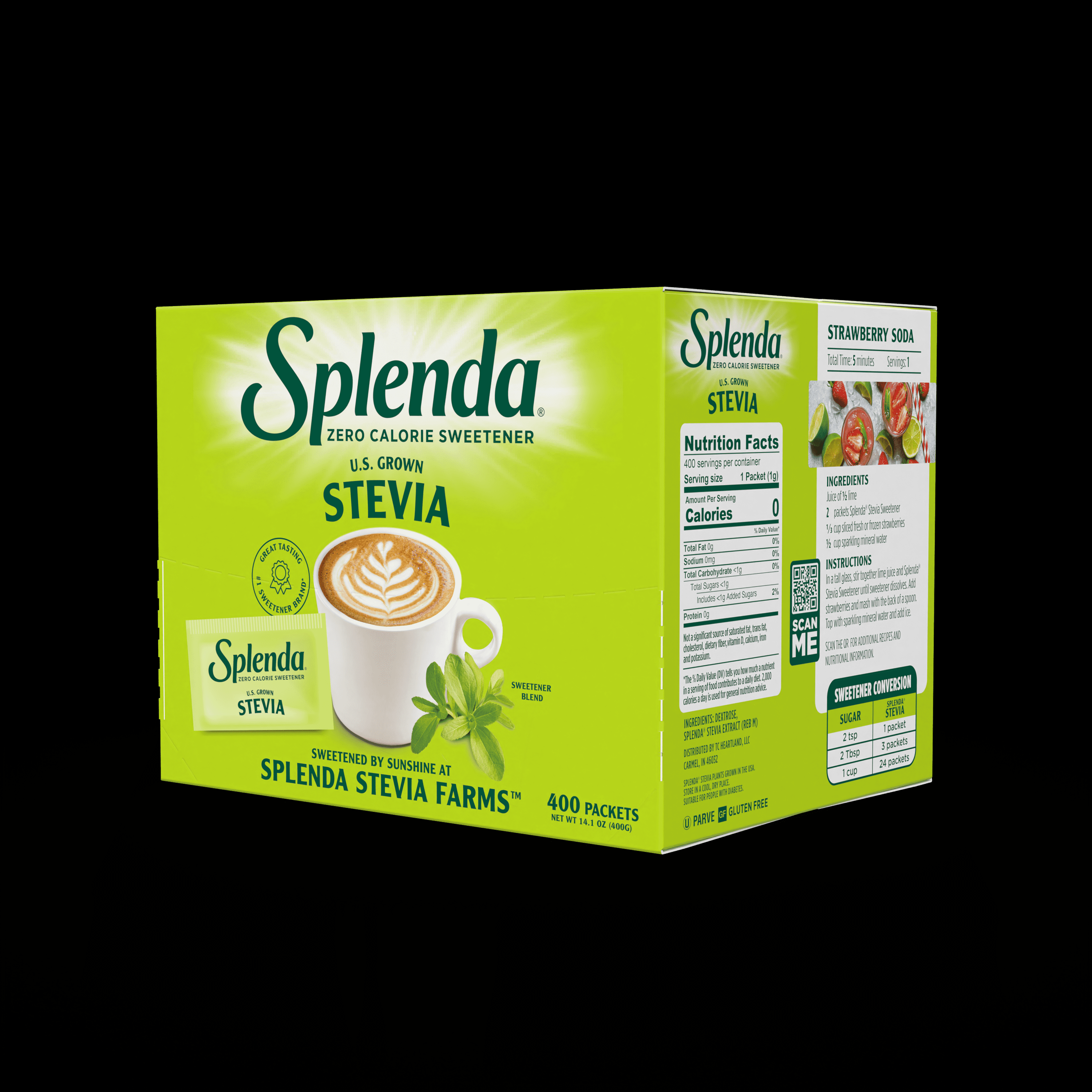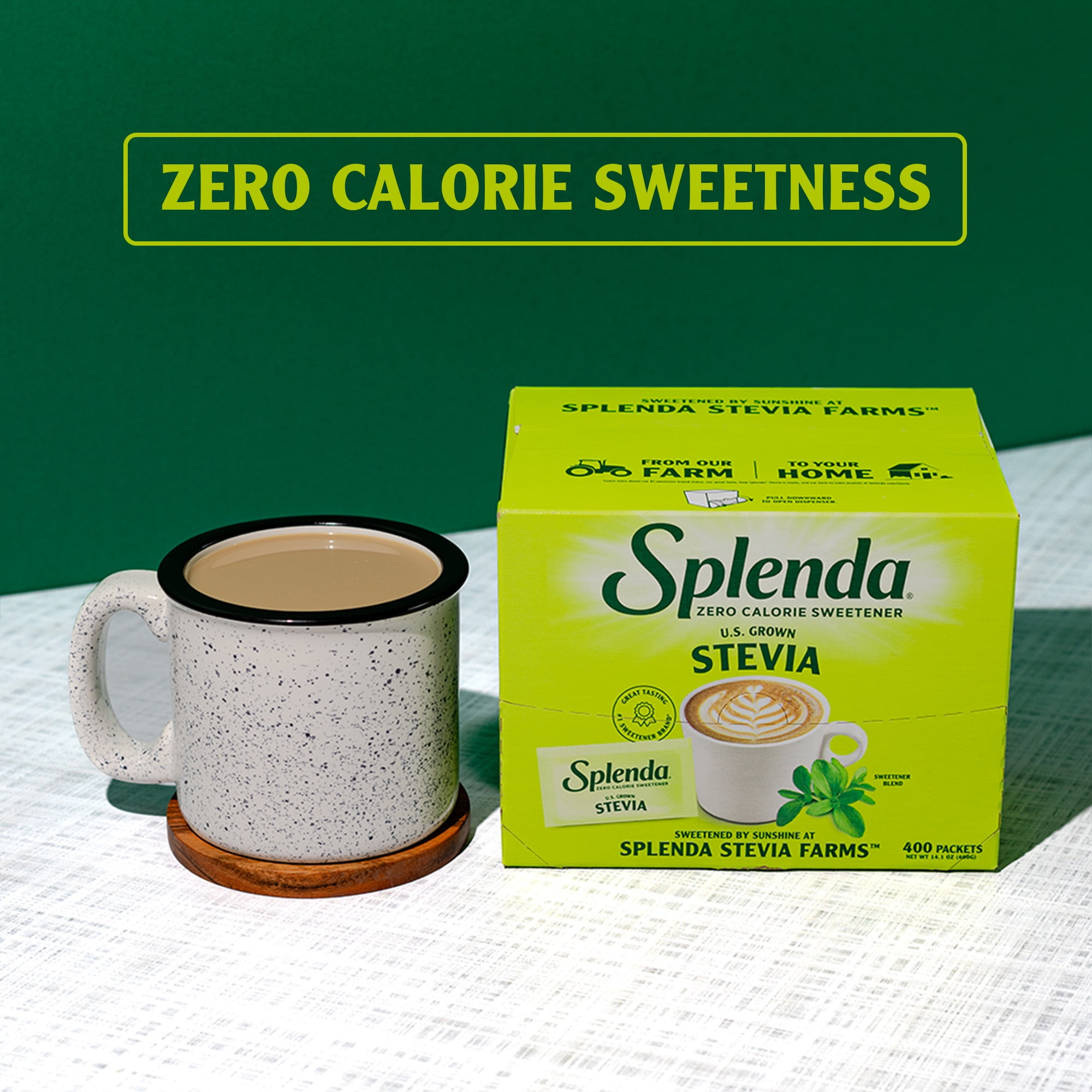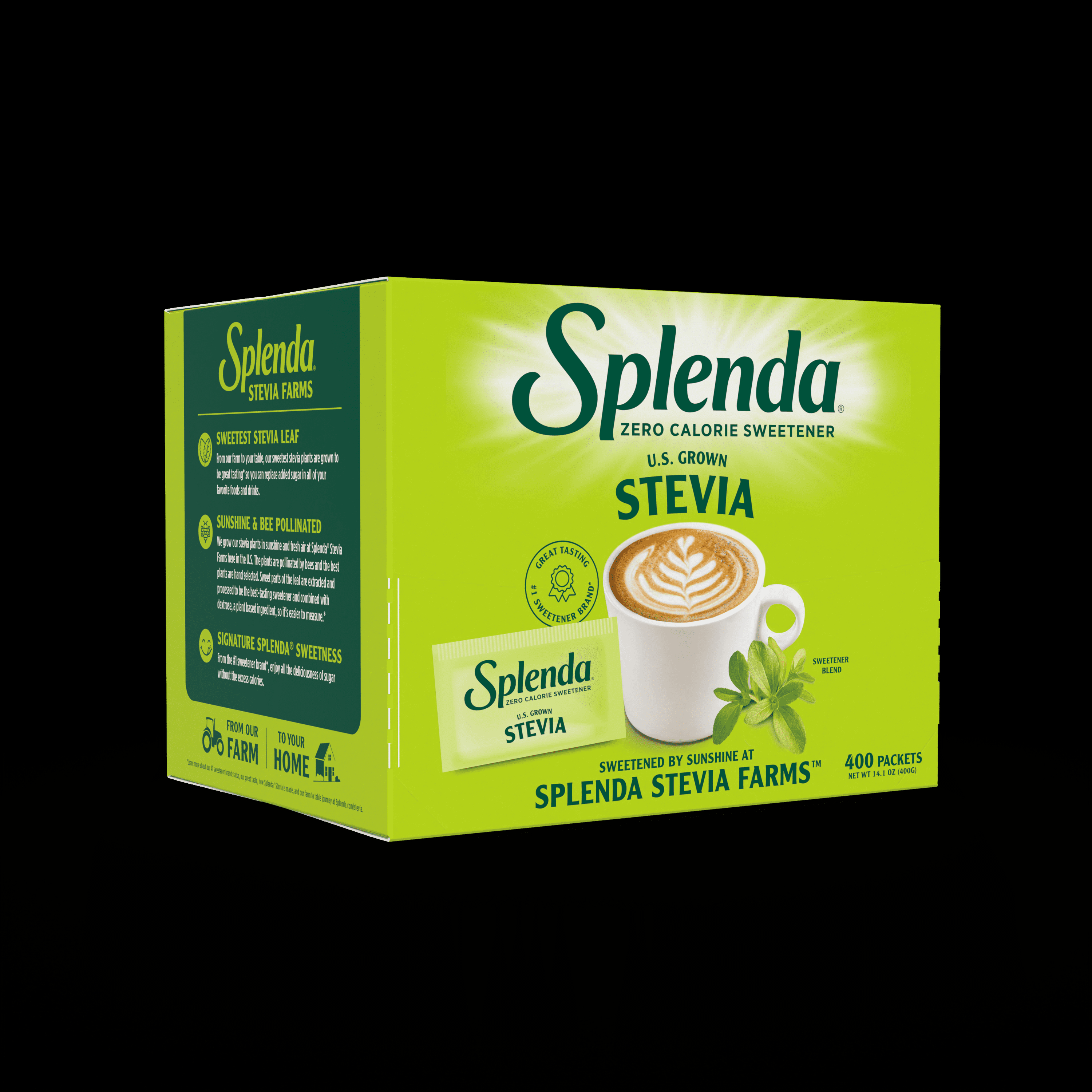 Sprinkle Sweetness! Introducing Splenda® Stevia Sweetener, a sweet breakthrough in natural, zero calorie sweeteners. Where some stevia sweeteners may have a bitter aftertaste, Splenda Stevia is sweet—without the calories. Our stevia blend includes Reb M a cleaner-tasting extract of the stevia leaf – grown in the Splenda® Stevia Farms in Florida. Visit Splenda.com for more information about Splenda Stevia Sweetener.