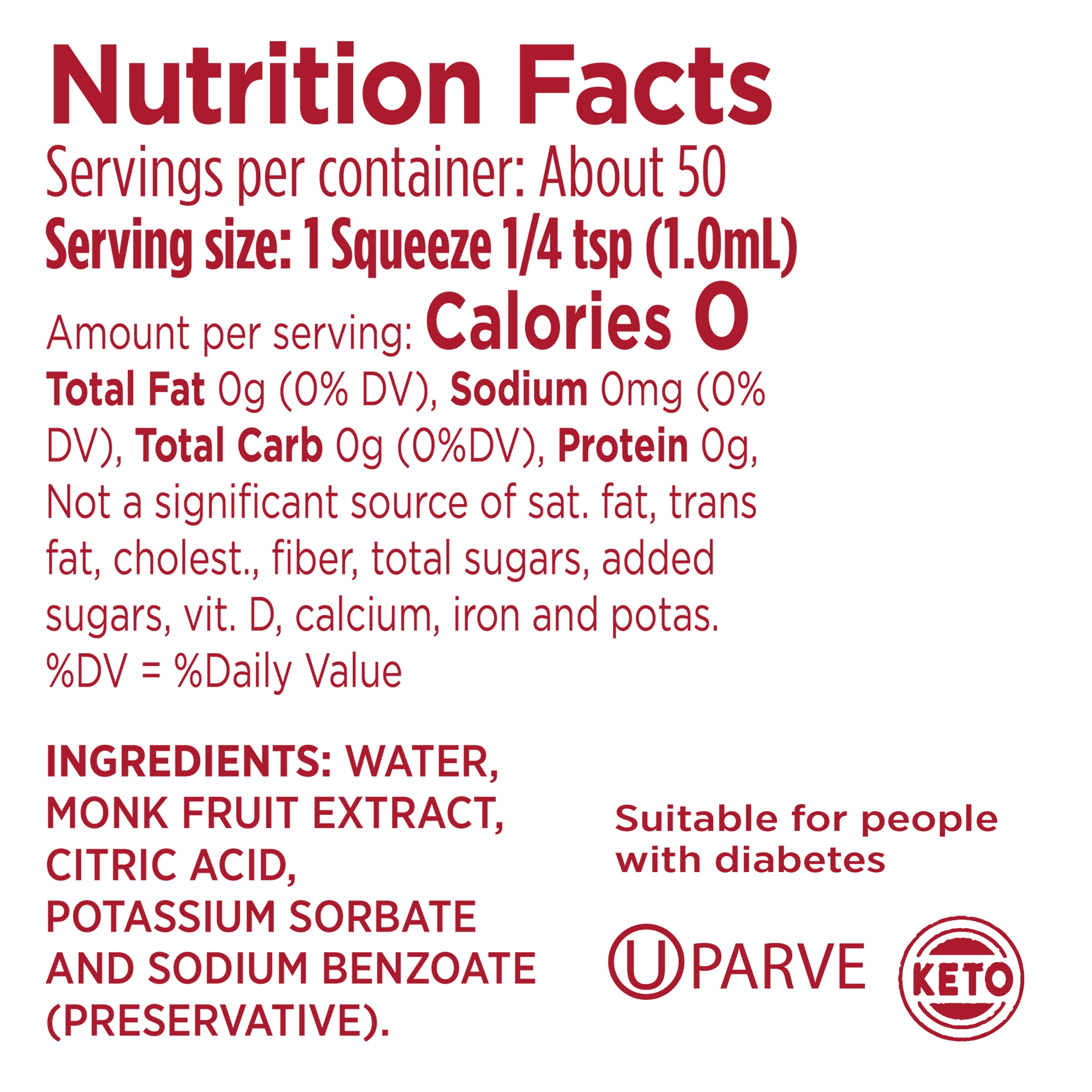 Splenda ZERO Monk Fruit Zero Calorie Liquid sweetener drops. Add it to coffee, tea, cocktails or smoothies for an indulgently guilt-free sweet experience. Easy to use bottle with flip-top lid is great for on-the-go. The Splenda brand is the number one recommended sweetener brand by doctors and dietitians, plus it’s America’s favorite sweetener brand. Splenda’s sugar substitute Monk Fruit. Try Splenda sweeteners today and taste the difference. Among healthcare professionals clinically treating patients. Splenda was the highest tested brand family in the low-calorie sweetener space. Follow us on Facebook: facebook.com/Splenda. For delicious recipes and baking tips, visit us at splenda.com or call 1-800-777-5363.