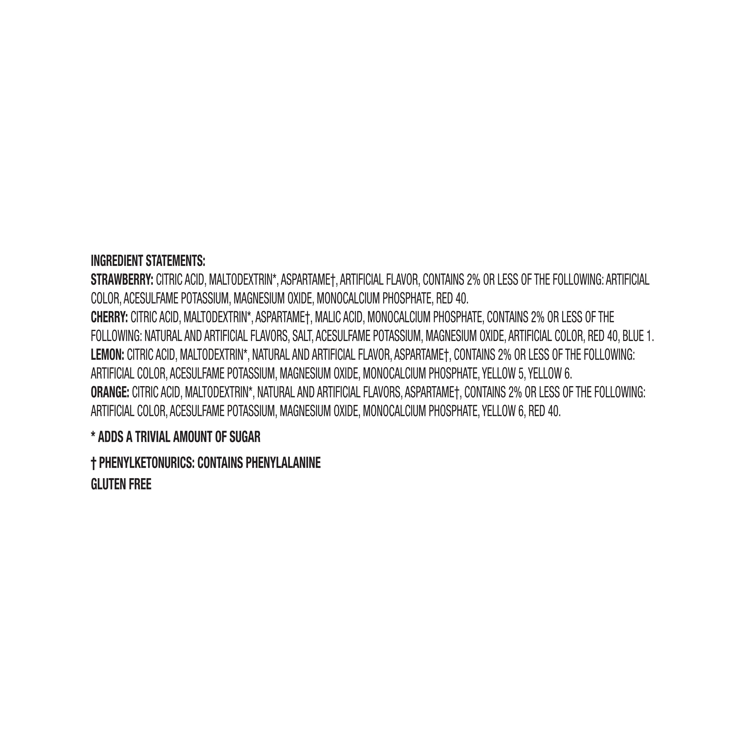 When drinking water daily is hard , sometimes the help of great flavors like cherry , orange , lemon strawberry from Starburst is a must for stick to the hydration routine . I can choose from the different flavor options so now I can make part of my work out routine at the gym .