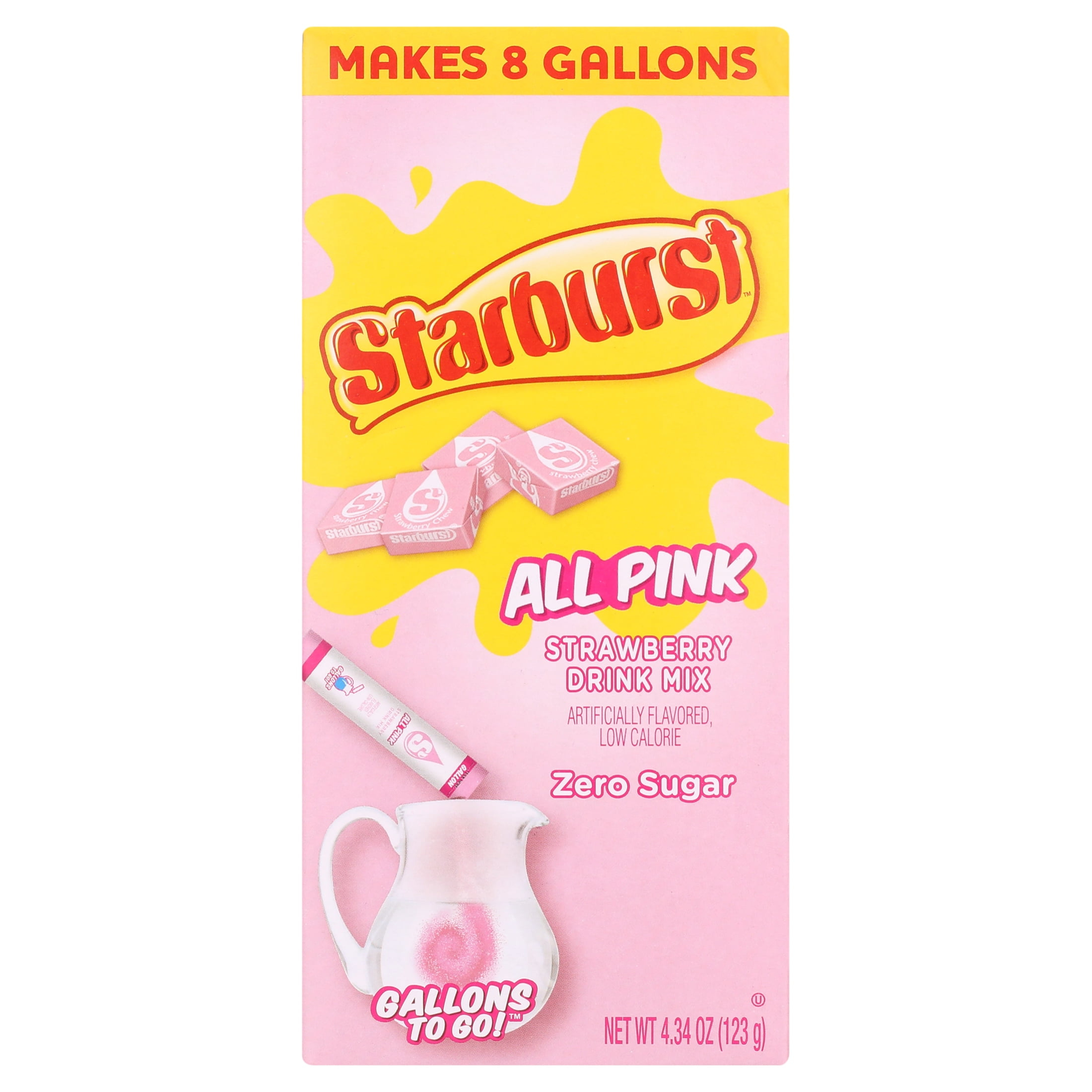 Starburst Zero Sugar Gallons-to-Go Powdered Drink Mix, All Pink Strawberry, 8 Count Gallon Pitcher Packets