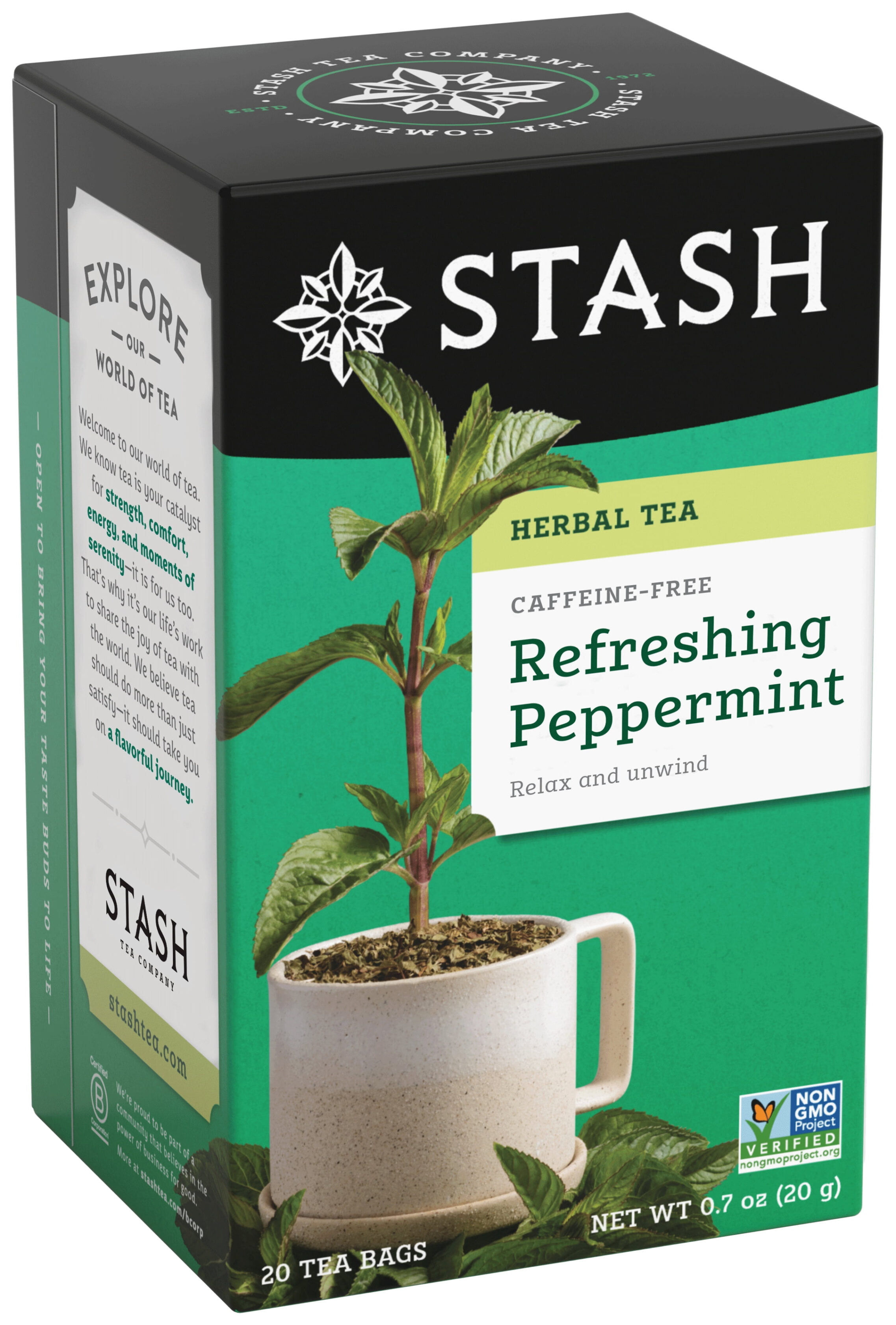 Introducing our Refreshing Peppermint herbal tea, a single-source Pacific Northwest ingredient, farmed and picked directly from our proverbial backyard. Over 40 years ago, the Stash Tea founders recognized the exceptional quality of peppermint leaves flourishing in the Pacific Northwest, becoming the first to appreciate the regional treasure. Our Refreshing Peppermint tea is a testament to our commitment to quality, featuring the finest Pacific Northwest peppermint leaves, carefully selected for their bold and refreshing flavor.