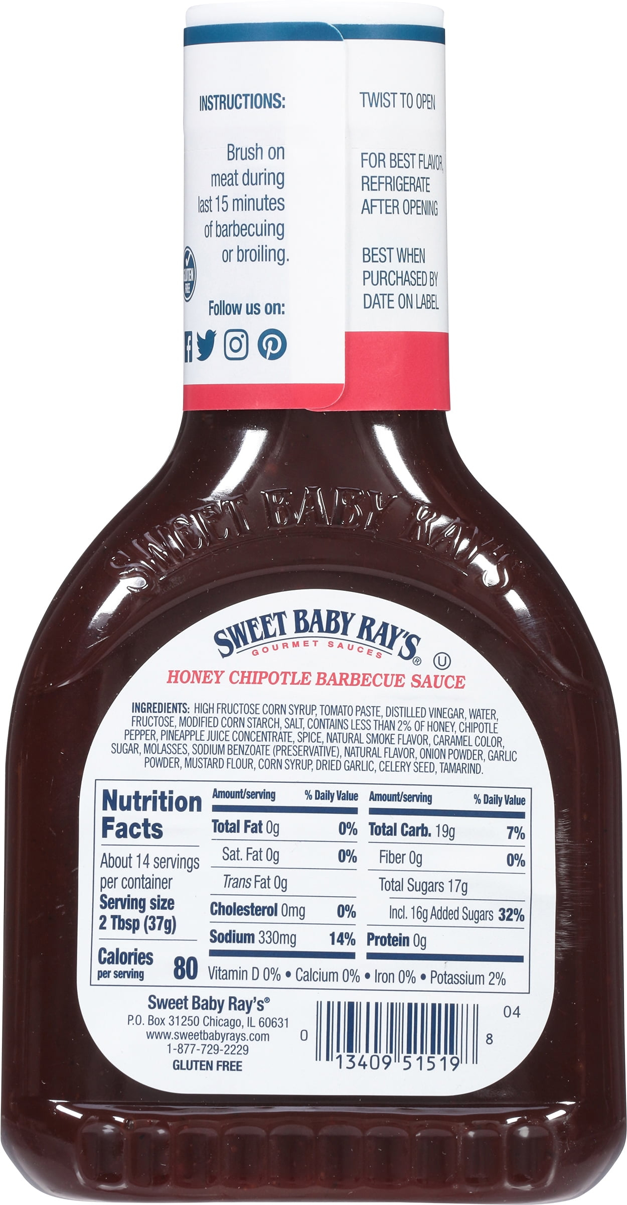 - Brush Sweet Baby Ray’s Honey Chipotle on beef, pork, or chicken, during the last 15 minutes of barbecuing or broiling