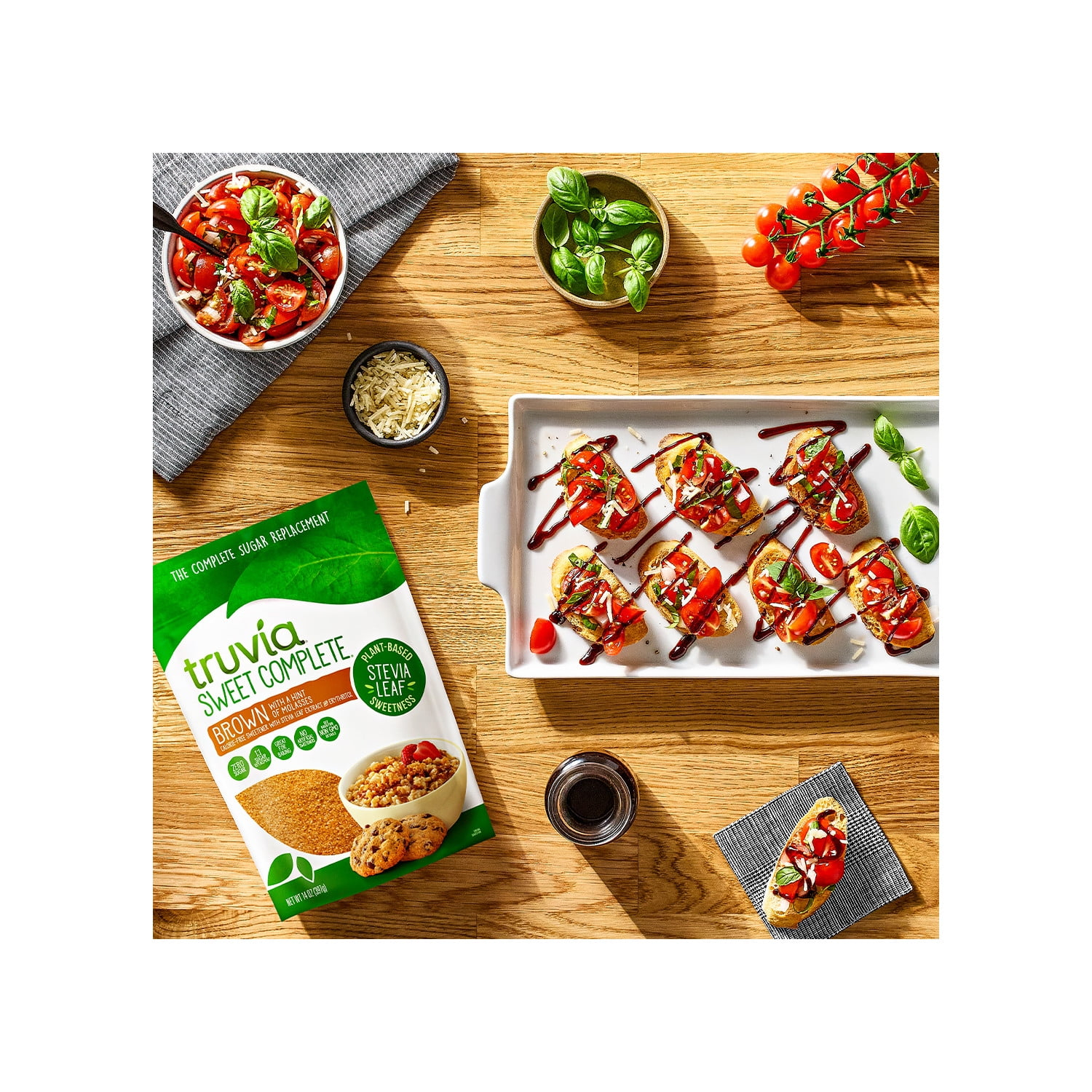 - Bag contains 14 ounces of Truvia Sweet Complete Brown calorie-free sweetener
