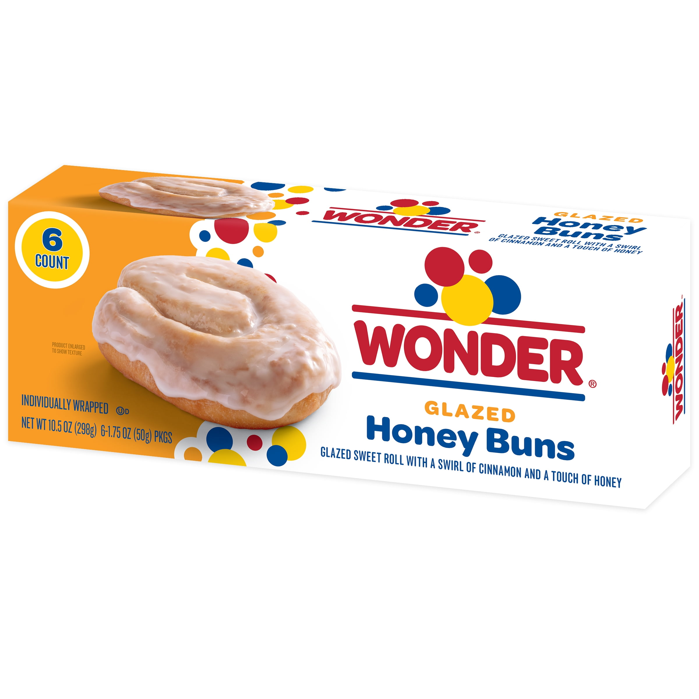 Indulge in the sweet, satisfying delight of Wonder® Glazed Honey Buns. The perfect balance of a sweet glazed treat with a soft, tender texture with every bite. Coated in a delicious glaze that adds the perfect amount of sweetness, making it a favorite staple for breakfast, dessert, or a midday treat. Whether you are pairing them with a hot cup of coffee, a glass of milk, or simply savoring the sweetness on your own. These family-approved sweet treats are sure to provide you all the wonder you know and love. Made with Real Wonder. For over 100 years, the makers of Wonder Bread have been baking up that special taste that reminds us of our childhood and proves, time and time again, that the simple pleasures really are the best. Makes you Wonder what sweet memories the next 100 years will bring.