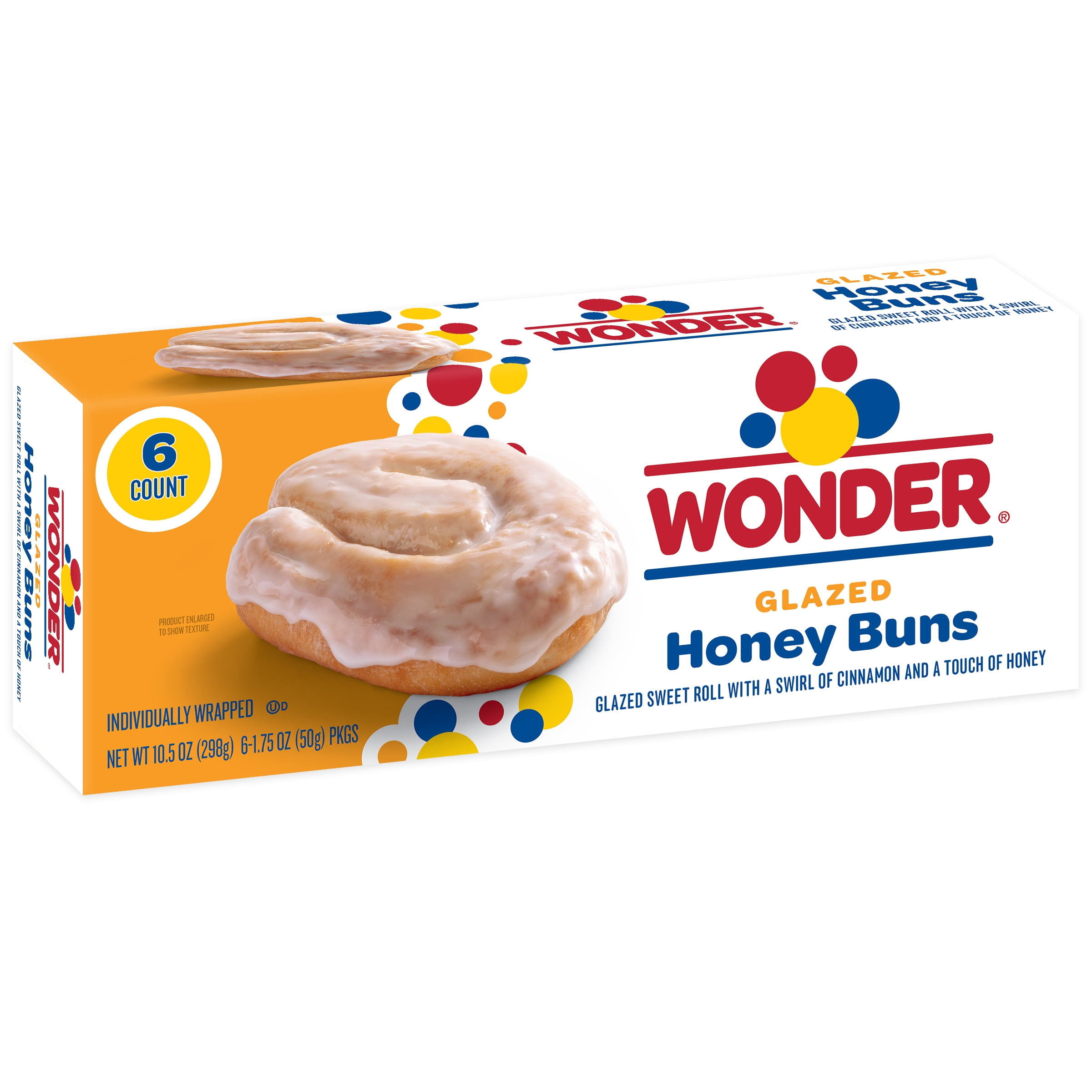 Indulge in the sweet, satisfying delight of Wonder® Glazed Honey Buns. The perfect balance of a sweet glazed treat with a soft, tender texture with every bite. Coated in a delicious glaze that adds the perfect amount of sweetness, making it a favorite staple for breakfast, dessert, or a midday treat. Whether you are pairing them with a hot cup of coffee, a glass of milk, or simply savoring the sweetness on your own. These family-approved sweet treats are sure to provide you all the wonder you know and love. Made with Real Wonder. For over 100 years, the makers of Wonder Bread have been baking up that special taste that reminds us of our childhood and proves, time and time again, that the simple pleasures really are the best. Makes you Wonder what sweet memories the next 100 years will bring.